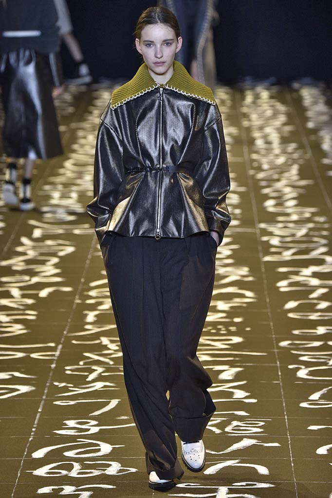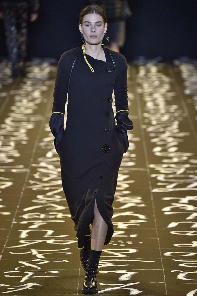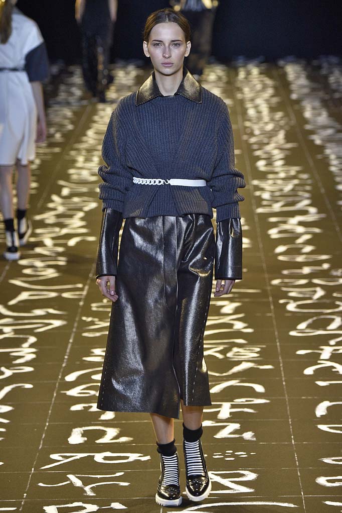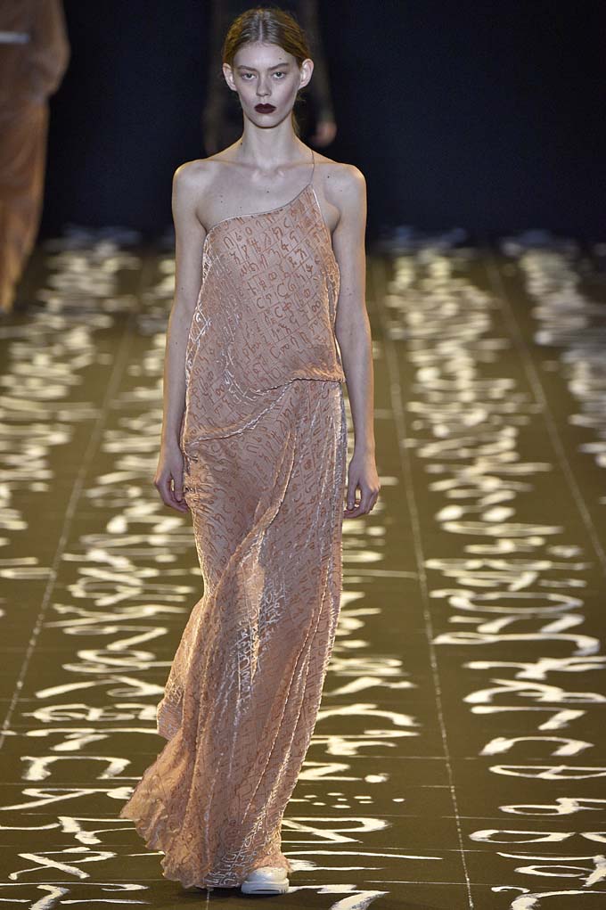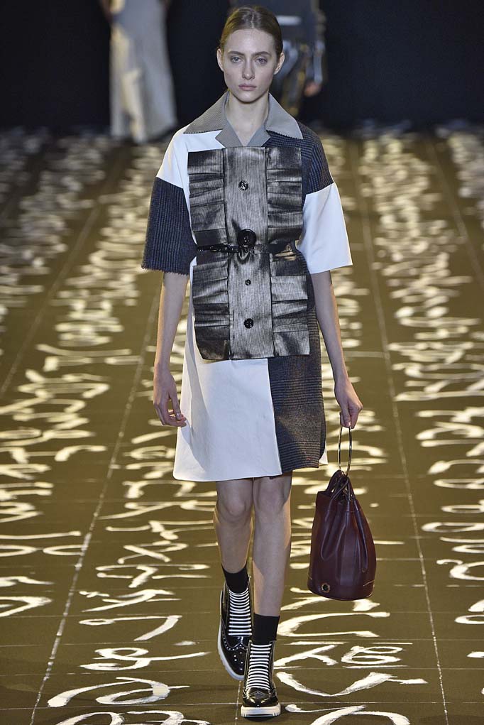 Danielle Sherman’s designs for Edun took a fresh, feminine take this season, perhaps partly due to the newness that comes with motherhood (she showed off her 7-week-old daughter on the runway after presenting her fall ’16 collection). She took cues from photographer Sharon Beal’s images of bird nests, introducing feminine dresses and separates, which she constructed from bits and pieces of contrasting materials—velour, satin, leather, denim, tweed, you name it—that meshed in just the right ways.