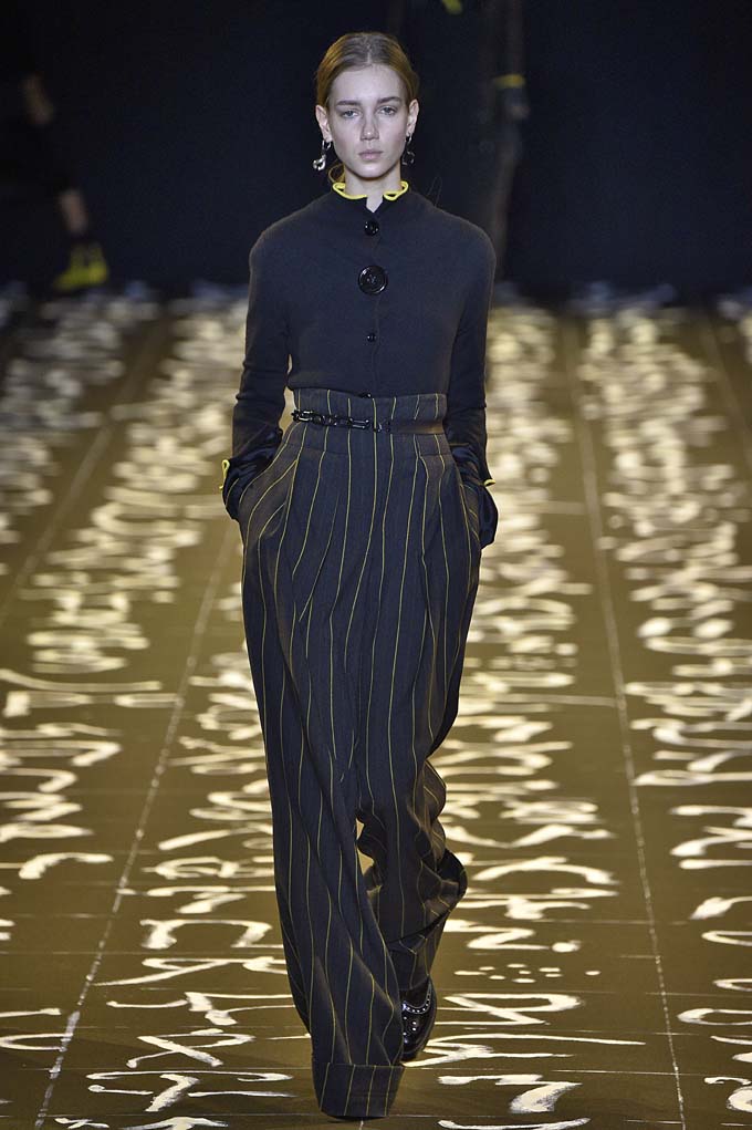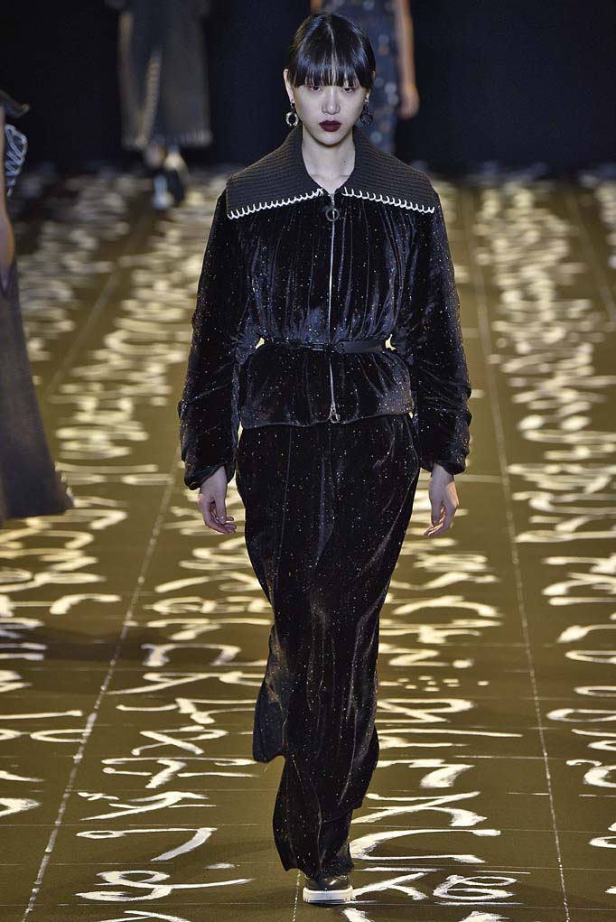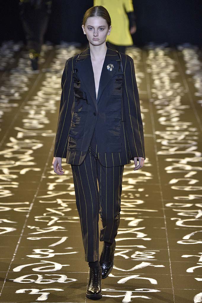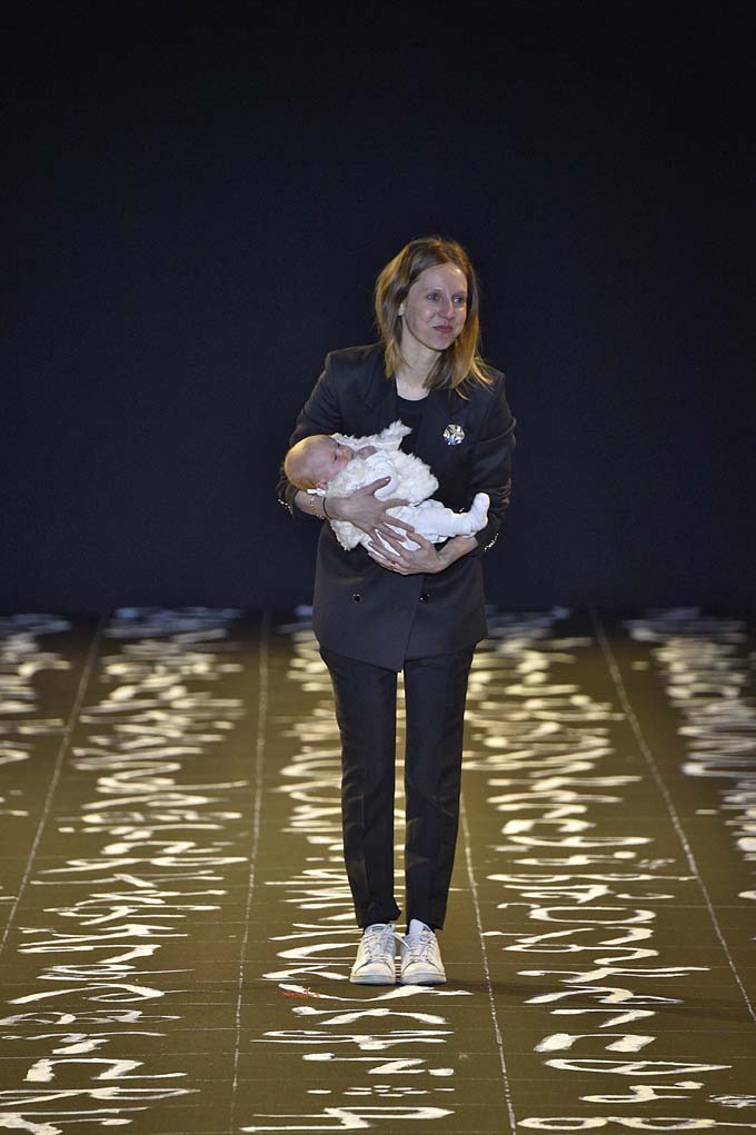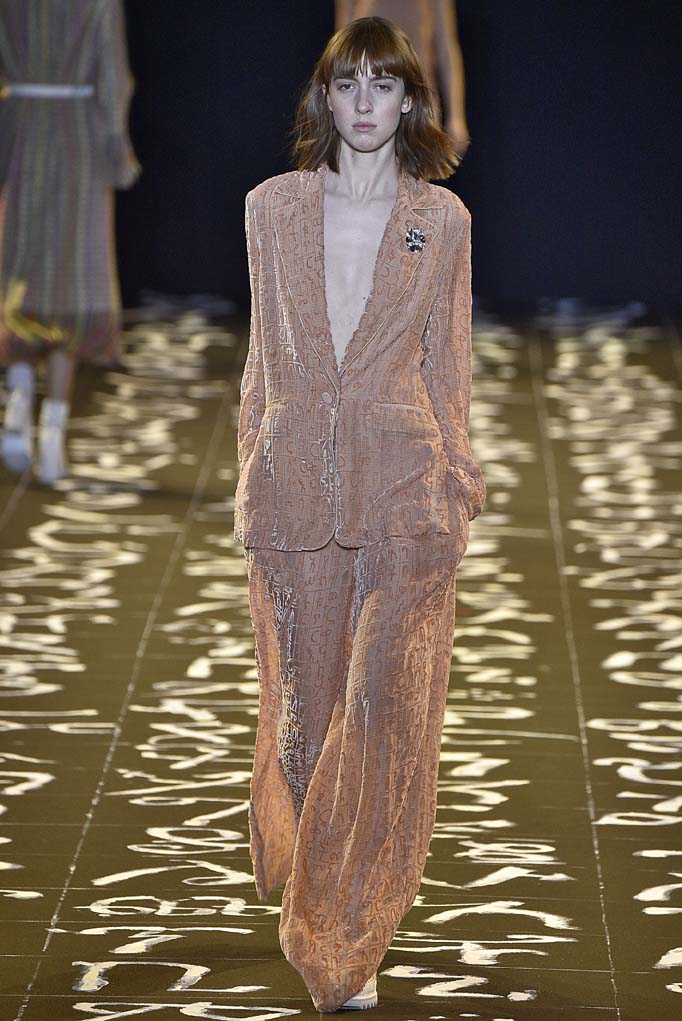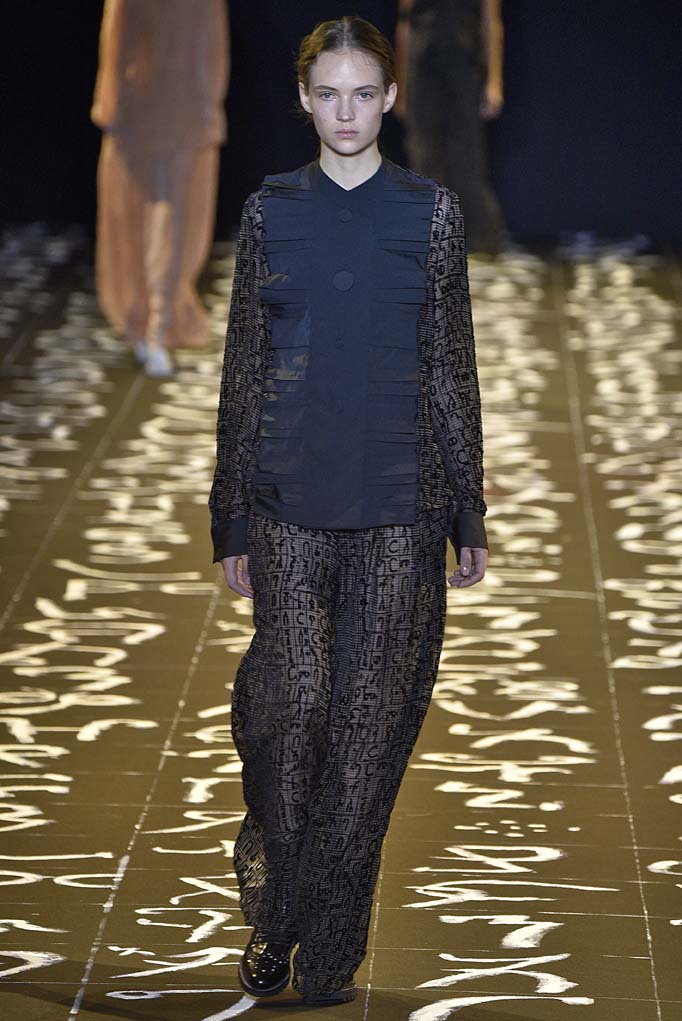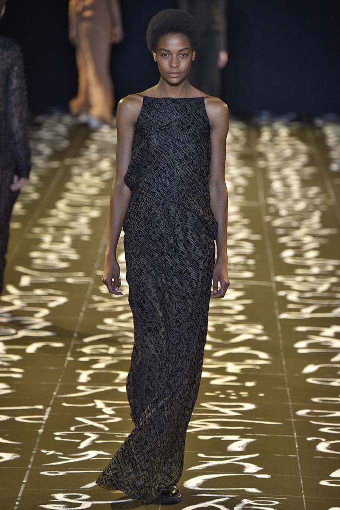 Sherman’s collection was also heavy with prints, from the more traditional, like fine stripes, to the more abstract, like buttons and Ahmaric lettering, the latter a design from Ethiopian artist Wosene Worke Kosrof’s “Ethiopian Grammar,” which spelled phrases like “Mother love.” The new direction certainly suits both Sherman and her designs.