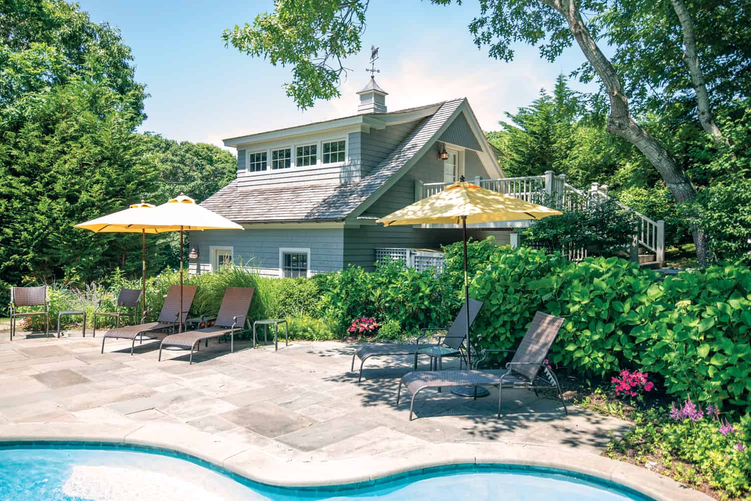 Apart from the 3,200 square foot main house, we have two additional structures on the property; a multi-level pool house and three-bay garage with finished loft. Other mentionables include a heated gunite pool with roman spa, extensive decking with retractible awning and I mentioned it once but I’ll say it again, private beach access and parking at Hither Hills.