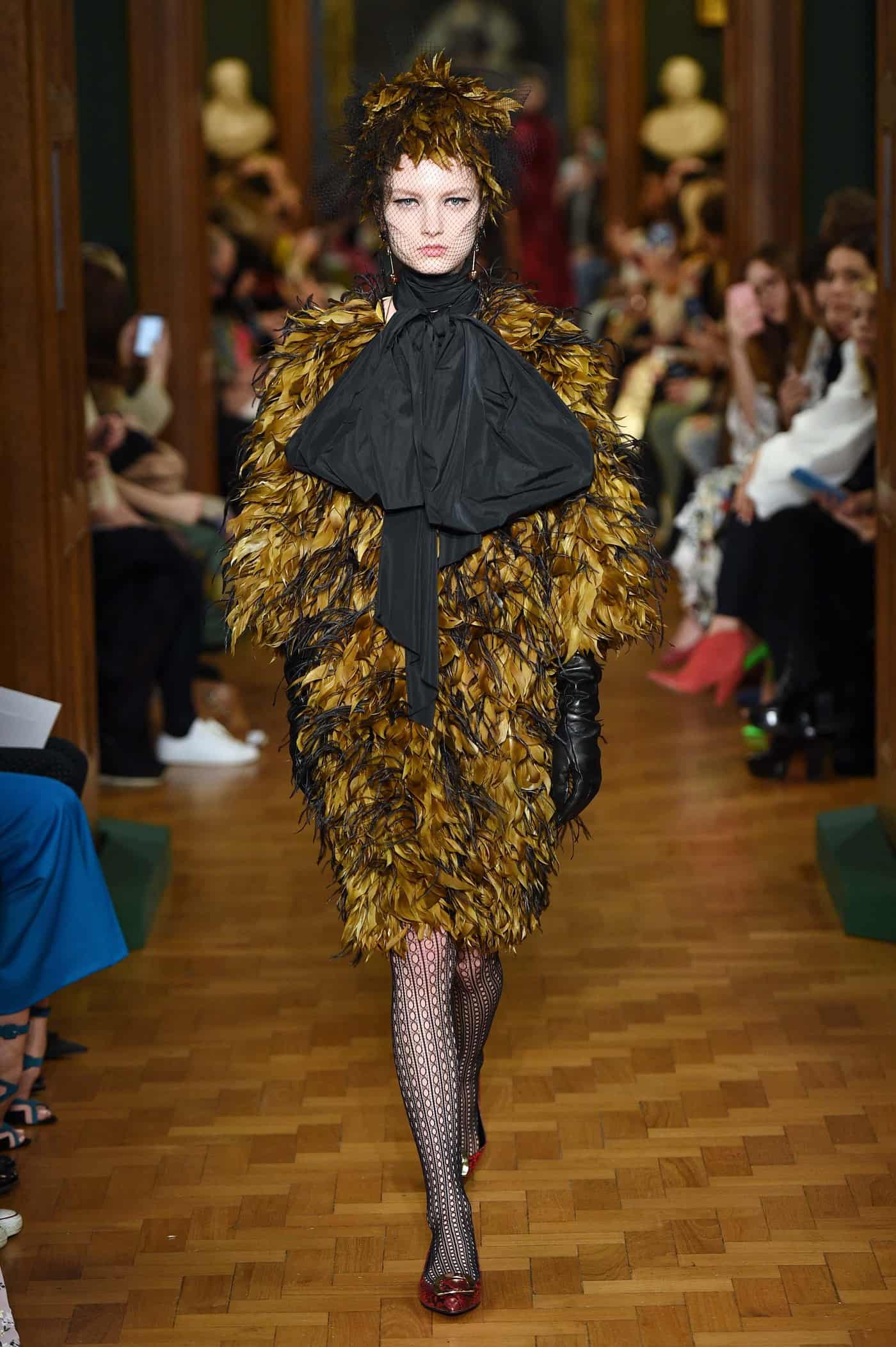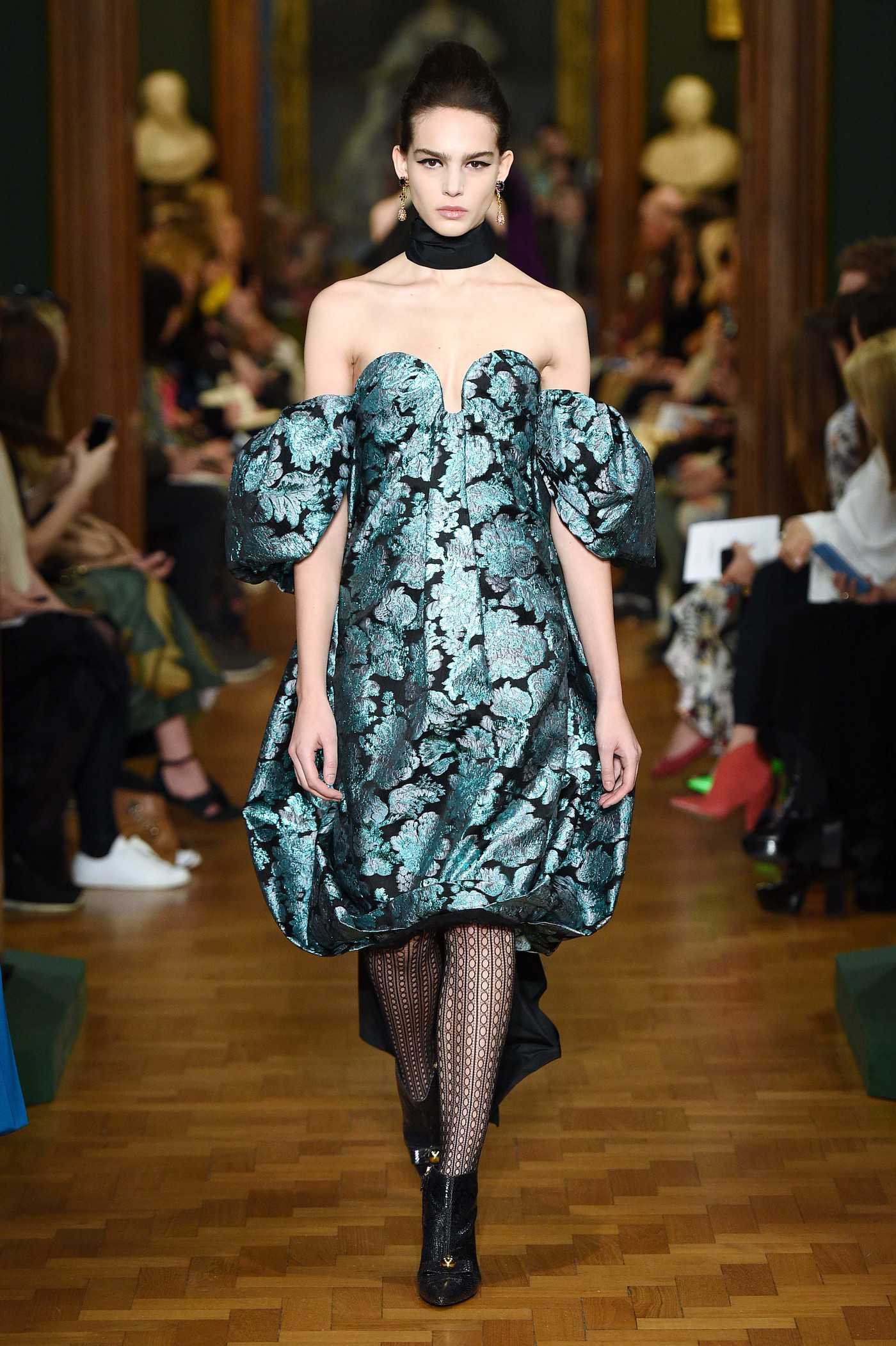The resulting collection is dark and decadent. As always Moralıoğlu has made excellent use of rich textiles, including brocades and lace. Some silhouettes were evocative of the early ’60s (especially the coats), but for the most part the designer stuck to the voluminous shapes he is known for. Most of the pieces featured ruffles, and some featured showstopping bows around the neck.