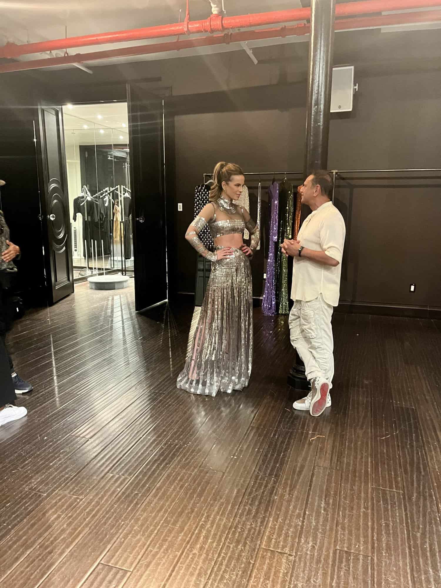 A glowing Khan looked elated that one of his favorite stars to dress for the red carpet would be taking part in the NYFW show. “I know Kate for many years—and I’ve always had great admiration for her as an artist…and a beauty,” he said. “When it was brought up that it would be great for us to work together, Oh my God I was so happy you have no idea! My whole thing was that I wanted to make sure that she’d be happy and feel confident. But now [after the fitting] I feel great. She looks absolutely gorgeous!”