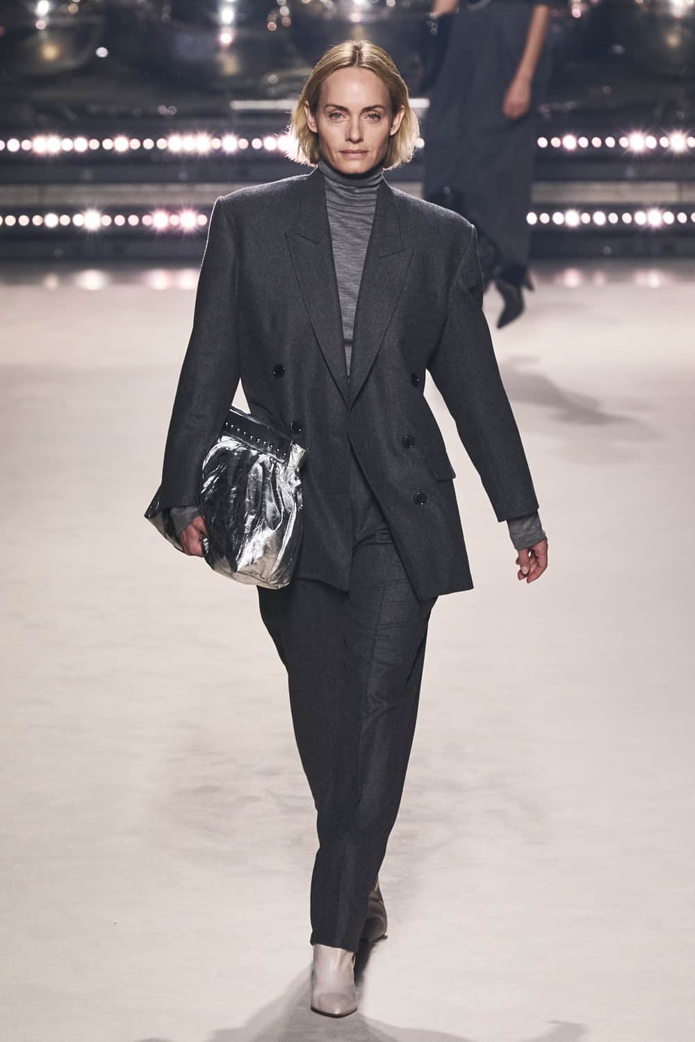For the day’s closure, I was summoned to Colonnes de Buren to see Isabel Marant’s new collection. When entering the hall, a pool with silver balls at the center caught my eye. It was part of the stage. The models carried a super feminine line in the best Marant style, with simple and delicate hair as well as make up. Natasha Poly stood out wearing high knee boots, a sweater, and an extra large coat. Items with big shoulder pads were present, as were high waisted pants and belts that highlighted the models’ waist.