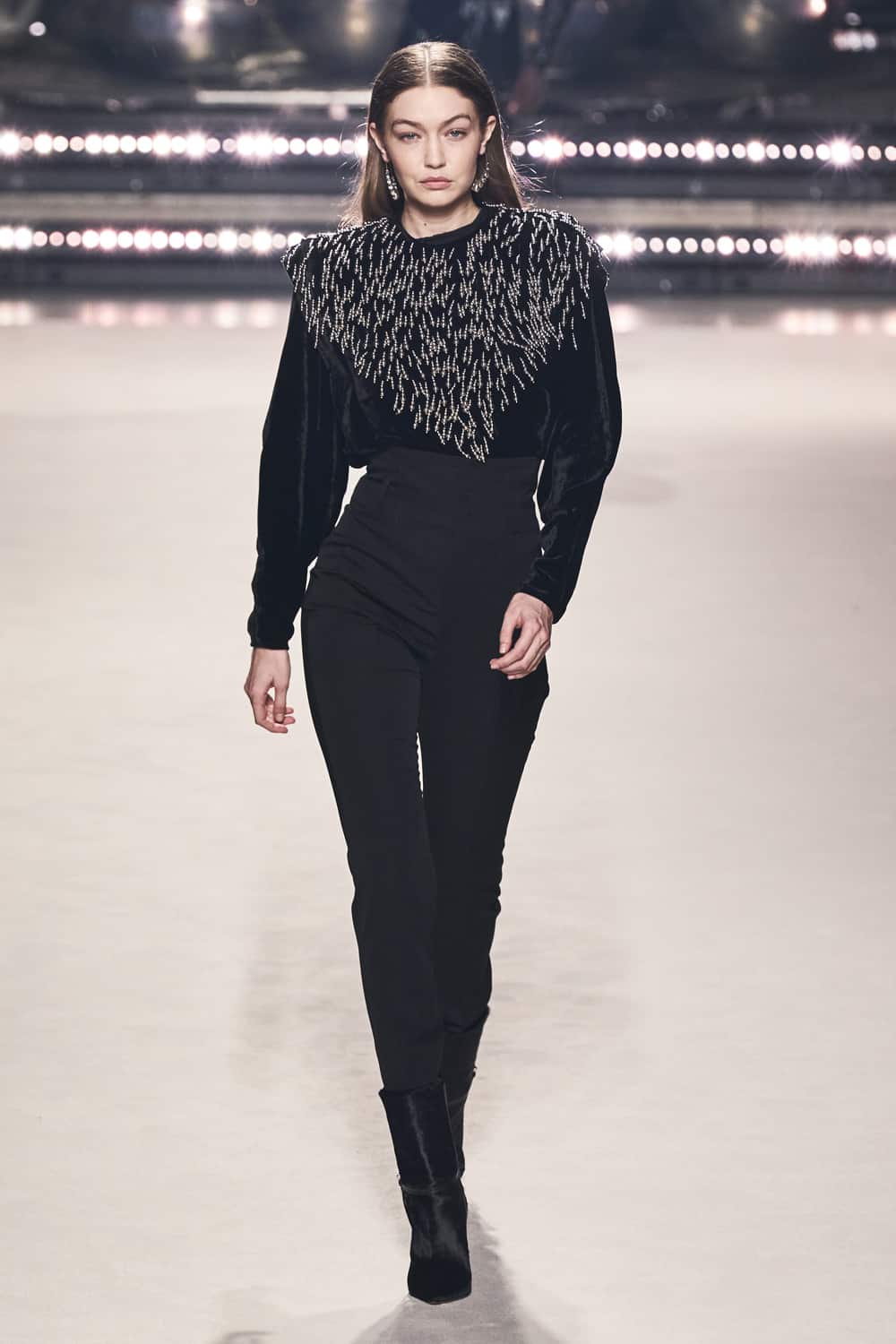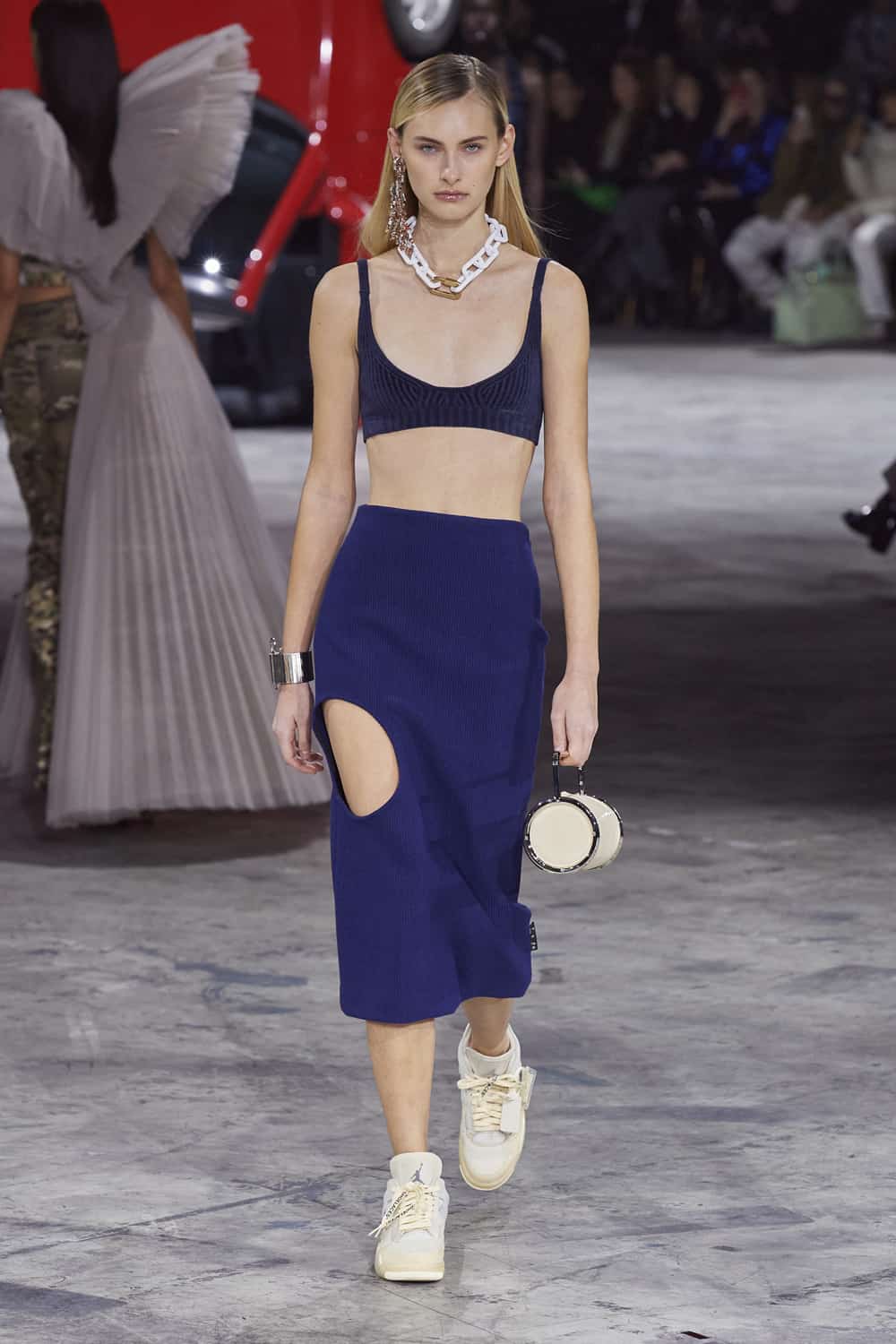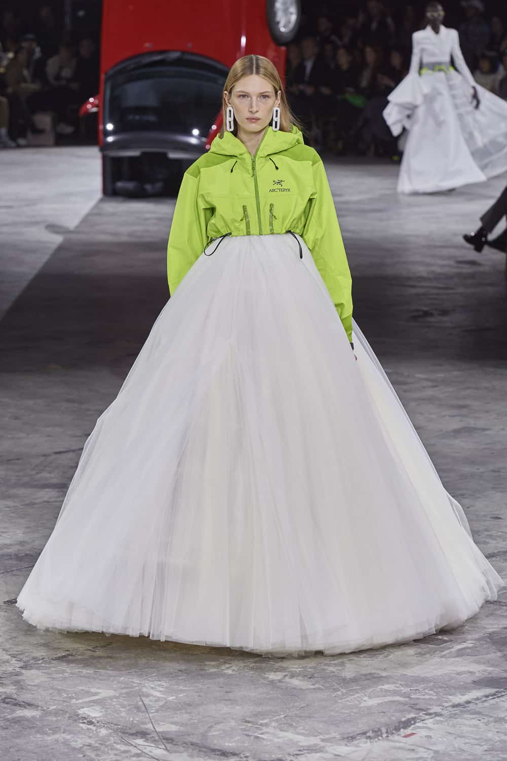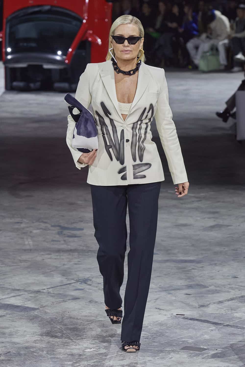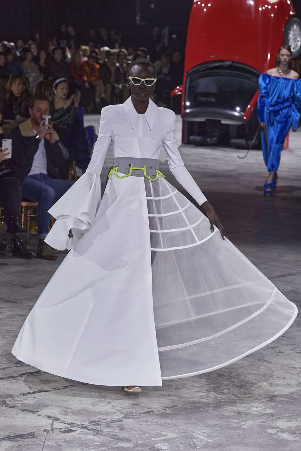 Off-White presented its collection at the AccordHotels Arena. Car parts were part of the scenography and there was a spot for guests to take pictures. It was a show brightened by celebrities: apart from sisters Bella and Gigi Hadid — brand favorites — their mother, Yolanda, and Karlie Kloss also walked the runway. The strongest proposal for this season were different windbreakers combined with maxi tulle dresses.