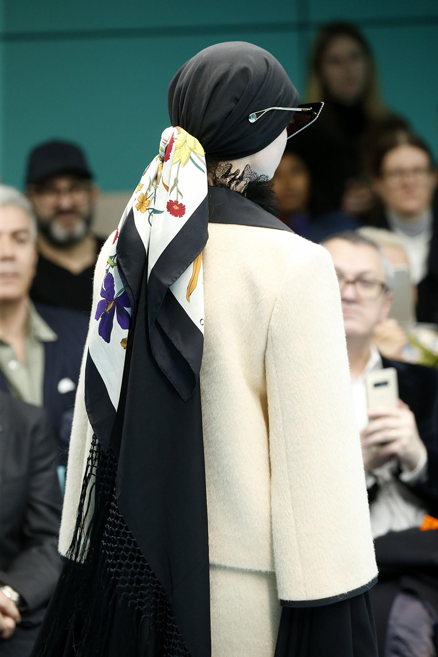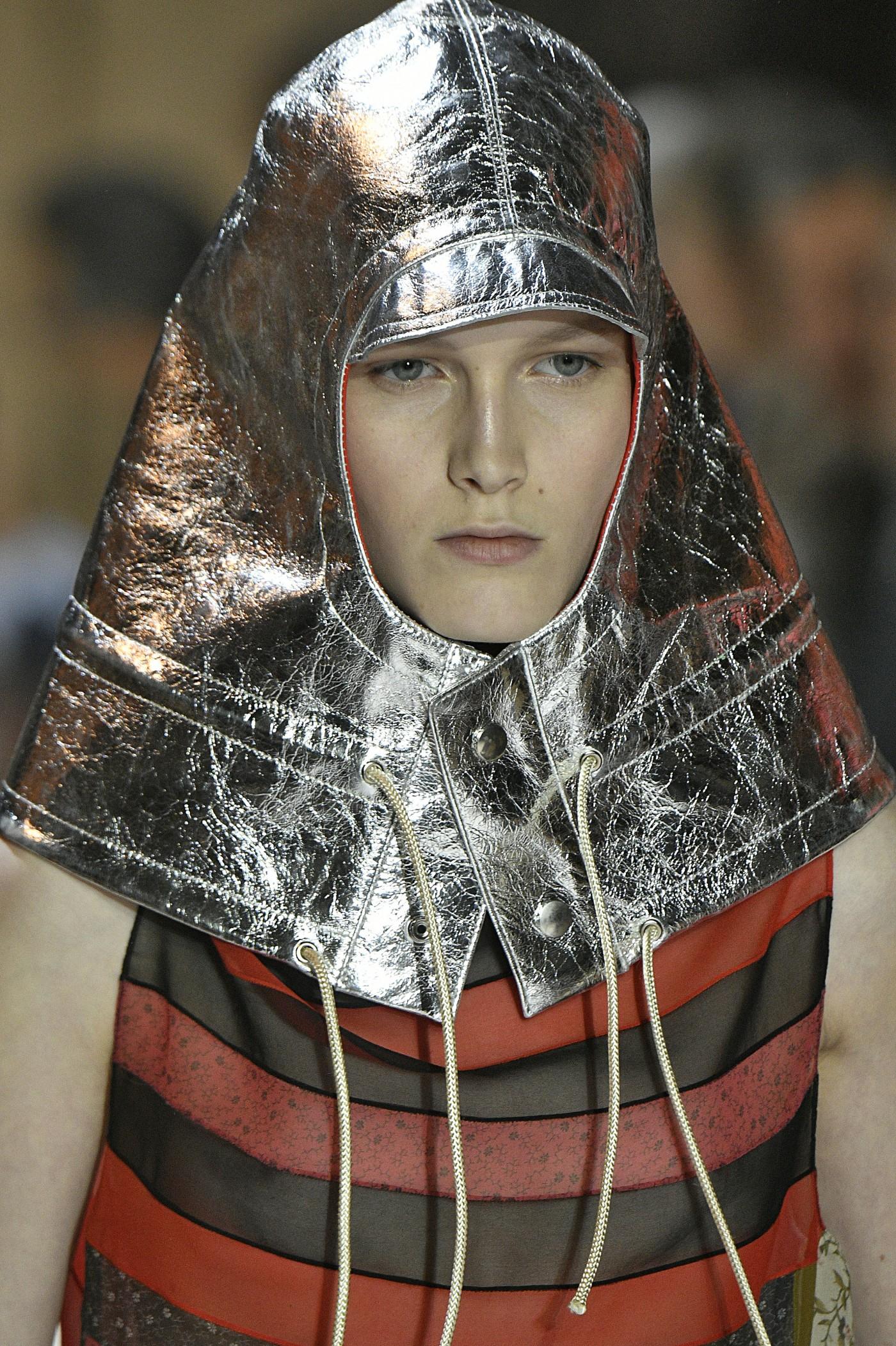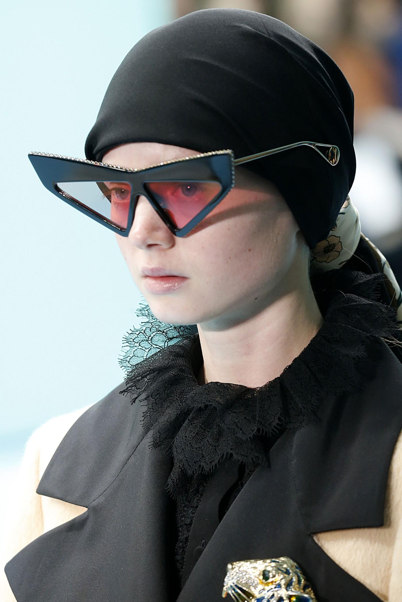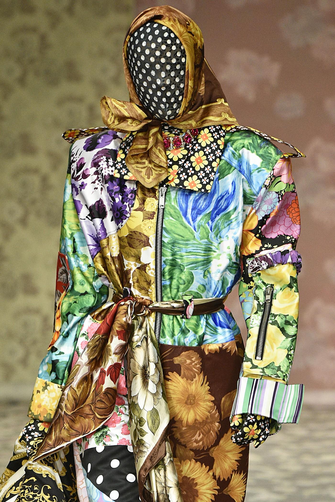 Next, it was Gucci’s turn to ride the no-hair train. And boy, did designer Alessandro Michele have fun with that! This time the balaclavas came adorned with everything from pompoms to pagodas.