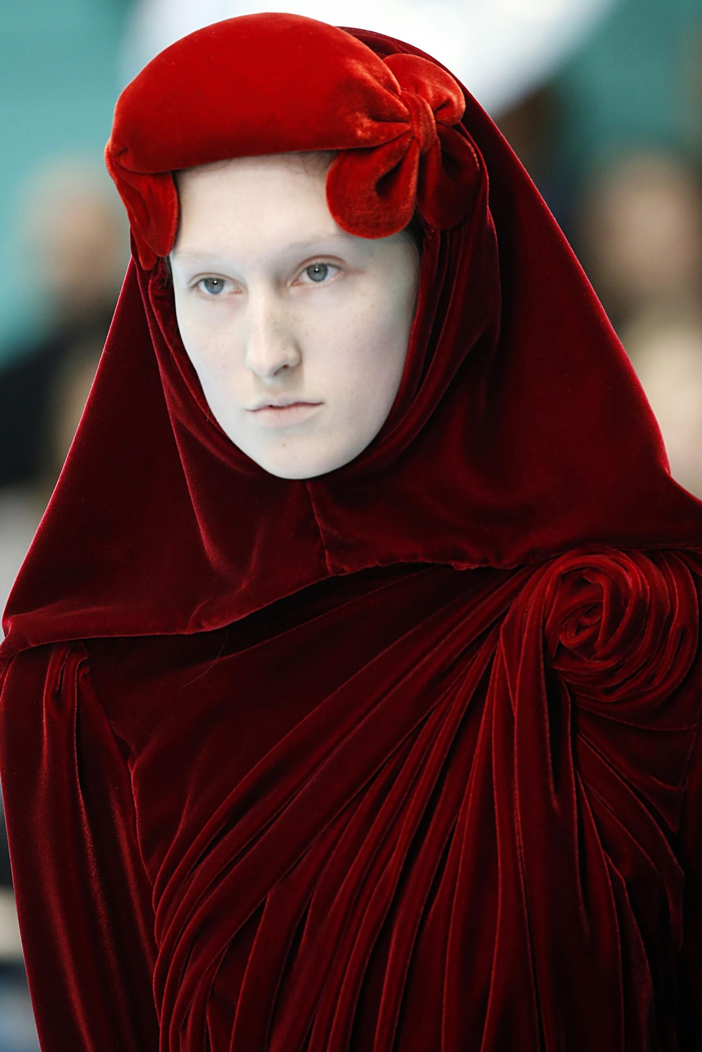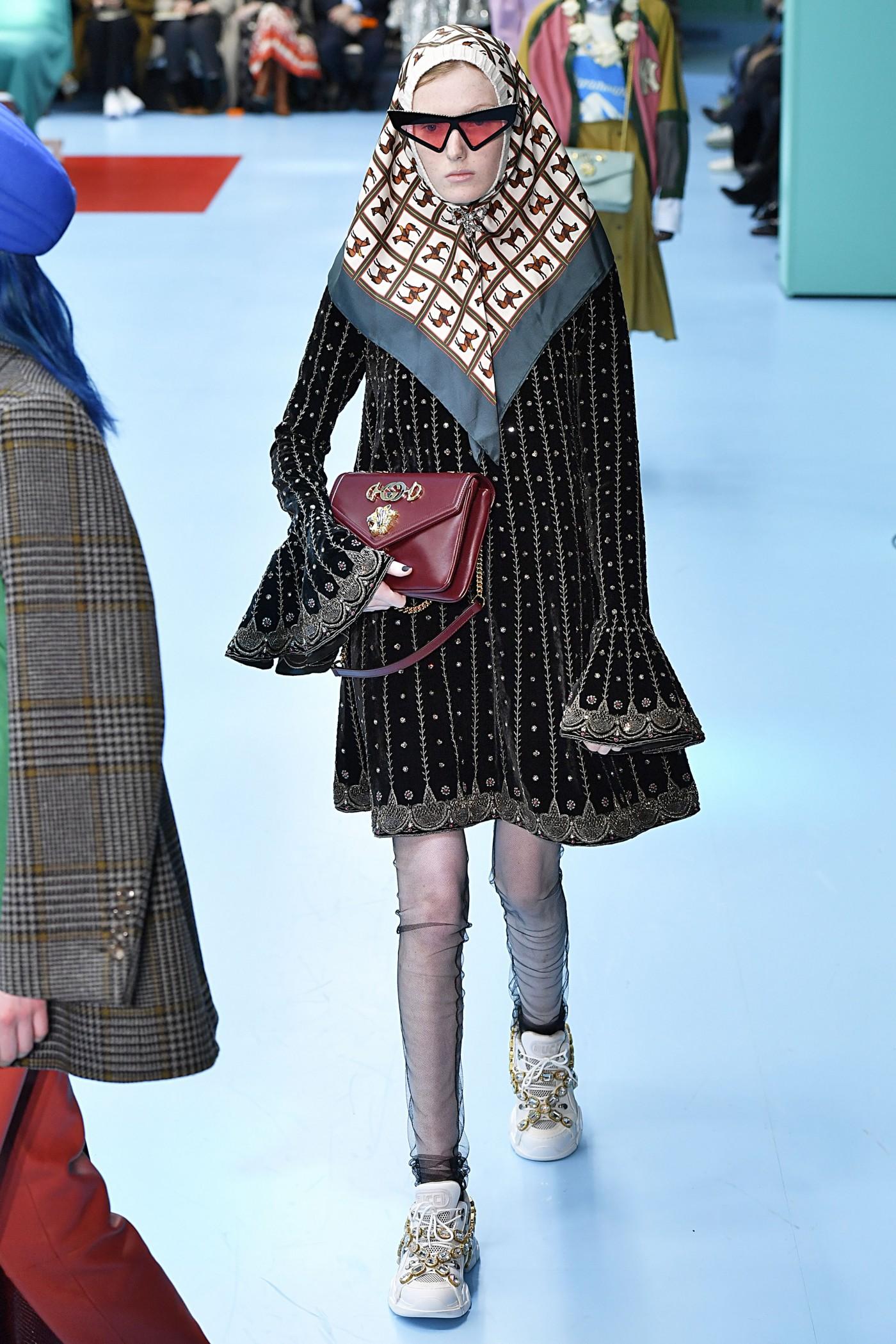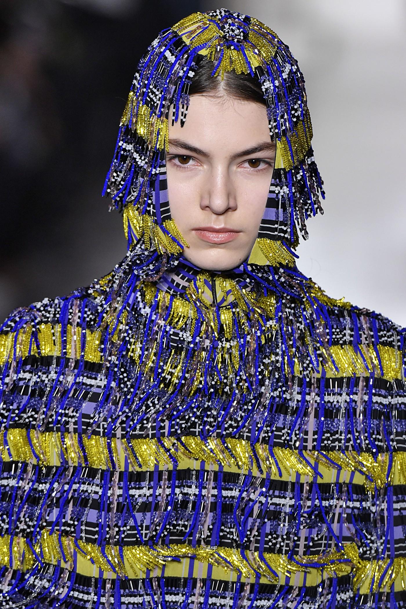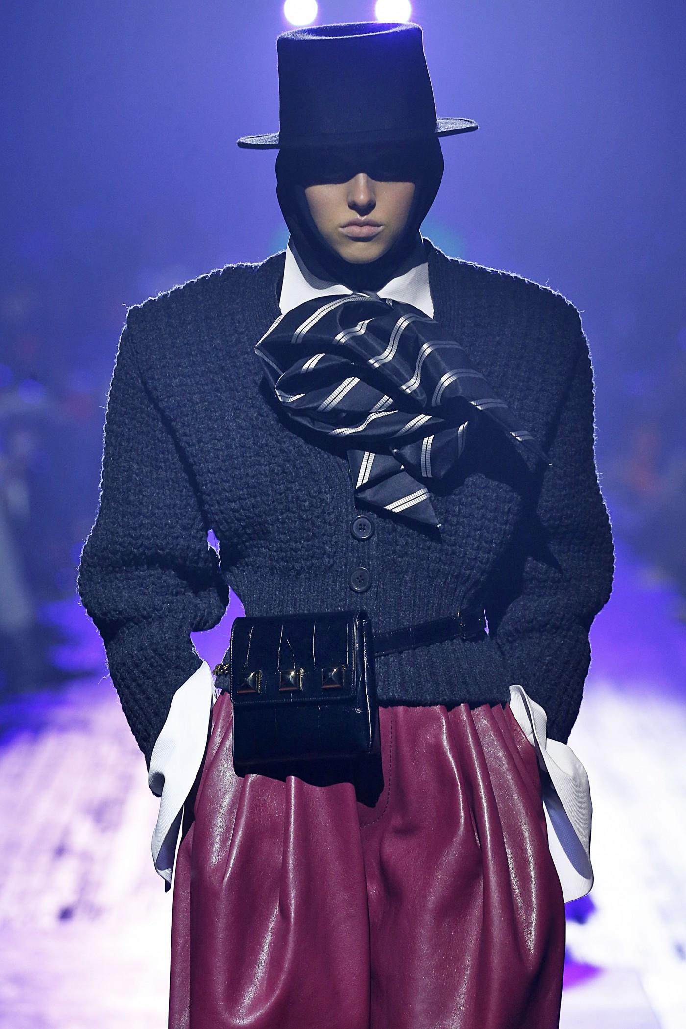 Next, it was Gucci’s turn to ride the no-hair train. And boy, did designer Alessandro Michele have fun with that! This time the balaclavas came adorned with everything from pompoms to pagodas.