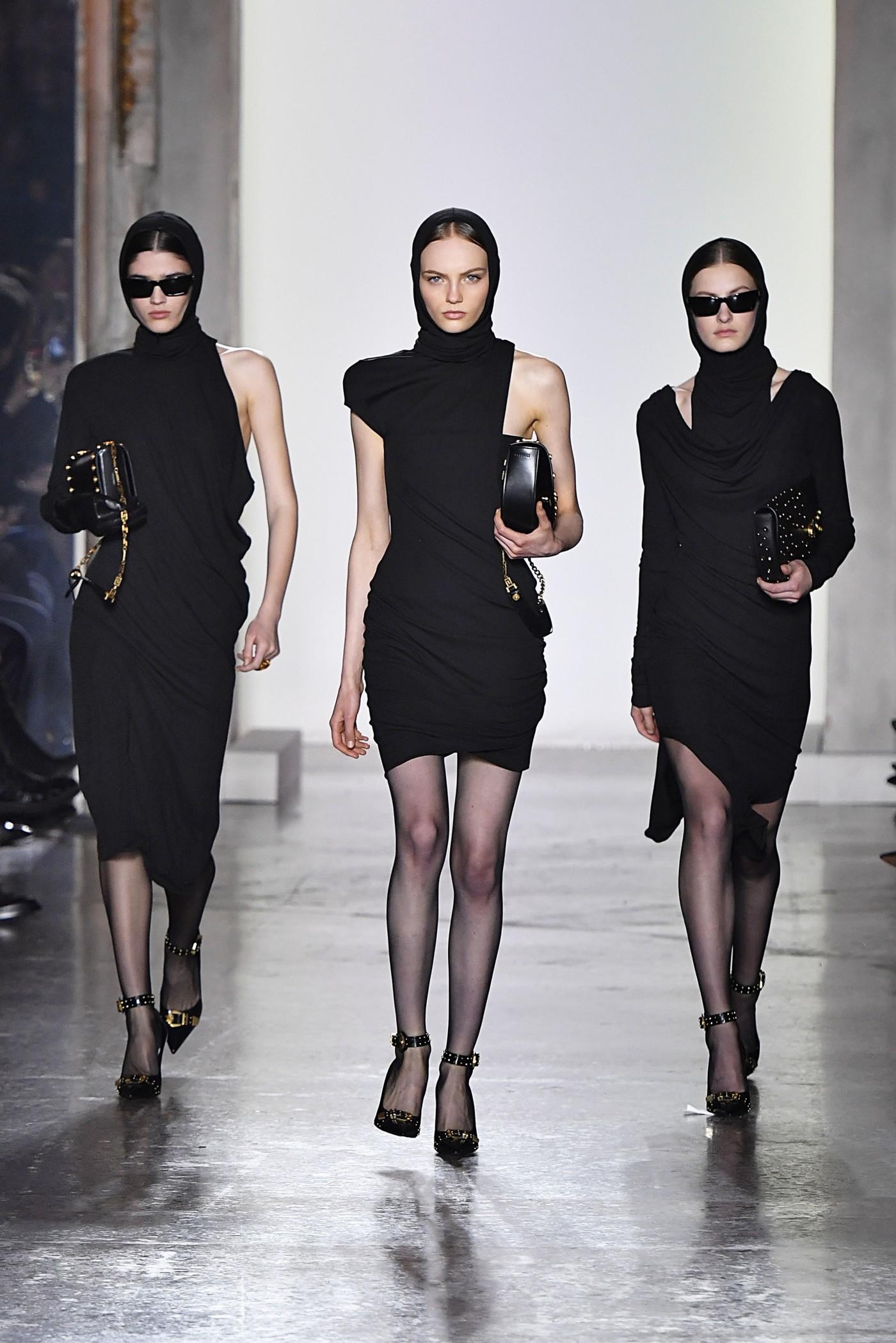 Even at Versace, the house that sex built — where fabulous blowouts are practically a part of the brand’s DNA — Donatella sent approximately half of her glamazons out on the runway with their heads partially or fully covered.