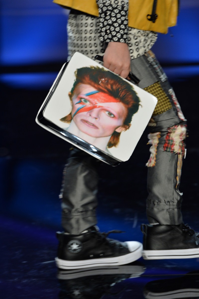 It’s that time of year again when FIT holds its annual Future of Fashion Runway featuring work from the top students from the graduating class. Once again Calvin Klein Inc. sponsored the event with Calvin Klein himself in attendance alongside Shaun Ross, Ryan Leslie, Daniele Braga, Francisco Costa, Dennis Basso, Elie Tahari, Stefano Tonchi, Ken Downing, Tim Bryan, and Annie Georgia Greenberg. Last night’s show was hosted by Leandra Medine and featured award-winning looks in sportswear, special occasion, knitwear, intimate apparel, and the show-stealing childrenswear categories. (Check out the pic below of the mini dude holding the David Bowie lunchbox.)
