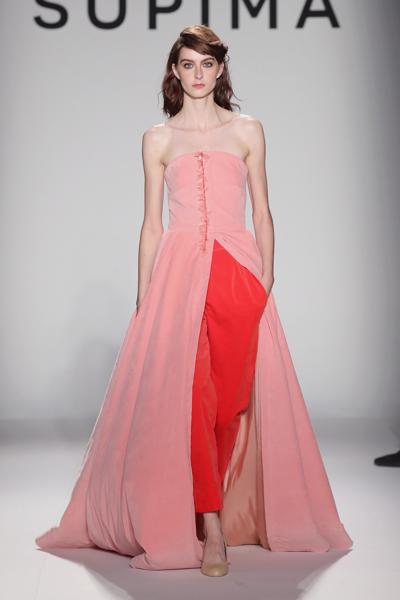 - NEW YORK, NY – SEPTEMBER 07: A model walks the runway at Supima Design Competition SS18 during New York Fashion Week at Pier 59 on September 7, 2017 in New York City. (Photo by JP Yim/Getty Images for Supima Design Competition)