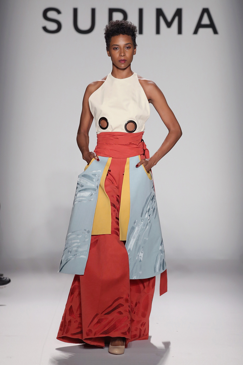 June Ambrose hosted the runway show for the first time and designer Bibhu Mohapatra served as a mentor to the designers for the third year in a row. “There’s nothing more gratifying than to work with the future of our industry,” said Mohapatra backstage. “Also, going through the process with them is incredible. I try to give them whatever I know from my experience.” Mohapatra credited Fern Mallis as having served as his mentor, who also was a judge for the competition. Other judges included Fitz. Co co-founder Alexandra Wilkis Wilson, stylist Carmen Lilly, ELLE executive market editor Jade Frampton, Fashion Unfiltered founder Katharine Zarrella, Allure market director Nicole Chapoteau, The Daily Front Row fashion editor Paige Reddinger, S’well founder Sarah Kauss, 3×1 designer Scott Morrison, WWD business reporter Tracey Greenstein, Fashionista deputy editor Tyler McCall, and Observer columnist Zach Weiss.