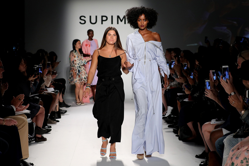 - NEW YORK, NY – SEPTEMBER 07: (L-R) Buxton Midyette and Winner Alyssa Wardrop, FIT attend Supima Design Competition SS18 runway show during New York Fashion Week at Pier 59 on September 7, 2017 in New York City. (Photo by JP Yim/Getty Images for Supima Design Competition)