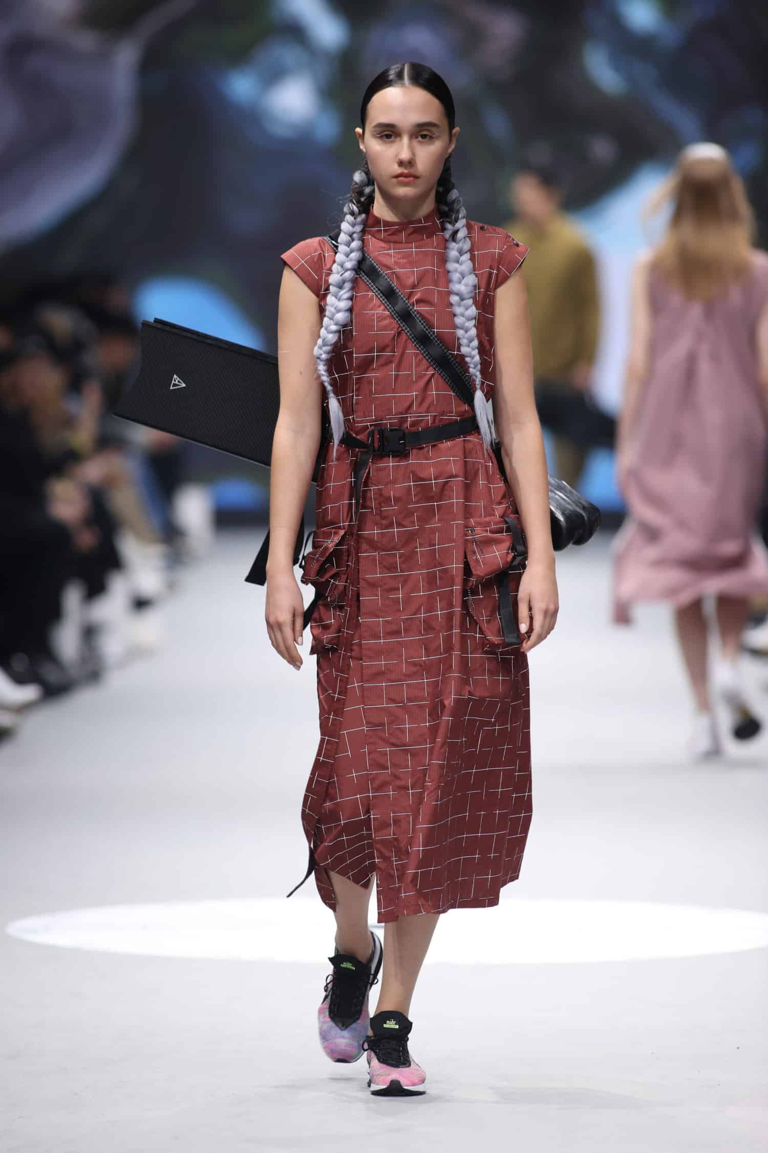 Fashion meets function at the brand oqLiq, and Spring Summer ’23’s collection ‘Aura Protection’ was no different. On this occasion, designer Hong, Qi opted to focus on water resistant, moisture wicking pieces that bore prints and patterns like plaid, camouflage, and herringbone with contrasting zippers and detailing.