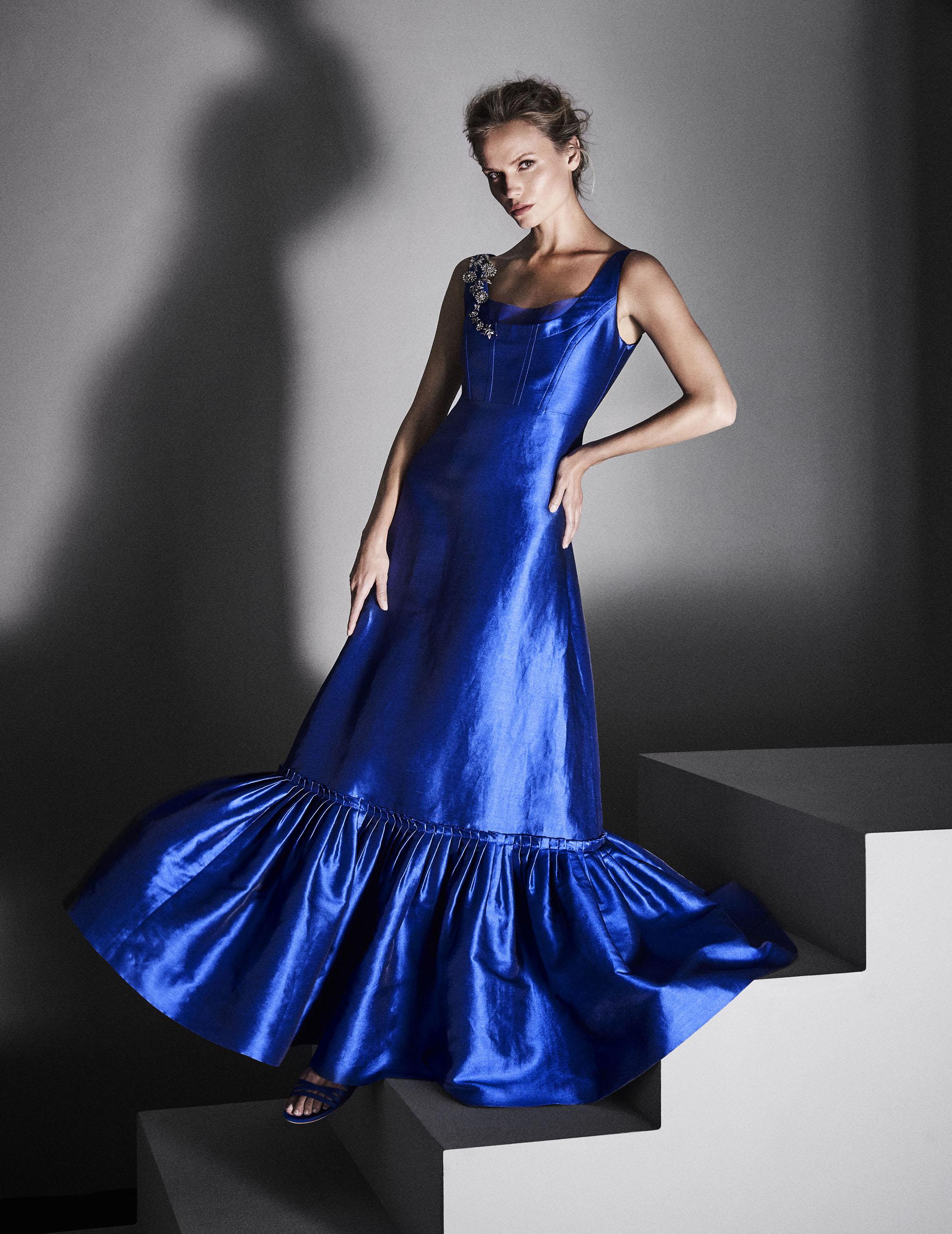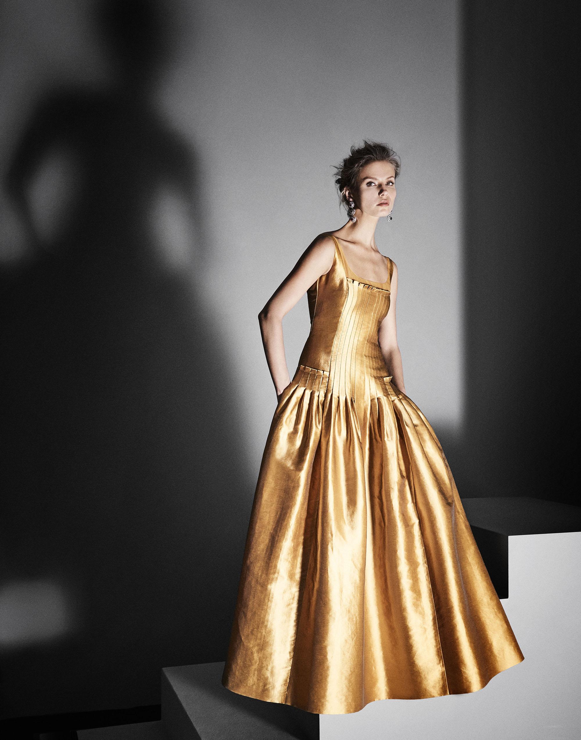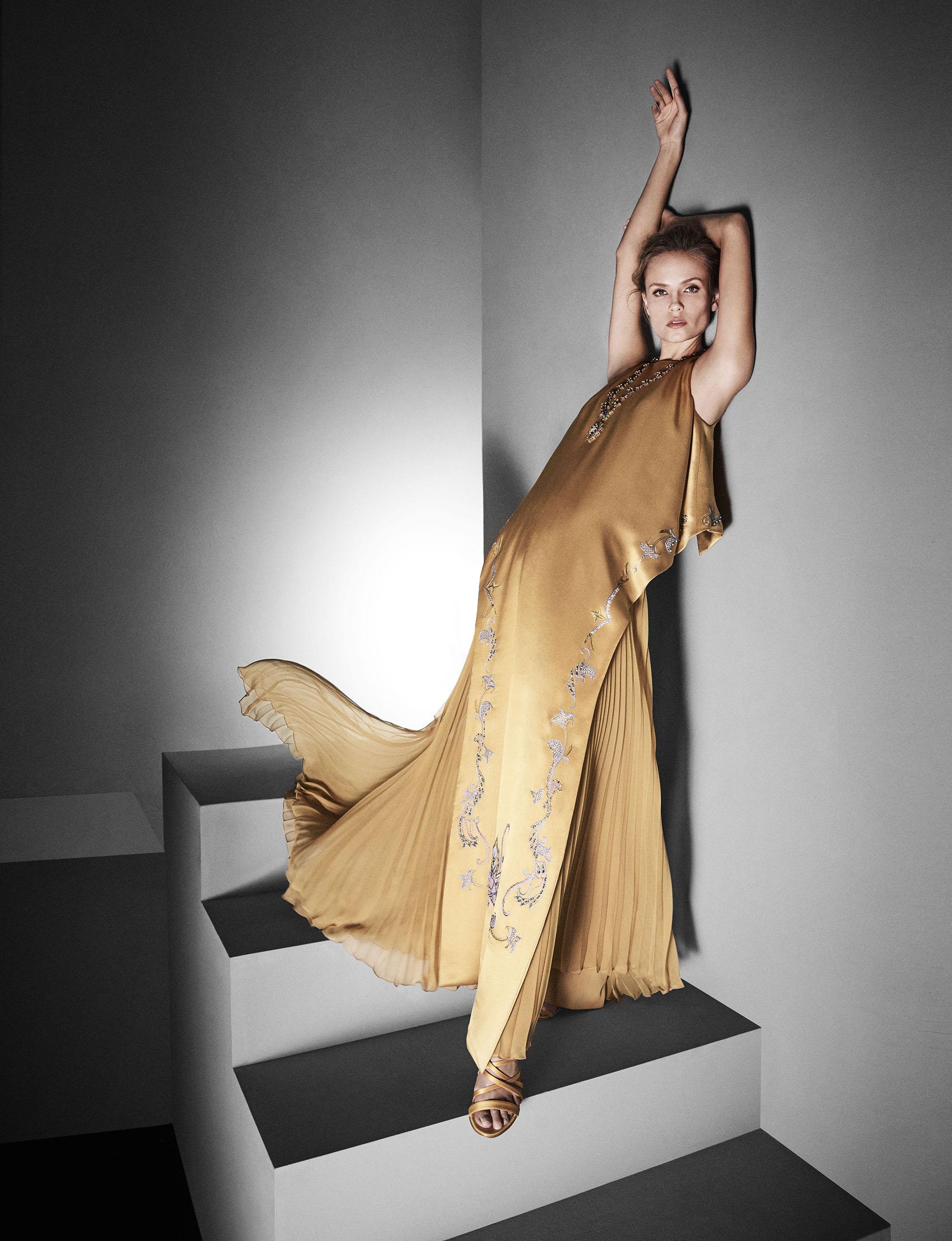 Giampaolo Sgura shot Natasha Poly for Alberta Ferretti’s Limited Edition demi-couture collection, which she unveiled in her Parisian maison at 43 rue du Faubourg Saint-Honoré this week. The collection, which includes 18 dresses named after magical visions inspired by the Shalimar Gardens, features luxe body-clinging silk satin and shantung molds in the more structured looks. Embroidery was embellished with crystal beads on organza and silk tulle dresses or worked into floral fret patterns on chiffon and silk satin.