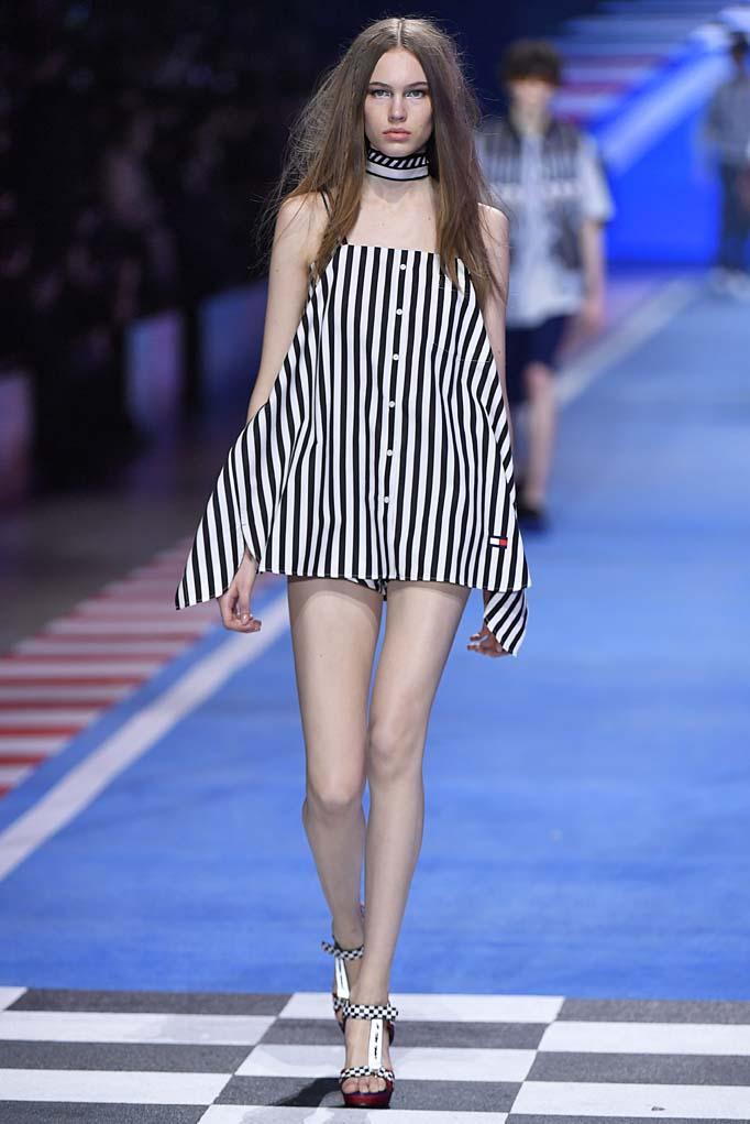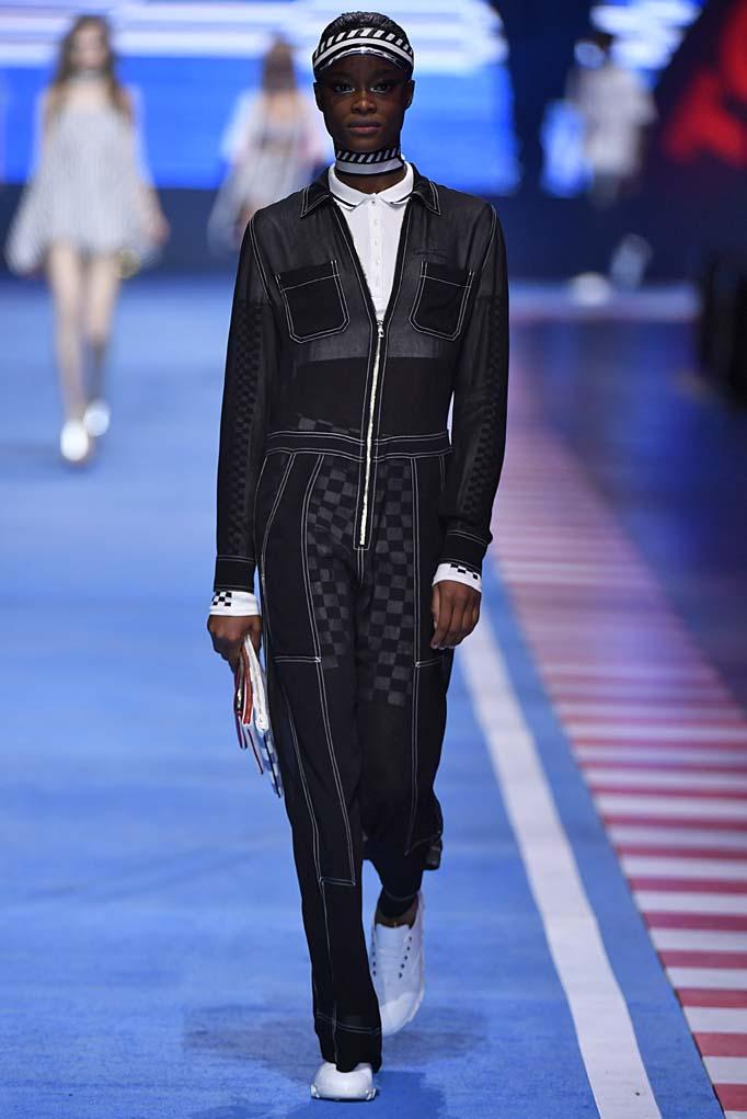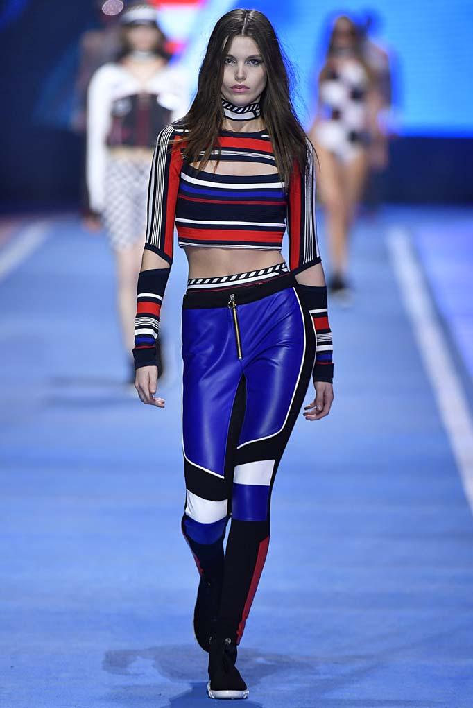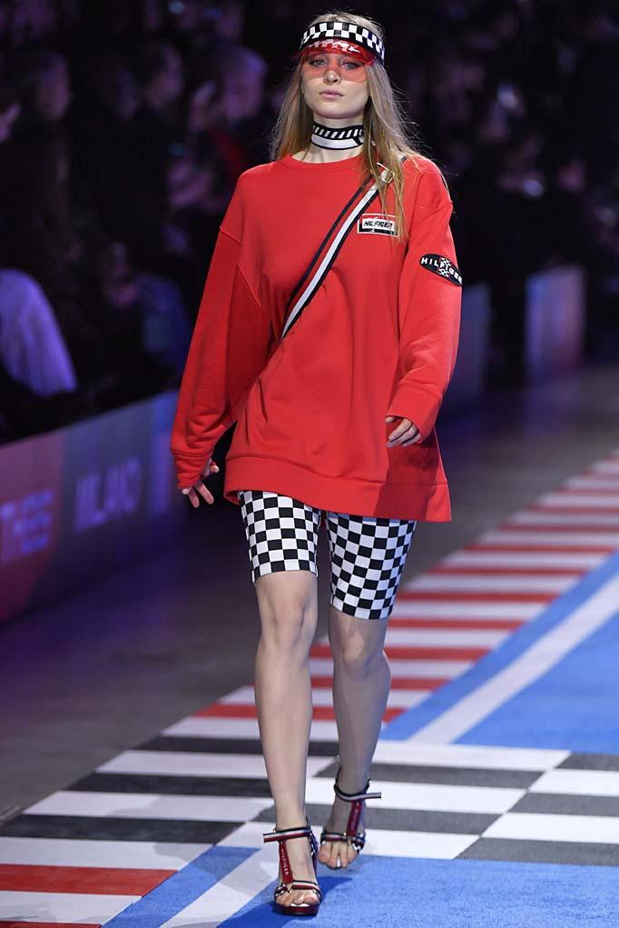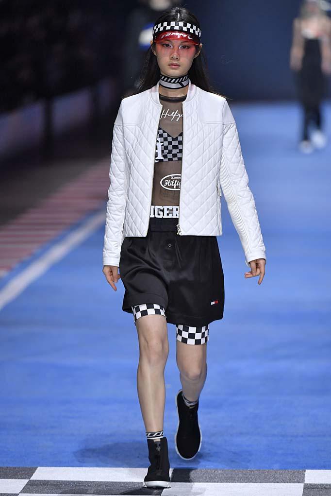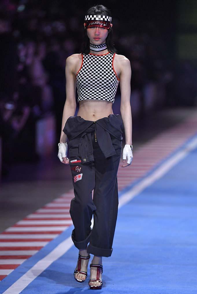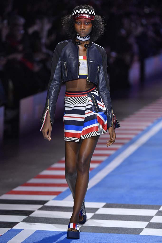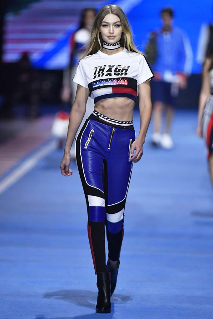 After four collections and more than two years, TommyxGigi took its final bow at Milan fashion week over the weekend with a racing-themed show full of all the things we’ve come to expect from Tommy Hilfiger and Gigi Hadid: leather pants, bare midrifs, cropped jackets, patchwork, stripes, and tons of red white and blue. It was a fond farewell to a fruitful partnership for both parties.