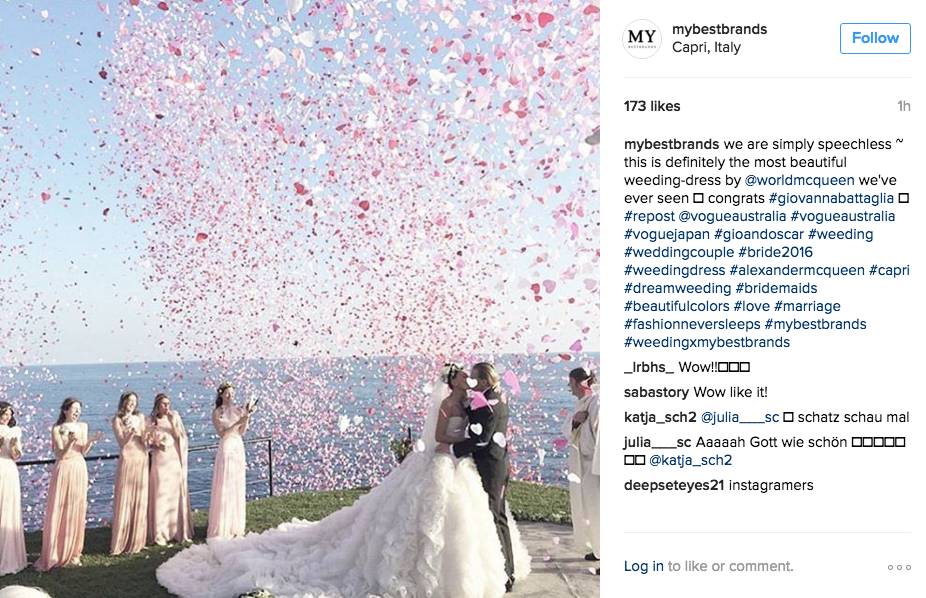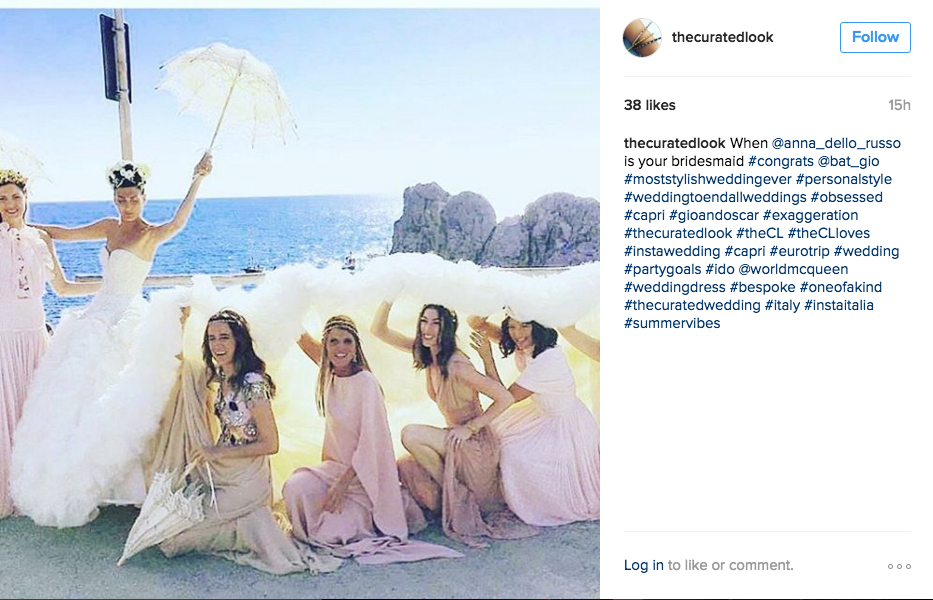 W’s Giovanna Battaglia got hitched over the weekend in Capri to Swedish real estate impresario Oscar Engelbert and threw a bash of epic proportions. The event, captured on Instagram with the #oscarandgio hashtag, showed the bride in a custom Sarah Burton for Alexander McQueen dress for the ceremony with a costume change later in the night to a Giambattista Valli look for the reception. The seriously fashion-y guest list included Rickie De Sole, Brian Atwood, Peter Dundas, Natasha Poly, Misha Nonoo, Alexander Gilkes, Adam Lippes, Tanya Taylor, Lauren Santo Domingo, Derek Blasberg, Kristina O’Neill, Hamish Bowles, Giampaolo Sgura, Linda Fargo, Sebastian Faena, Marjorie Gubelmann, Dasha Zhukova, RJ King, and Anna Dello Russo, who served as a bridesmaid. The pics tell us everything else.