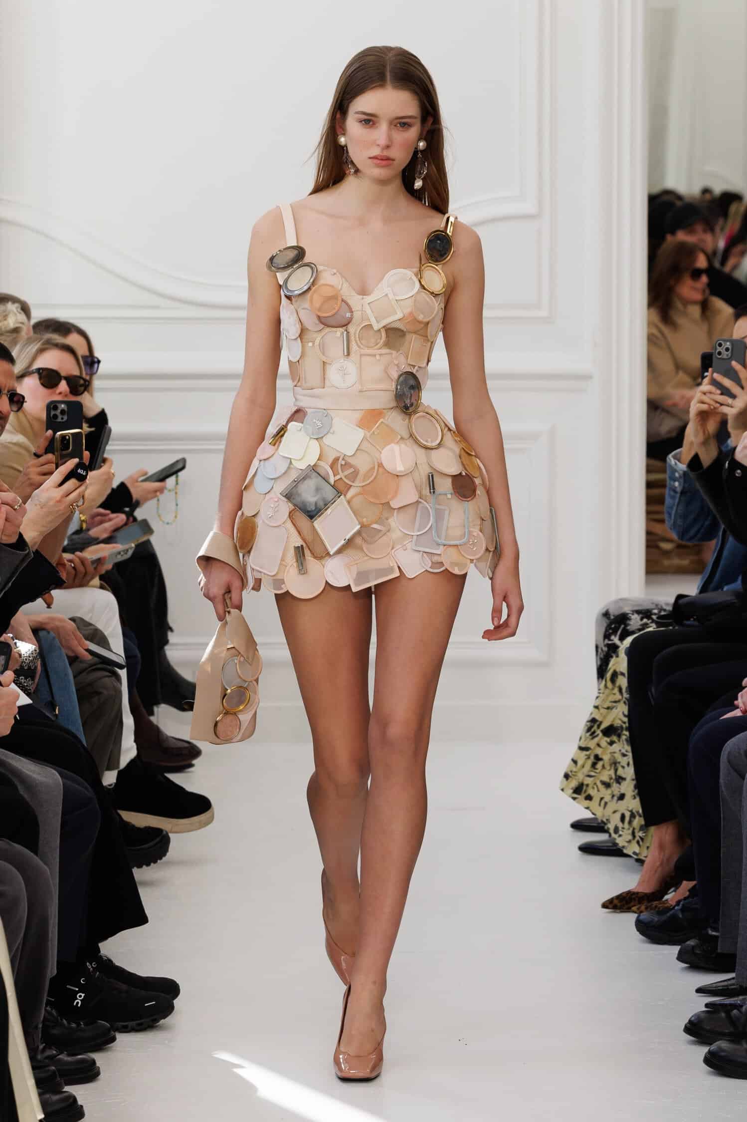 This morning, Sarah Burton presented her first Givenchy collection at Paris Fashion Week. After her appointment as the brand’s new creative director last September, the beloved designer’s debut has been one of the season’s most anticipated shows (equally so with Haider Ackermann’s debut at Tom Ford and Julien Klausner’s debut at Dries Van Noten). Burton’s Fall 2025 collection, drawing inspiration from Givenchy’s own historic atelier, was hosted on-site at Givenchy House. Her longtime strengths—seen throughout her tenure at Alexander McQueen—were evident from the start, focusing on precise tailoring and streamlined silhouettes. Suits were sharply cinched in trouser and skirt sets, emphasized by leather layers, deep necklines, and subtle raw edges. Artisanal details were also elevated throughout the line, from bow-knotted dresses, see-through mesh, and subtly bleeding ombré hems to elegant floral embroidery. Pops of lemon-yellow, black, and white also made the rounds in frothy tulle gowns, though the show’s most-filmed dress was a sleek mini covered in mini embroidery frames, lipstick tubes, and makeup compacts—emphasizing Burton’s wit and penchant for eye-catching glamour. Complementing the range was a similarly smooth lineup of square-toed boots, ribbon-strapped sandals, and glossy ballet flats with wide “Givenchy”-labeled straps. As Burton’s new chapter began, it also arrived with a crowd including Gwendoline Christie, Raye, Rooney Mara, Vanessa Kirby, Kit Connor, Joe Locke, Plum Sykes, and the designer’s own mom and sister (Aw!)—that emphasized her heartfelt sense of community. Brava!