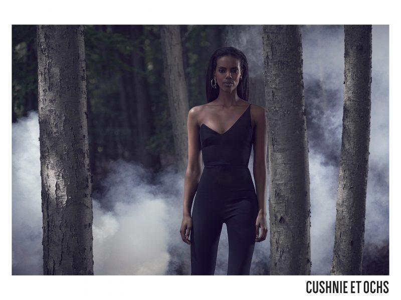Cushnie et Ochs tapped model Grace Mahary for its Fall/Winter 2017 campaign. Shot by Hugh Lippe, Mahary is featured perched in the brand’s body-clinging city slicker looks in a misty forest. The contrast created a softer femininity to the brand’s ultra-sexy DNA.
