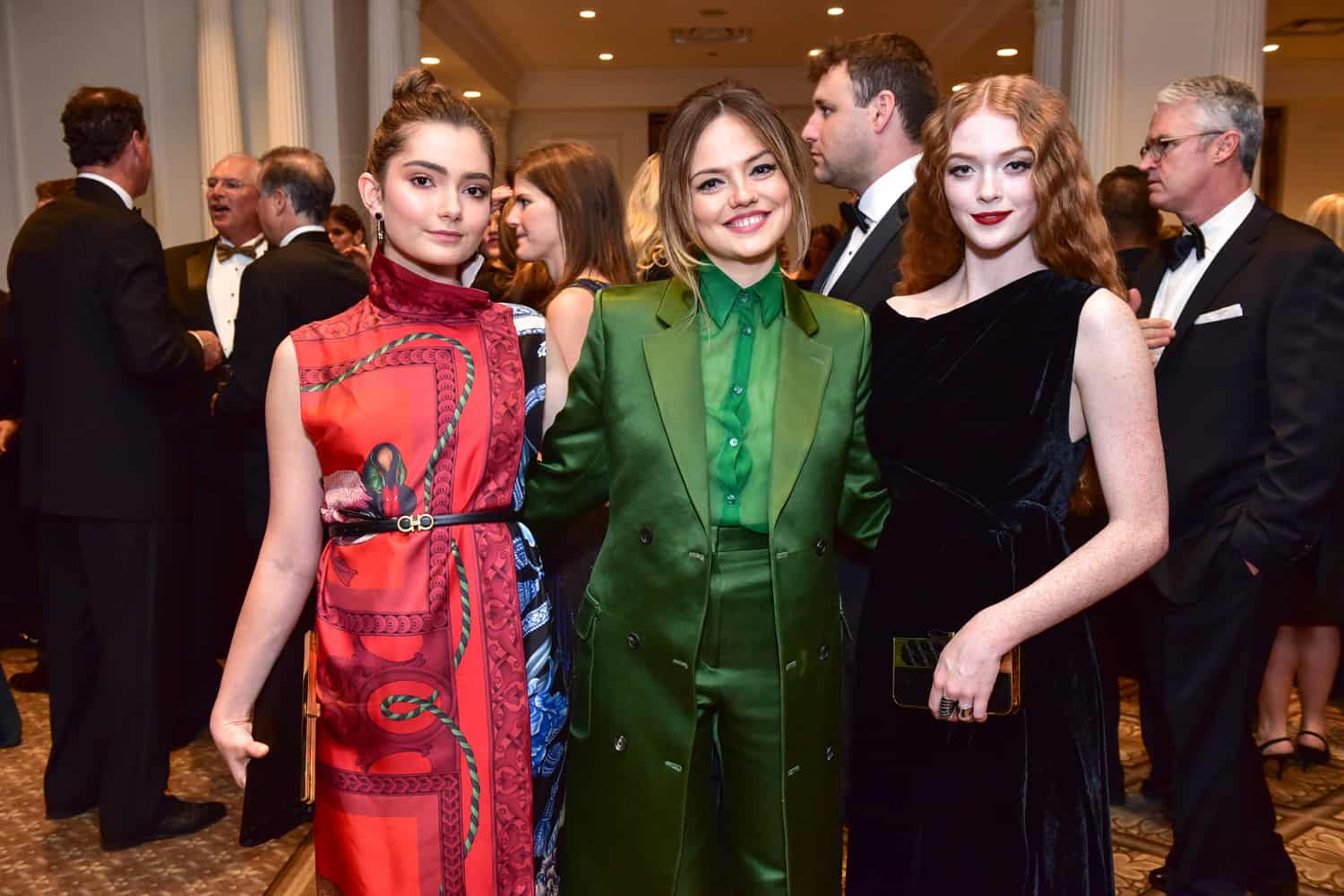 - Emily Robinson, Emily Meade, and Larsen Thompson, all in Ferragamo (PMC)