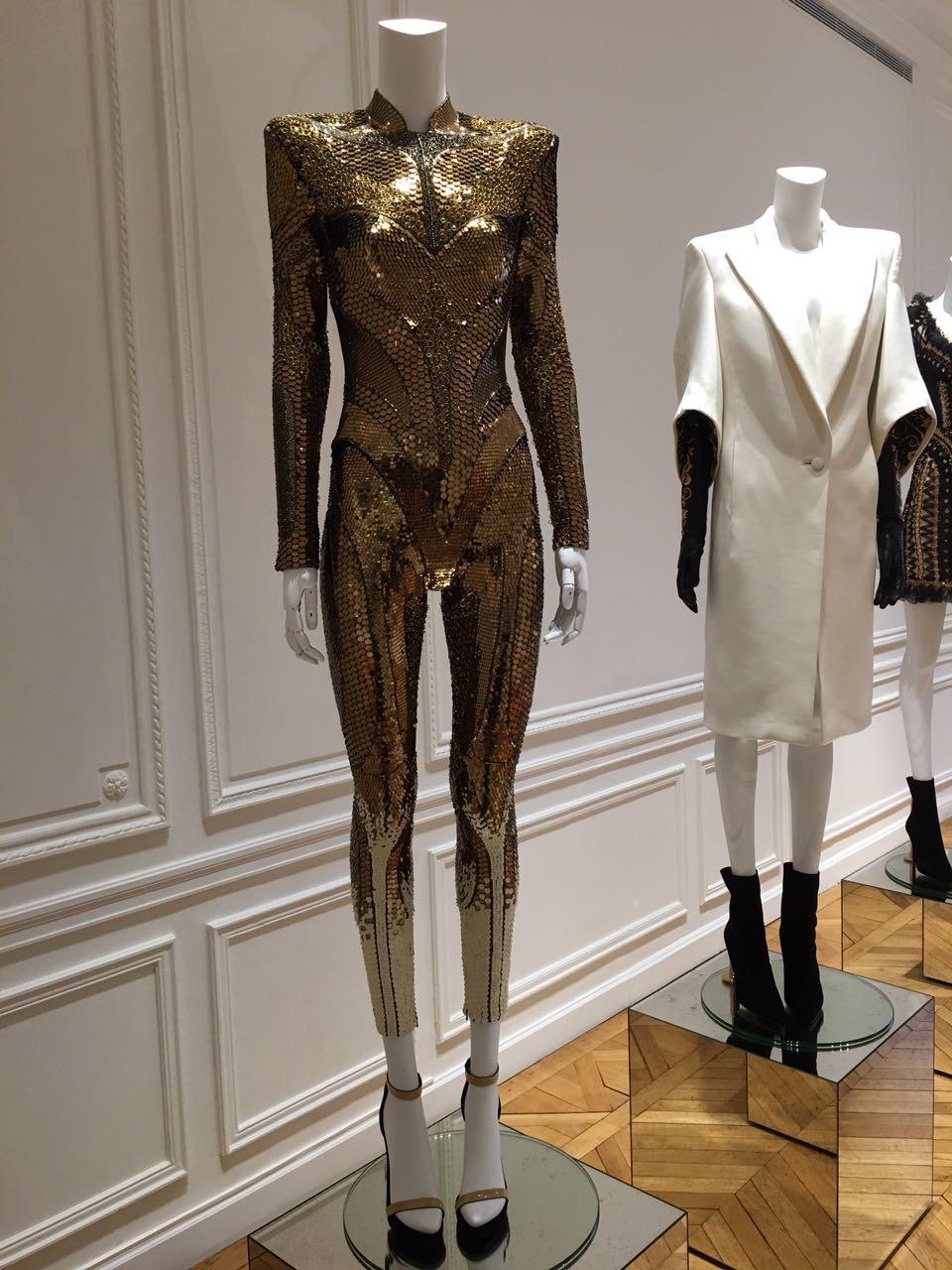 I went to see the presentation of the Versace Haute Couture collection, which was outstanding. On the second floor of the Versace boutique in Avenue Montaigne they had all of the dresses displayed on mannequins. The first look that caught my eye was a catsuit embroidered on a stretched jersey base. It looked like golden armor, but it was completely soft to the touch. The inspiration for the collection was from the Steven Meisel Versace campaign from the ’90s and the Chimaera from Greek mythology. I’ve never seen so much embroidery, design and structure on a dress—they were like sculptures. Many of the dresses were short, and the large shoulder shape gave a modern feel to couture. Each one of them was spectacular and every dress had a story about how it was made. It was very nice to see the dresses up-close and to be able to see the details and work behind each one of them.