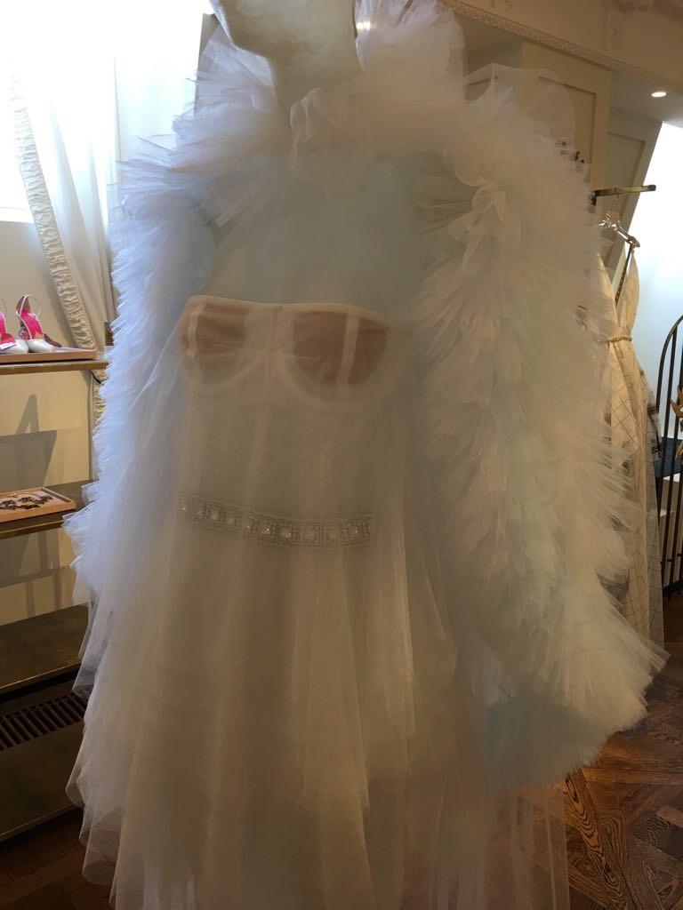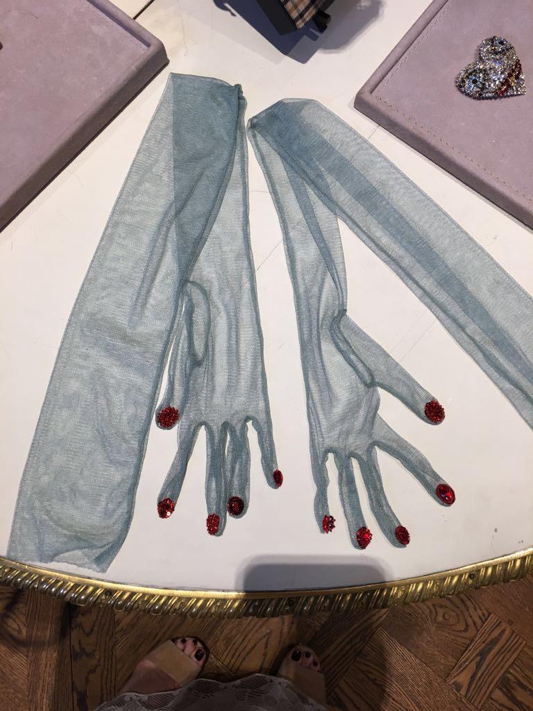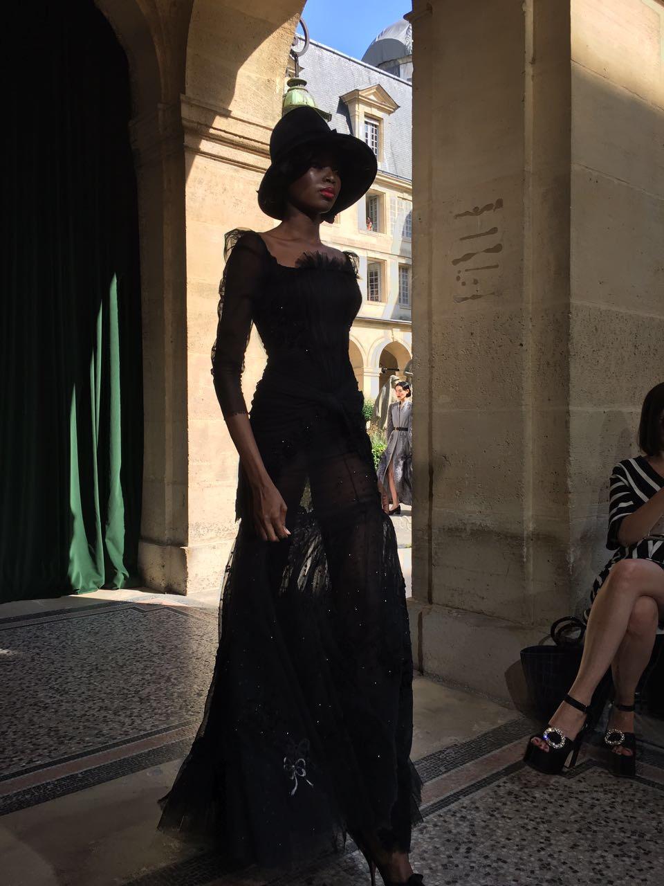 The day started with a Schiaparelli re-see at the showroom at the Place Vendôme. It was a beautiful summer day and the sun was shining—a perfect day to see couture. The collection was inspired from the paintings of Picasso’s Cubist era and Rothko. One of the tulle dresses combined its soft movement with intense colors, just like the Rothko paintings. The collection had many trompe l’oeil details, one of my favorite was the tulle gloves with red embroidered nails. Another look I liked was a tulle bodysuit with embroidered necklaces, bracelets, and a watch. I love seeing how fashion can be fun and incredibly beautiful at the same time. I always enjoy going to the Schiaparelli showroom. I feel like a little girl playing with dresses. The last room was my favorite…full of my dream dresses to get married in again! All made out of white tulle, they felt so comfortable and light, just like a cloud in the sky.