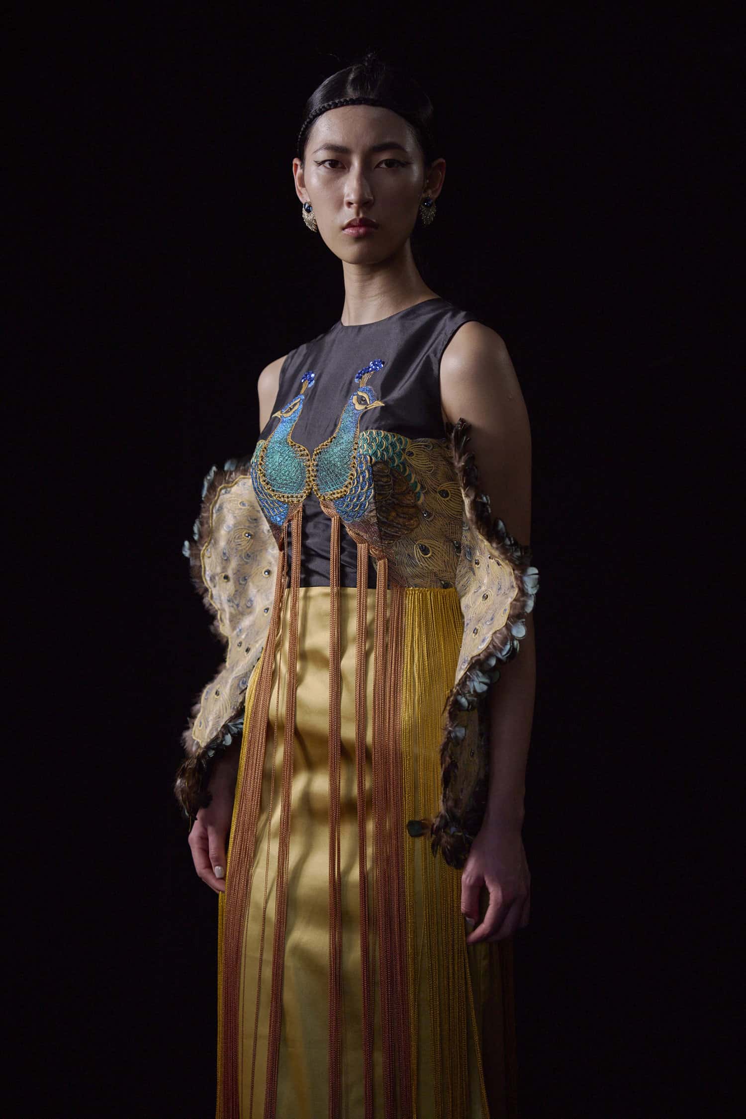C JEAN designer Chun-Yuan Jean teamed up with Qinq-Shuang Wang, a master lacquer artist hailed as Taiwan’s ‘number one living national treasure.’ Together, they collaborated on intricately detailed pieces which combined the craft of high lacquer painting and high-end bespoke fashion, with exquisite results.
