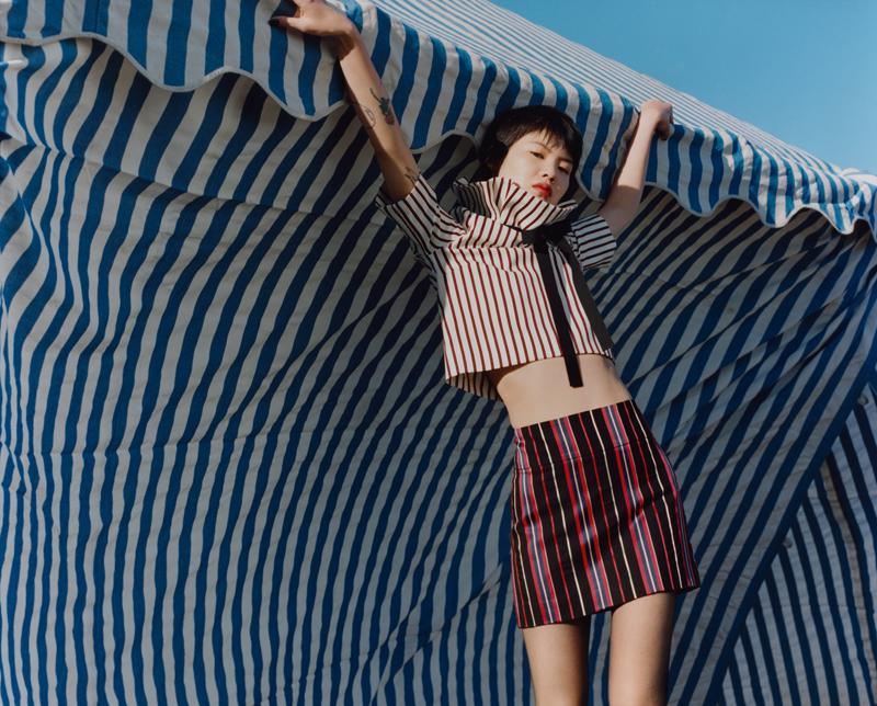 Inspired by David Lynch’s Crazy Clown Time, Twin Peaks, and Wild at Heart, Hugo Boss’ Fall/Winter 2017 campaign is a quirky take on Americana shot on an old fairground in California and its surrounding countryside. The campaign features stars from the worlds of music, art, fashion, and, of course, social media. The highlight is MIA, who performed at the Hugo Boss show last month, sporting a killer multi-colored pinstripe suit and a gorgeous raspberry velvet gown…the latter while perched in the branches of a tree. Other campaign stars include IT model and musician Jamie Bochert, actor Jamie Campbell Bower, actor and model Tony Ward, social media stars Lisa and Lena, model and designer Camilla Deterre, artists and model Wilson Oryema, skater and model Olan Prenatt, and models Paul Hameline, Manami Kinoshita, and Aida Blue.