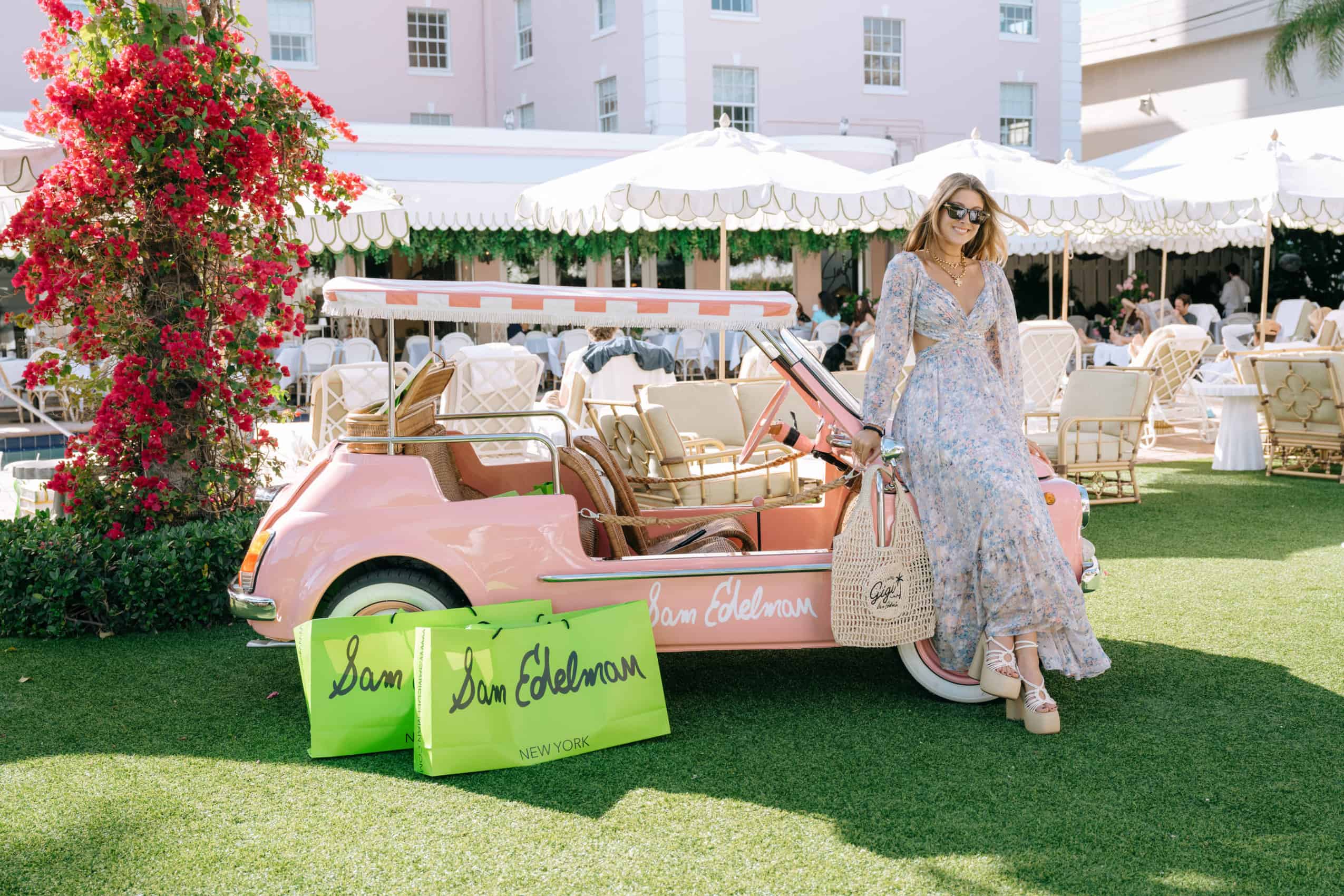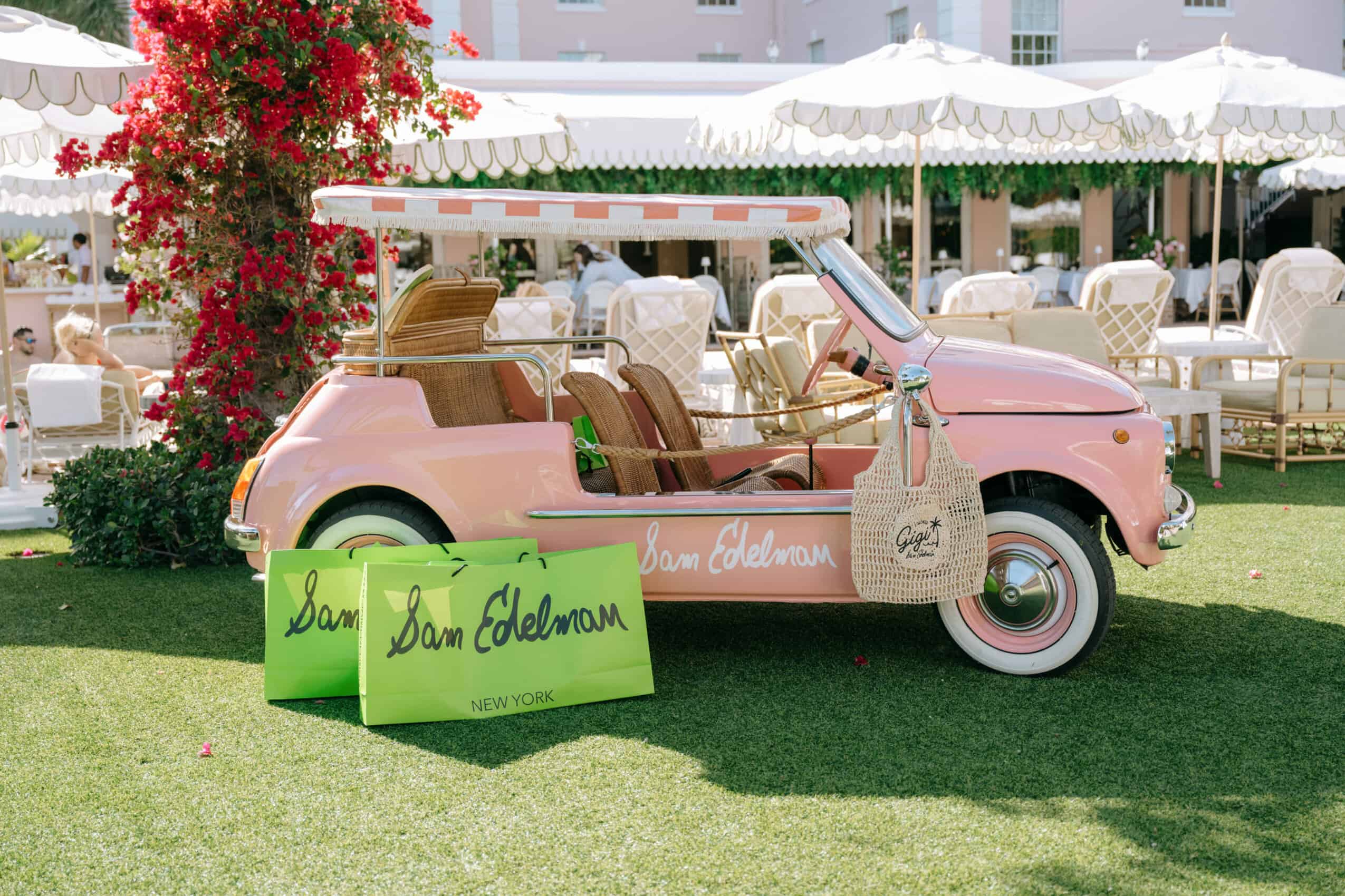 Things kicked off with a VIP launch party, which saw more than 150 tastemakers head to the pink-hued venue to raise a glass to the concept pop-up shop, aptly named L’Hotel Gigi. Attendees mixed and mingled while exploring an array of wardrobe essentials from the lifestyle brand, including whimsical dresses, must-have denim, and a curated assortment of footwear, created to take you from poolside morning coffee to evening cocktails in the courtyard with ease. Instagrammable event highlights included a Sam Edelman branded pink Fiat Jolly, signature “clean” cocktails, and live music at sunset.