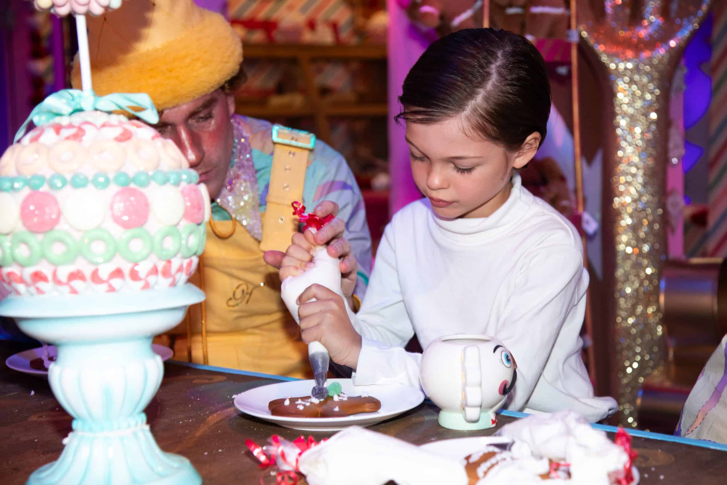 The unprecedented Holiday Village experience must be seen to be believed. The immersive experience is Instagram gold, as the village brings the North Pole to life with Santa and Mrs. Claus on hand, gifts, candy, and live performances by elves wearing custom creations by NYC-based brand Wiederhoeft. Other highlights include Hardy’s House of Ornaments, offering one-of-a-kind, specialty decorations; PJ’s Peppermint Emporium, a candy cane extravaganza with peppermint-striped products from socks to throw blankets; Magical Maggie’s Mittens and Scarves, a boutique market selling luxury winter apparel including cashmere scarves and sweaters; Nutcracker Factory, a destination for Christmas décor; and Glitter Factory, featuring custom gifts and crafts for children. Naturally, there’s even spots to get hot cocoa, fresh macaroons, and make gingerbread houses and cookies at Mrs. Claus’ Gingerbread Bakery.