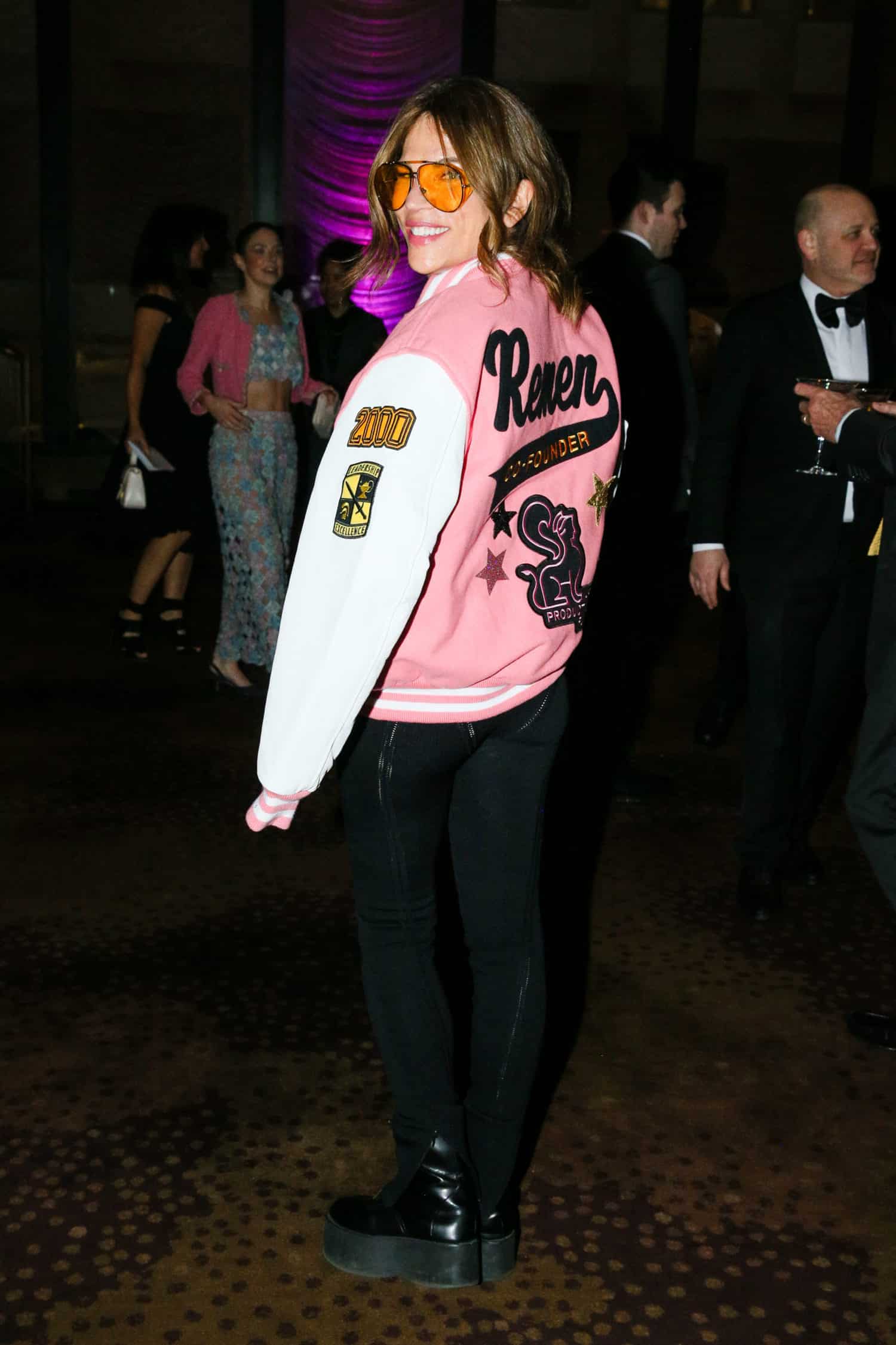 The evening, presented in partnership with Saks, brought together over 300 people who took the theme—APT REUNION—seriously. In other words, guests donned their colorful finery with enthusiasm and quickly draped themselves in the black and white Letterman jackets which had been customized with their names by Vista. While sipping Ruinart Champagne and martinis (poured through an APF custom ice luge!), attendees enjoyed a routine from Cheer New York cheerleaders and an immersive performance by Sanford Biggers’ multimedia concept band Moon Medicin, presented by GUCCI.