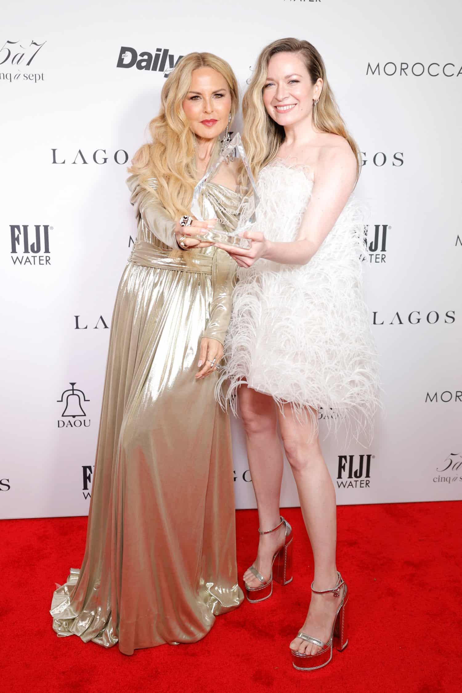 The Awards honored a range of stars across fashion, beauty, modeling, and more, who all create the “puzzle”—as several recipients noted—that make up the media industry at large. Sarah Michelle Gellar presented the Makeup Artist of the Year honor to makeup artist Rachel Goodwin. In truly Zoe fashion, Rachel Zoe winged her speech to present Erin Walsh with her Stylist Curator award. And Doja Cat humorously introduced longtime stylist Brett Alan Nelson, both outfitted in matching lingerie-inspired looks.