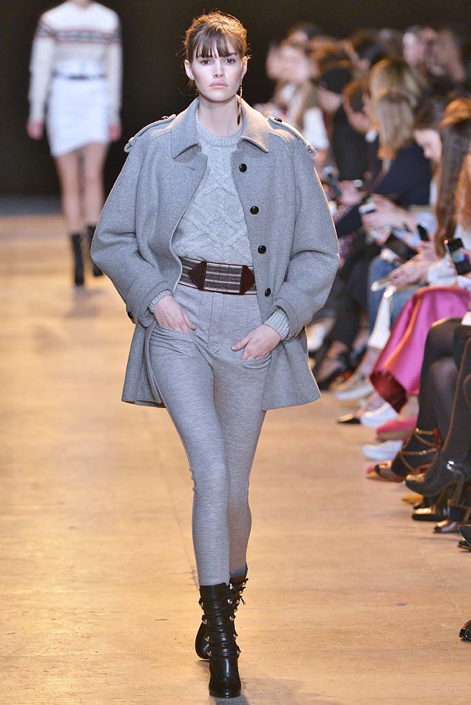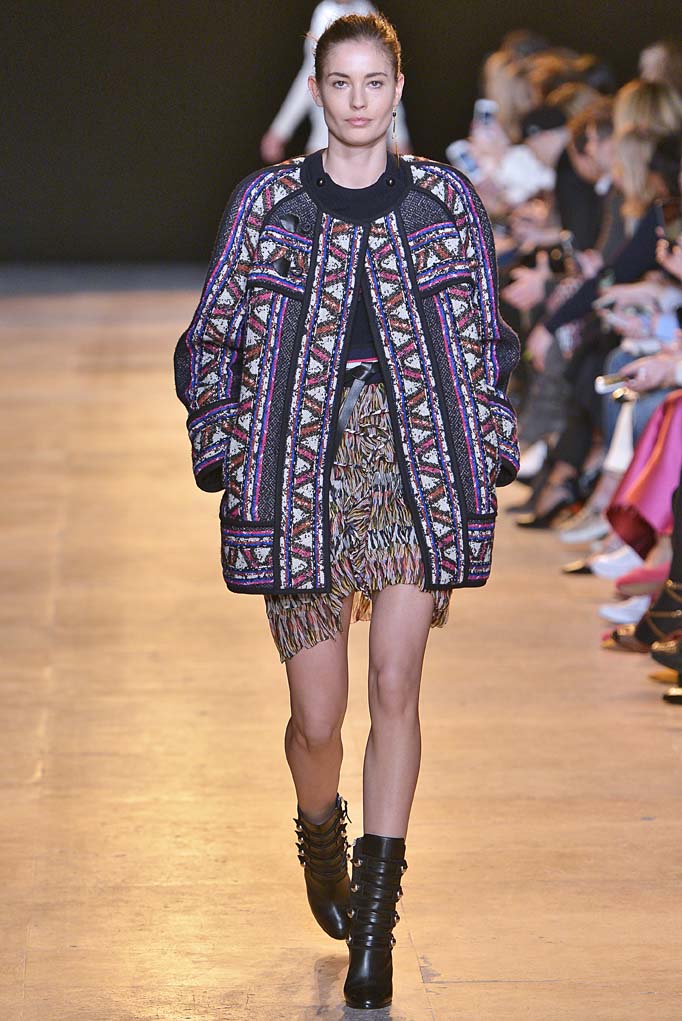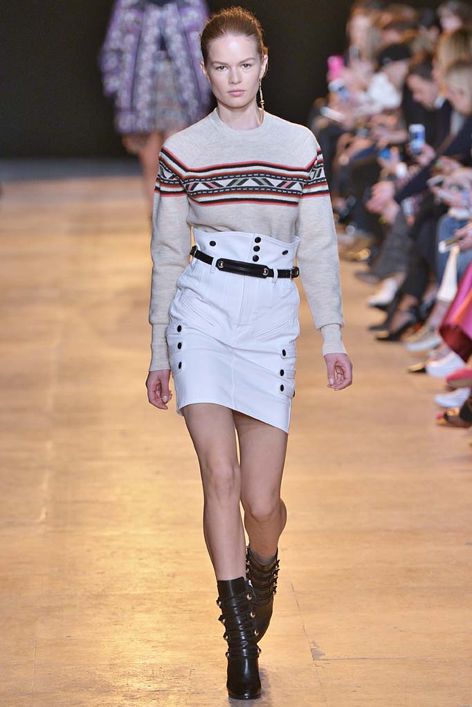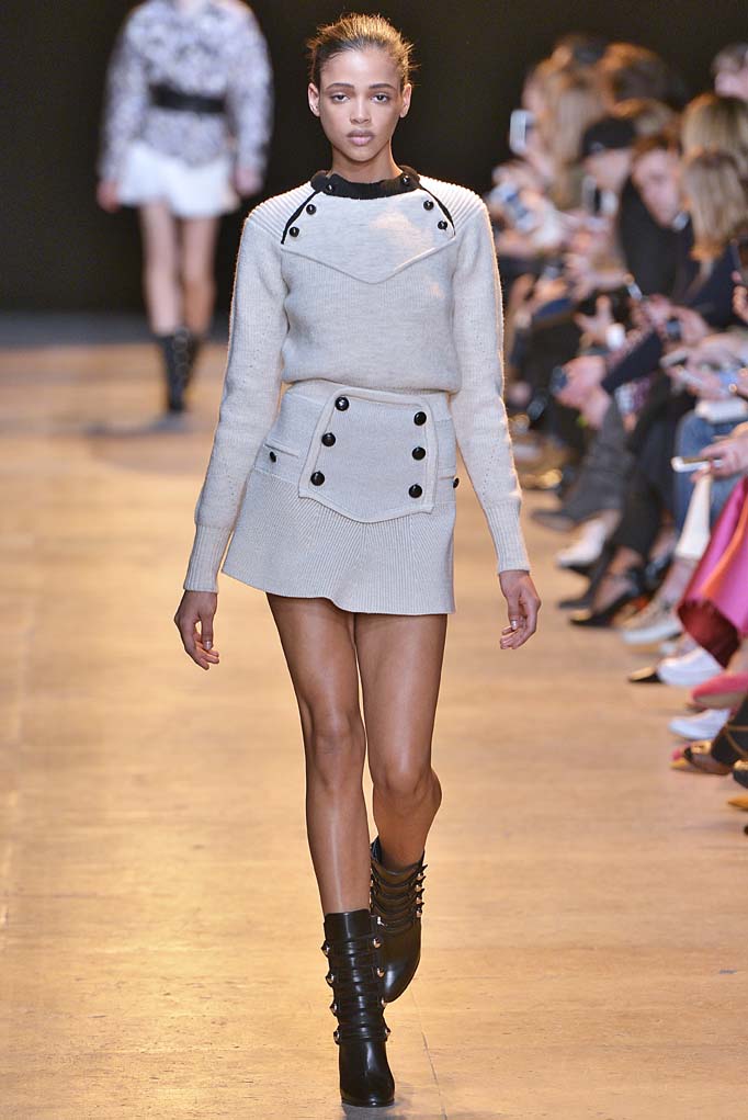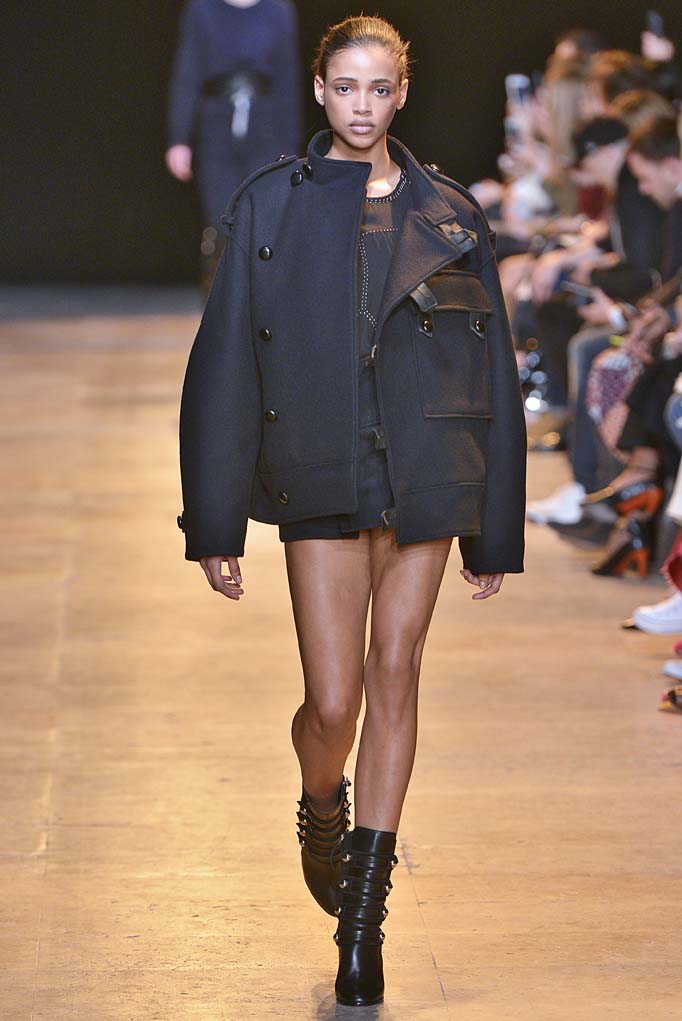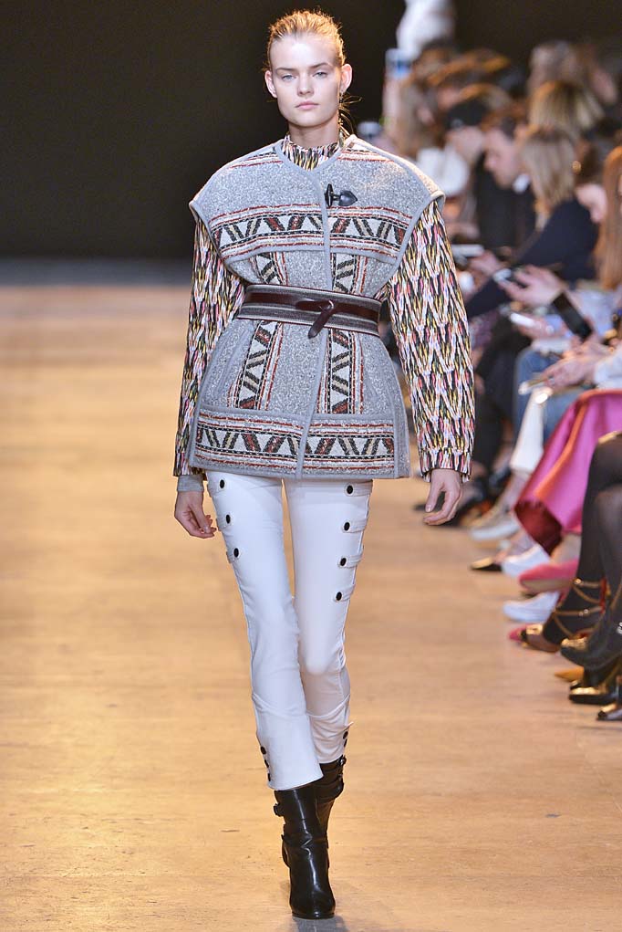 Each season, it seems Isabel Marant releases the latest uniform for it-girls around the globe. Her Fall collection was no exception. Haute items included white paperbag-waist pants with a button detail, and fisherman sweaters in white and red, featuring rounded shoulders. For those in the market for a prissy floral piece, there were plenty of options, many of which came in the form of a chiffon skirt. Also of note: Southwestern-inspired coats and vests which will obviously bode well at Coachella next year, while other oversized toppers in navy and black were a touch more subdued. The final few pieces, in black or white, featured quite a few flouncy ruffles and a sheer detail. They were a nice departure from the rest of the lineup. They toed the line between youthful charm and grown-up glamour, and had just the right amount of sex appeal. Marant proved, yet again, that she’s able to cater to exactly what her customer (doesn’t yet know she) wants.