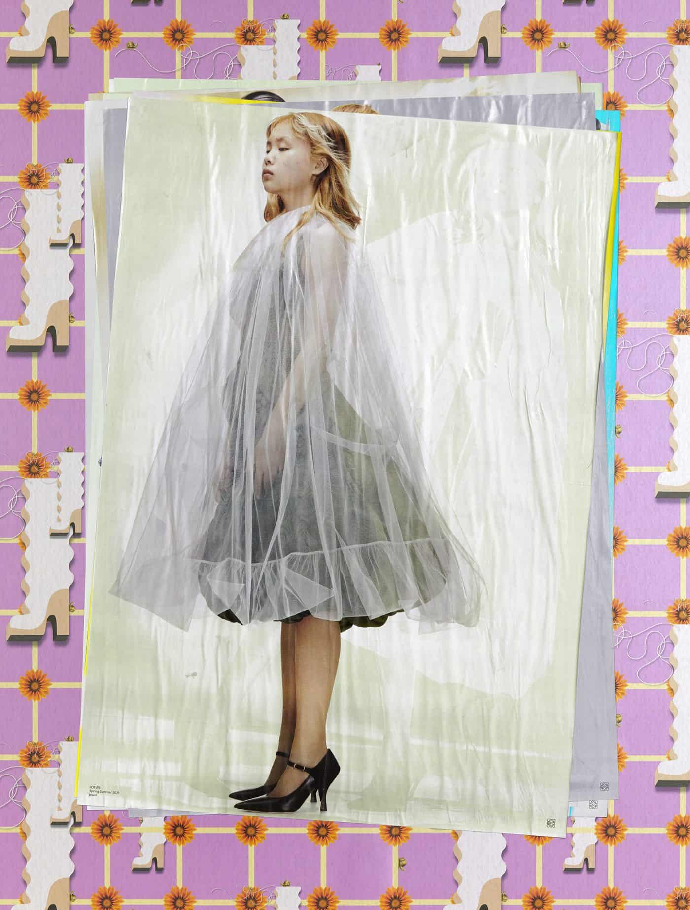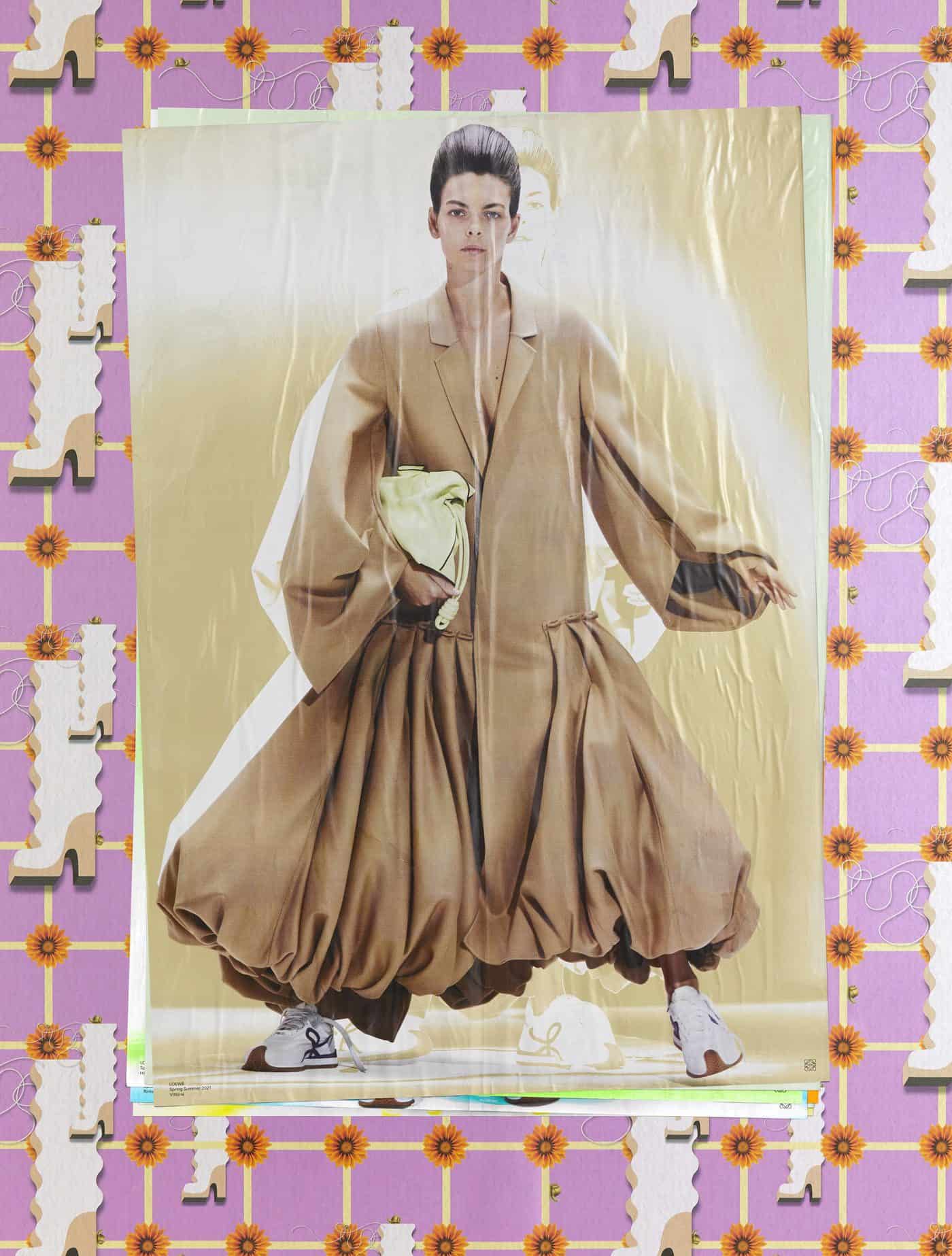 JW Anderson presented Spring Summer ’21 as a, quote-unquote, “Show-on-the-Wall”. Allow us to explain: the LOEWE womenswear collection was delivered in three-meter boxes to the usual audience in their homes. Inside, ‘guests’ found sheet music for a choral work by Thomas Tallis, a letter from Anderson, a paper scroll of models wearing the new collection, a roll of wallpaper designed by Turner Prize-winning British artist, Anthea Hamilton, a paintbrush, scissors, a canvas tool bag, and a ceramic. With their senses piqued, the idea was that folks could then assemble the content on a wall themselves. As if the presentation format wasn’t impressive enough; then there were the actual clothes. Balloon-leg trousers, oversized broderie anglaise dresses with XL collars, ruched bubble hems overlaid with tulle. There’s an old adage, “Go big or go home.” With this impressive collection reveal concept, Anderson didn’t have to chose. He brought his giant, playful proportions right into your home.