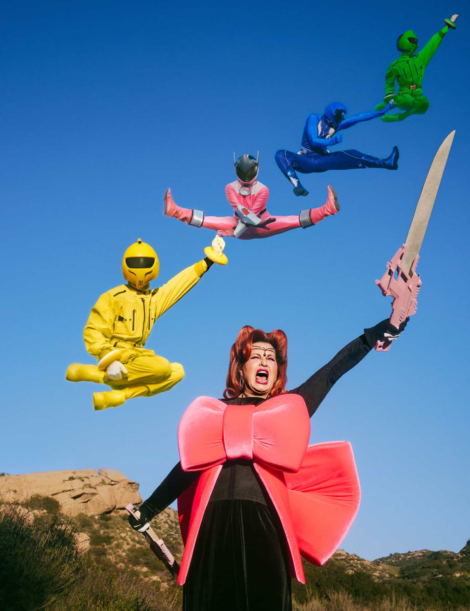 Today’s viral content moment comes courtesy of the inimitable Jennifer Coolidge. The White Lotus actress is gracing the final cover of W Magazine’s The Directors Issue, in a stylized shoot by Academy Award nominees Daniel Kwan and Daniel Scheinert that references tokusatsu, a genre of campy Japanese cinema. The theme, Coolidge vs. Haute Squad 5: Attack on Neo Runway City – Jennifer Reborn, was shot in Corriganville Park and features costumes by Shirley Kurata and imagery by Lenne Chai. Inside the mag, Coolidge tells writer Alex Hawgood that taking part in the shoot was one of her career highs. “The film business tires people out. But I swear to god, I felt like I was getting together with little kids. They were like these sort of child prodigies who are super, super smart and just super creative. I’ve never been asked to do a shoot like this: I have weapons, take down small cities, pick up cars and throw them. I don’t know if I will ever be this surprised again. It was one of the best things I have ever been involved in.” Take a peek below, and grab the copy on newsstands from March 14: