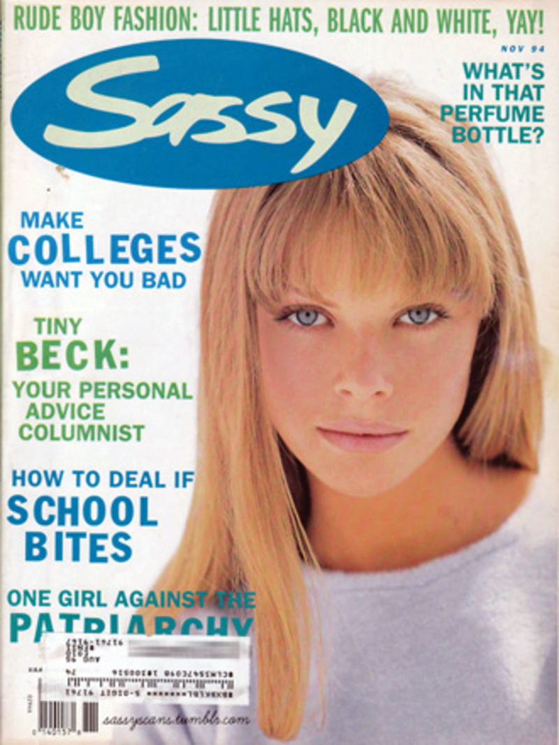 She doesn’t think I’m the coolest, but I feel really lucky that I somehow managed to be the mom who gets to sit in the school cafeteria and have breakfast with all these teenage girls every day. They tell me what’s going on in their lives, and it’s kind of amazing—I don’t know how I got granted that amazing access, but they welcome me. Back when I was doing Sassy, people would always say to me, “Oh, you would feel differently if you were the parent of a teenage daughter—you wouldn’t want to be seeing them getting this information.” It’s easy to become a hypocrite, but the truth is, I would be thrilled for my daughter to be reading something that had all the honest information Sassy had in it. By the way, I went to the dentist for something else but I ended up having my teeth whitened, which means I can’t drink coffee for three days. I feel lousy, and my brain is not functioning, so if we don’t get good stuff out of this, just promise me that we can reconvene.