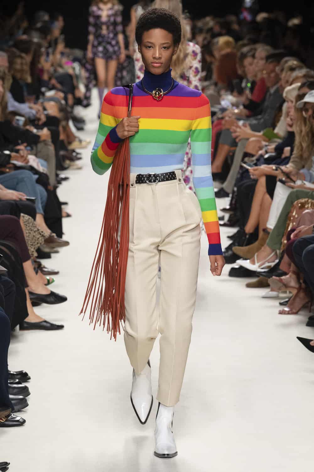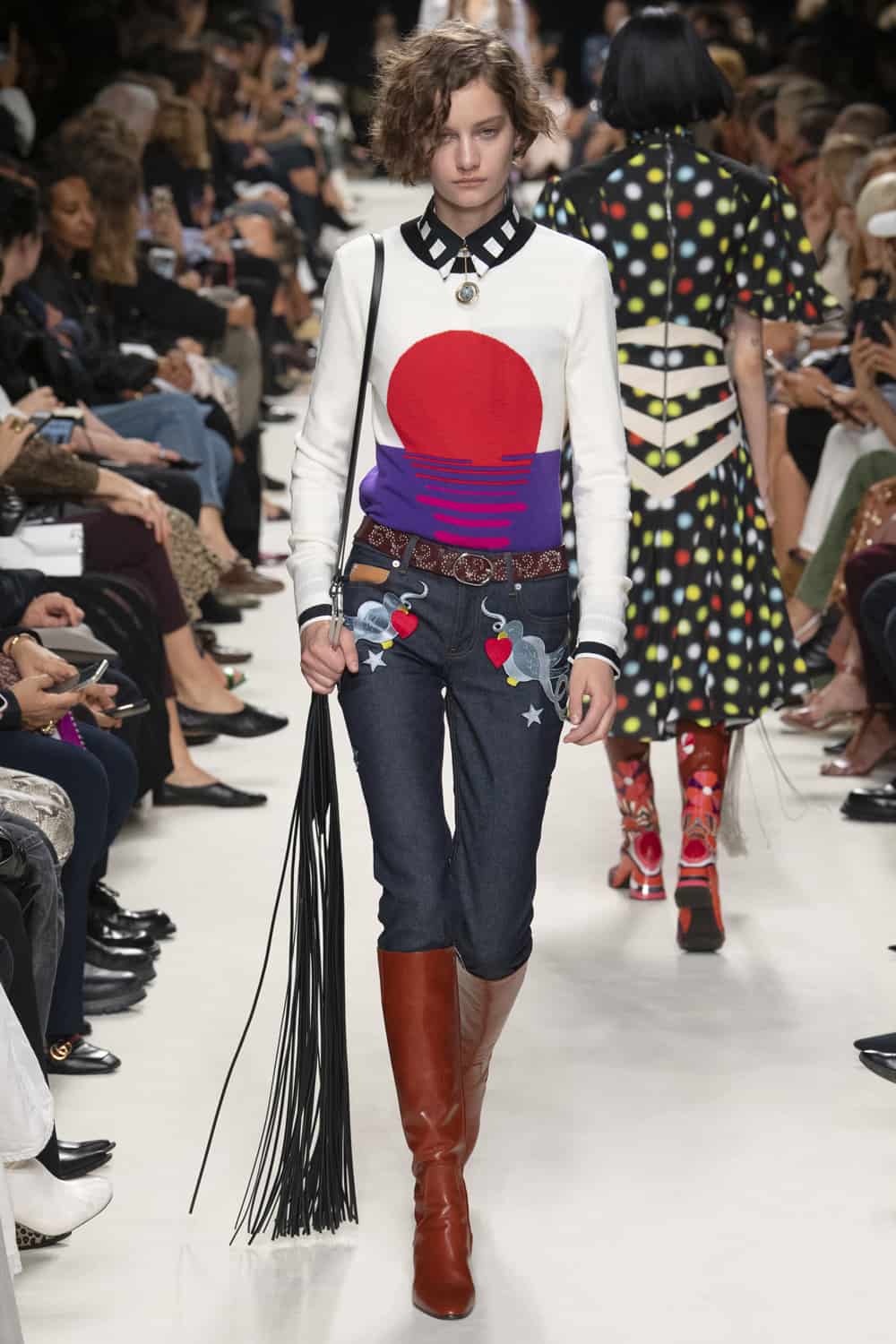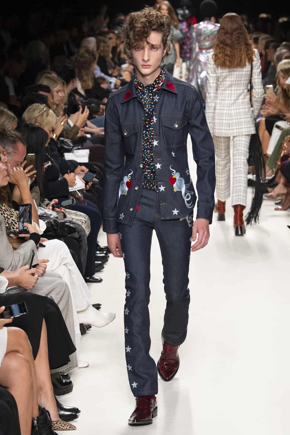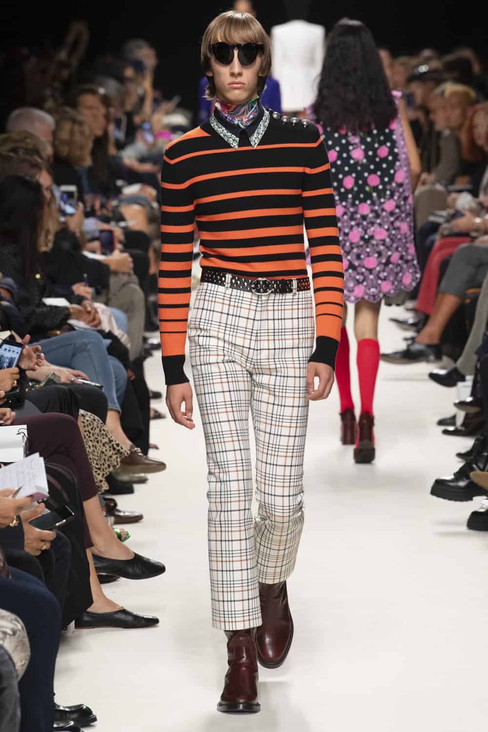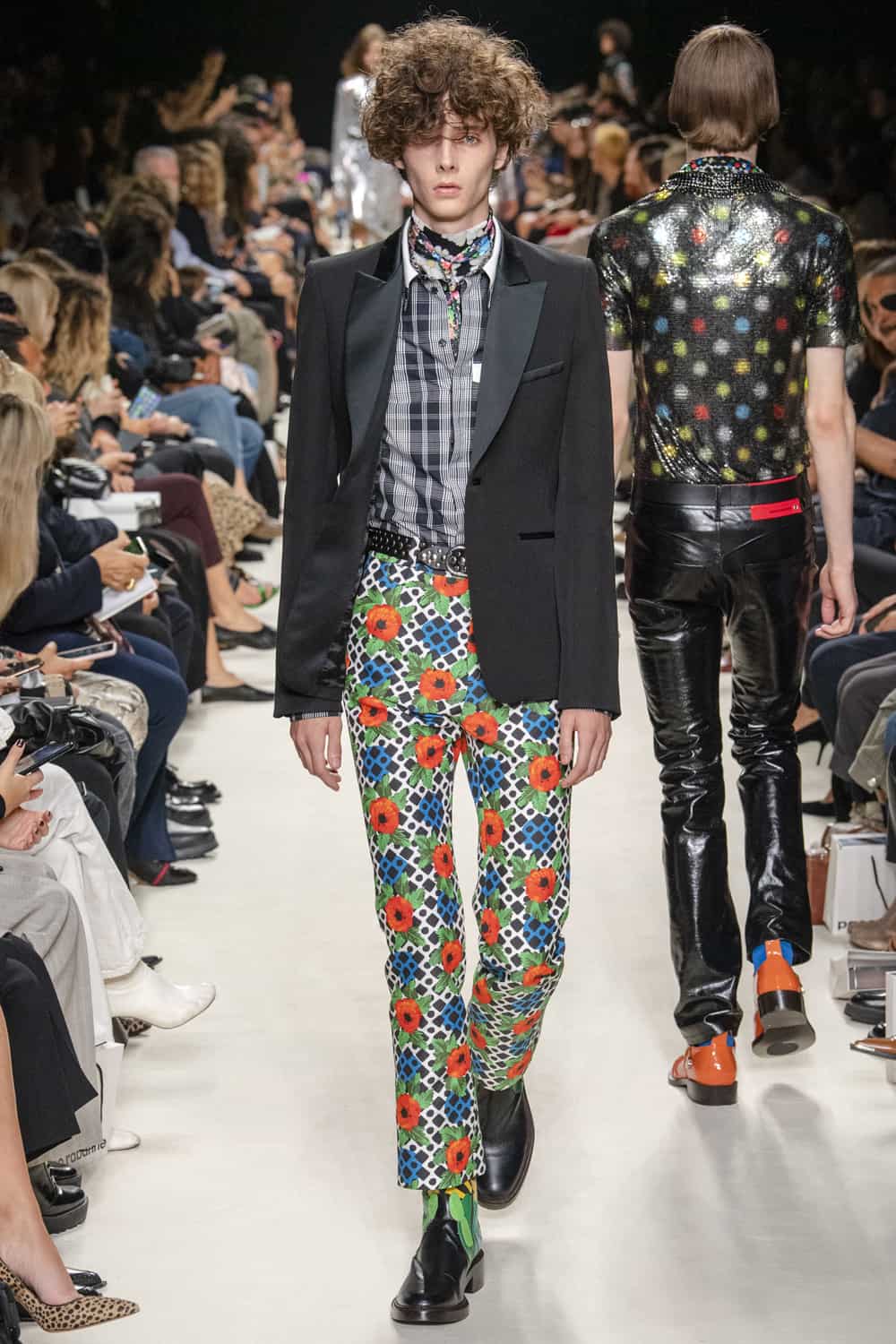 For the first time, Julien Dossena has presented both men’s and womenswear on Paco Rabanne’s runway. It was an incredibly joyful collection, with bright colors, patterns, and cartoon motifs adorning ’60s and ’70s-inspired silhouettes. The show notes name-check Pop art, but there is much more of a flower-child vibe happening, juxtaposed by slick tailoring.