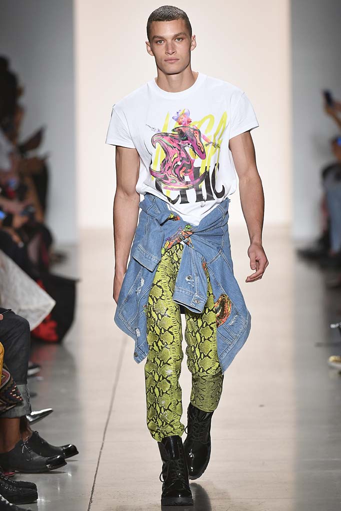 To toast his 20th anniversary, Scott reminisced and riffed on some of his best ideas—sexed-up sportswear, psychedelia, cartoons out-there embellishments, and as always, influences from the street. They were as fresh and fun as ever, especially on this group of killer models. “I’m celebrating my anniversary and wanted to touch back on some memorable moments of my past by creating this capsule collection,” says Scott, who now has over 39 collections in his oeuvre. Backstage guests enjoyed colorful cocktails by VDKA 6100 after the show.