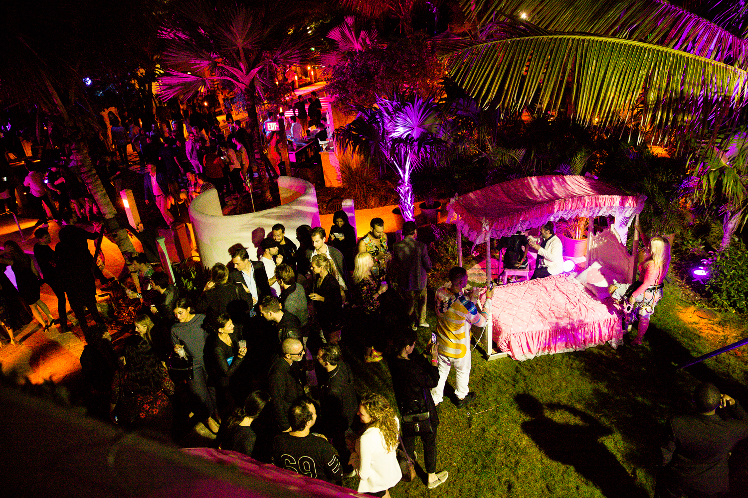 “Tonight I’m wearing my Barbie dream tuxedo. I wanted to be Barbie’s dream date,” Jeremy Scott said last night, describing the glittery pink tux he was donning. The reason for his sparkly getup? A dinner at The Seagrape, located in the Thompson hotel in Miami to celebrate his first tome, Jeremy, a coffee table book with Rizzoli that chronicles the designer’s career. Filled with cheeky photos of Scott’s imaginative designs, the book also features some of his celeb fans, many of which were present last night to celebrate. Decked out in Moschino threads were Miley Cyrus, Carlyne Cerf de Dudzeele, Paris and Nicky Hilton, and China Chow.