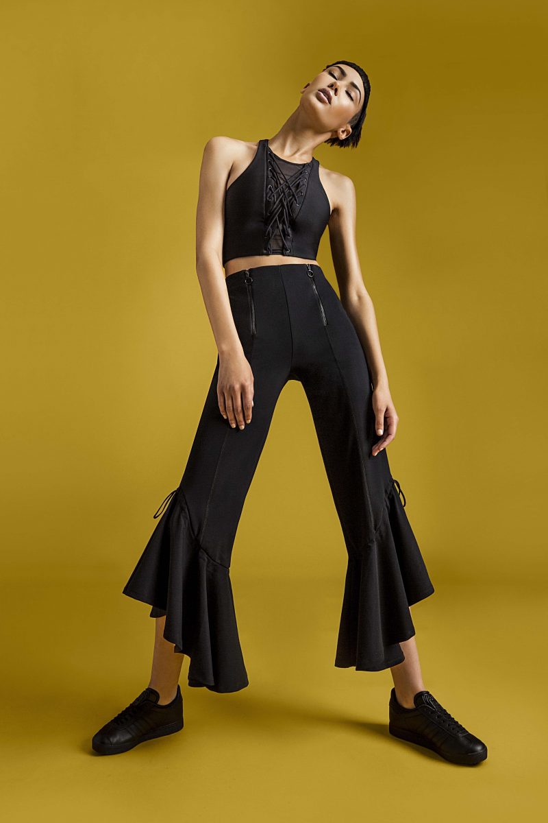 Jonathan Simkhai has announced his second collaboration with luxury active apparel company Carbon38. The 22-piece collection was ironically inspired by the corset, which is not known for being a freeing or modern garment, but in Simkhai’s hands and Carbon38’s materials it takes on a whole new life. Corsetry lacing appears on workout leggings, tank tops, crop-tops, and more. Plus, the collection features more unexpected design touches like flared crop pants and flounced sleeves.