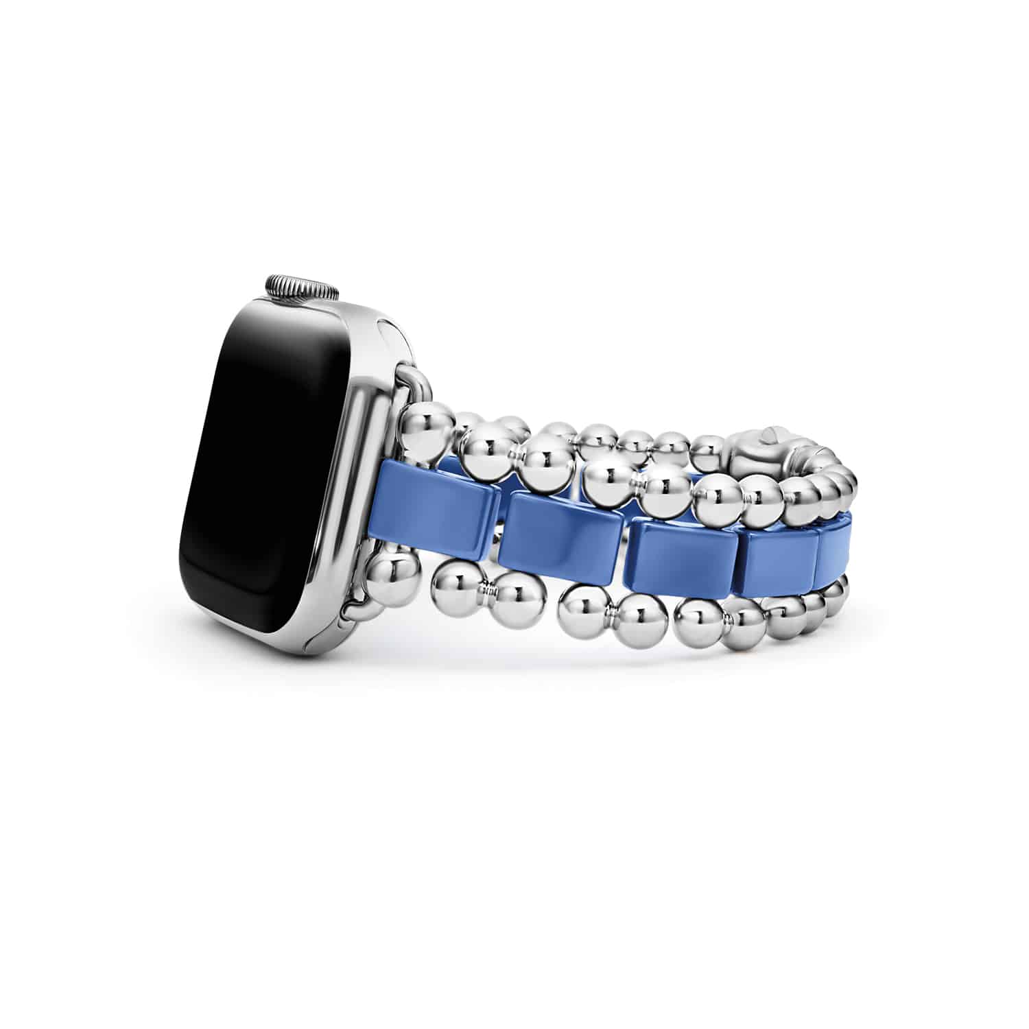 Our Smart Caviar bracelet for the Apple Watch continues to be one of our most popular collections. The bracelets elevate the sporty look of the watch to a piece of fine jewelry. We have so many options now, and this season we introduced our newest ceramic color, Ultramarine blue.