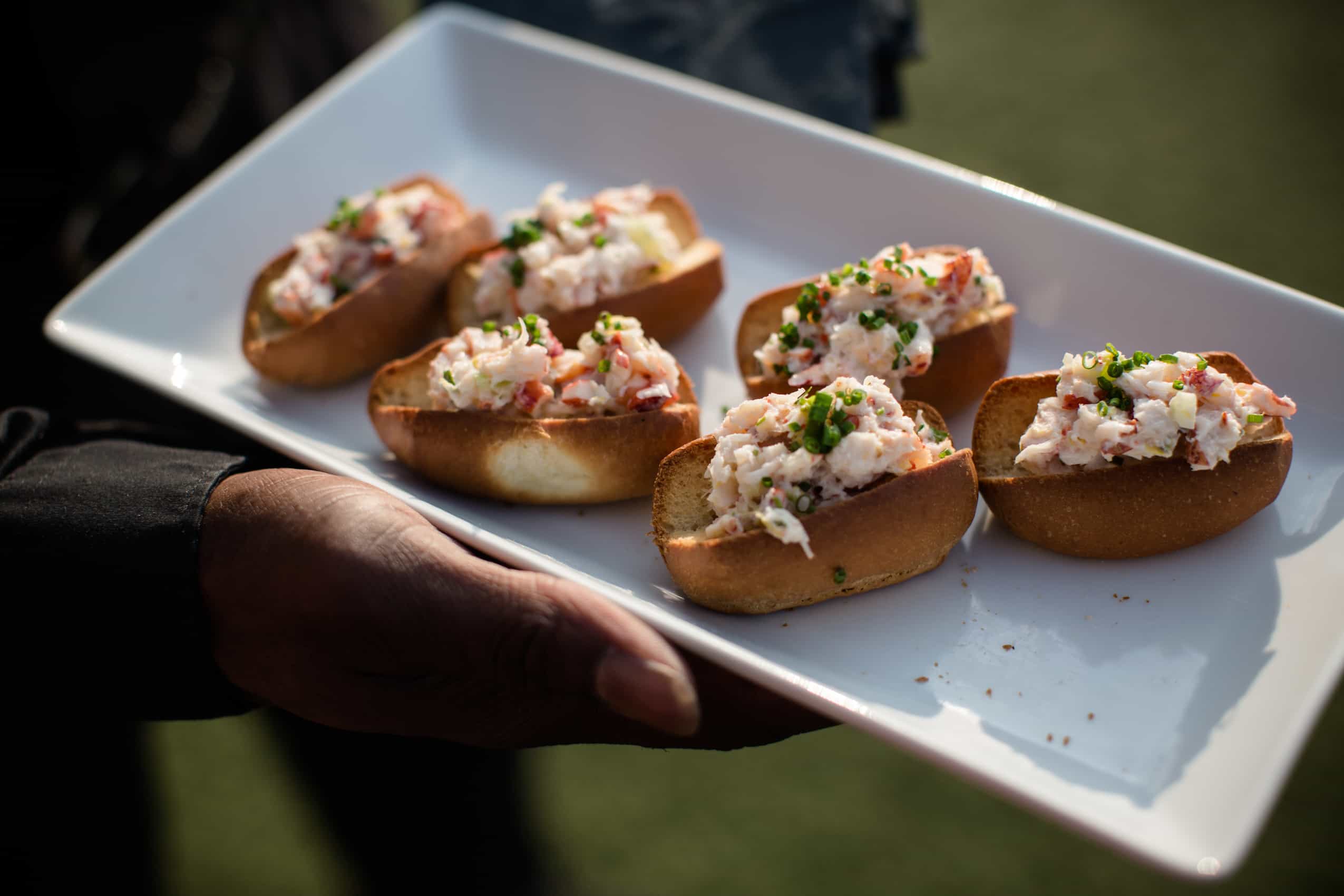 The evening began with cocktails, featuring a quartet of fruity popsicles in champagne, and delicious passed hors d’oeuvres. “I’m not sure what I just ate, but it was amazing” said one guest as she contemplated the deep-fried something in her mouth. It was a chicken nugget and it really was delicious, as were the mini lobster rolls, both very much in keeping with the relaxed backyard ambiance of the event.