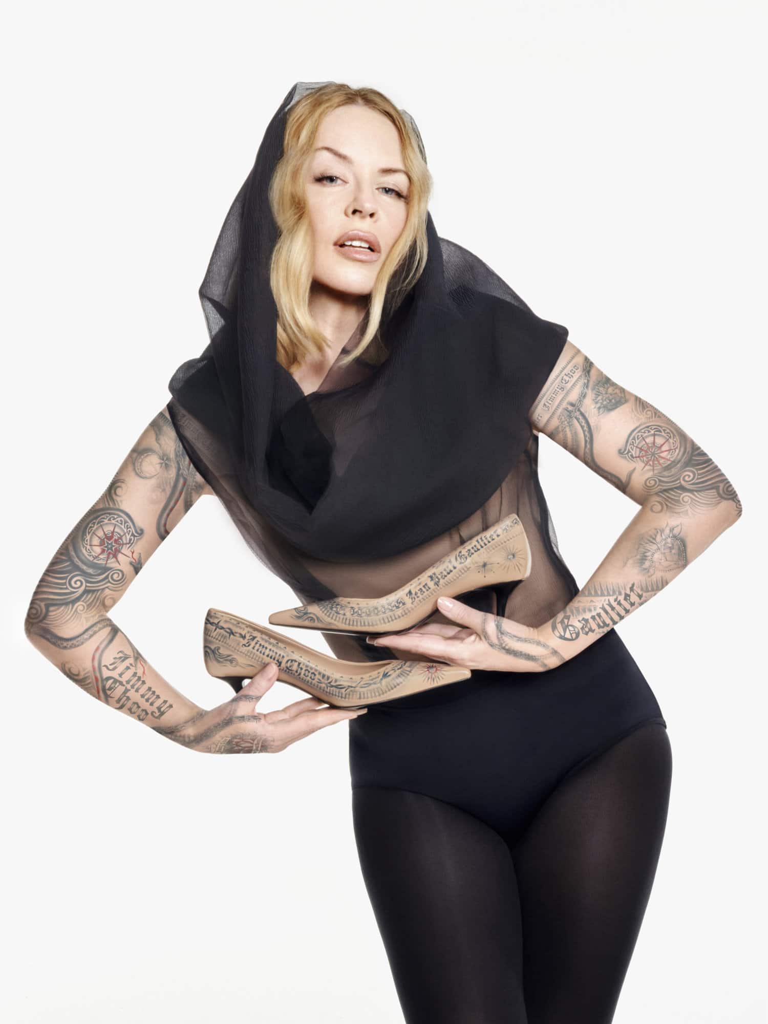 Talk about a legendary trinity. The Jimmy Choo / Jean Paul Gautlier collaboration dropped today, mere weeks after a surprise announcement, with a campaign starring Kylie Minogue to really make a splash. Minogue, who was styled by Katie Grand with creative direction by Sandra Choi and Florence Tetier in the imagery and accompanying videos, was both brands’ only choice. After all, she’s been wearing custom JPG on stage for years and Choi has ensured that the singer has had no shortage of specially-created Choos gracing her feet either. For the shoot, the new collaboration is highlighted alongside Grand’s curation of archival Jean Paul Gaultier numbers. “Fashion for me has always been about collaboration with like-minded creatives, and pure personal self-expression,” the Aussie chart-topper said in a release. “Jean Paul Gaultier and Jimmy Choo have both been part of my fashion journey, and I’m thrilled to work with both of them to celebrate this exceptional collection. It’s our collective histories fusing, to create something fresh and new.” As for the collection, it marries brand codes and energies across pumps, mules, and boots. Think: corsetry-inspired details, trompe l’oeil print, hand-drawn tattoo-style etchings, punk elements, and a nod to London and Paris.