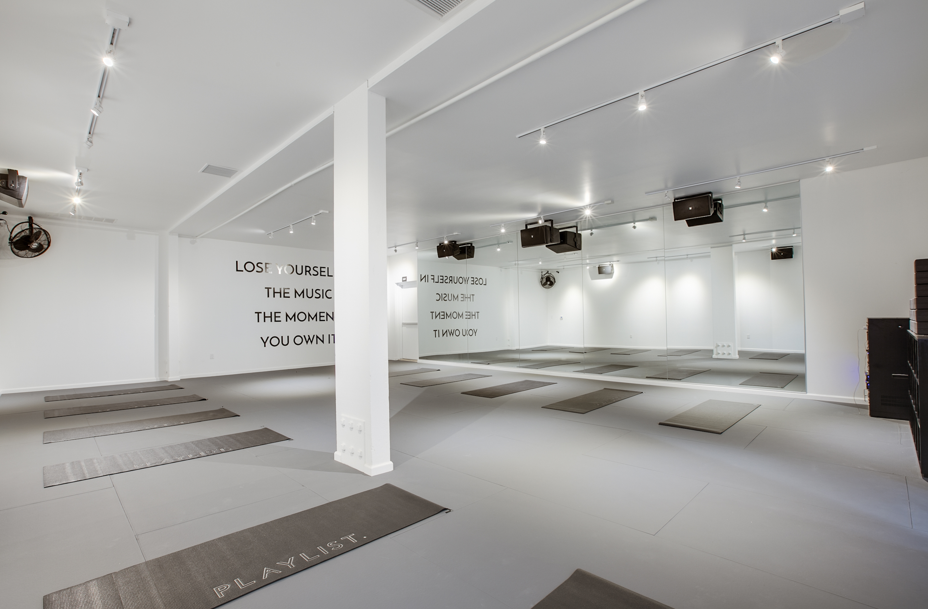 Vinyasa yoga classes are choreographed to a playlist by L.A. DJ Nikki Pennie. You can reserve a spot for your mat and stash your clothes in lockers named after pop-stars like Britney, Kanye, and Bey.
