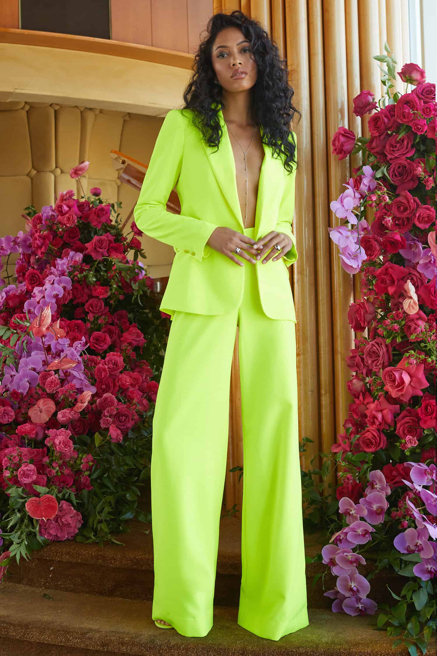 A romantic and electrifying Spring season! We never lose sight of our DNA. This collection is full of emotion and is quintessentially L’AGENCE. The iconic Boom Boom Room complements the collection perfectly, and we couldn’t be more excited. Electrifying pop colors, romantic shades of neutrals, fun denim fashion fits, chain details, ruching, country club cashmere, and structured feminine suiting have our woman looking beautiful and feeling confident.