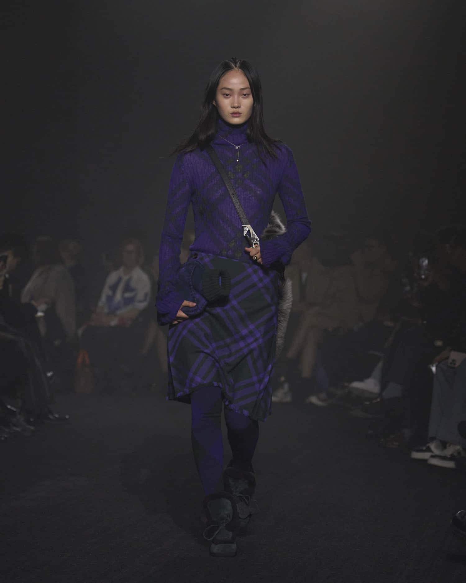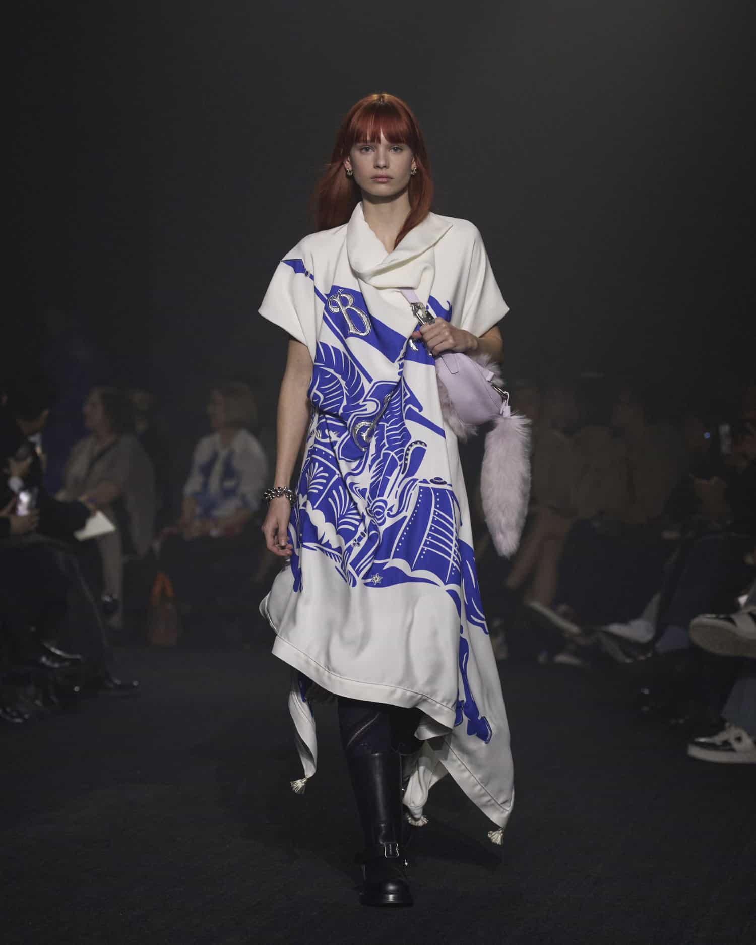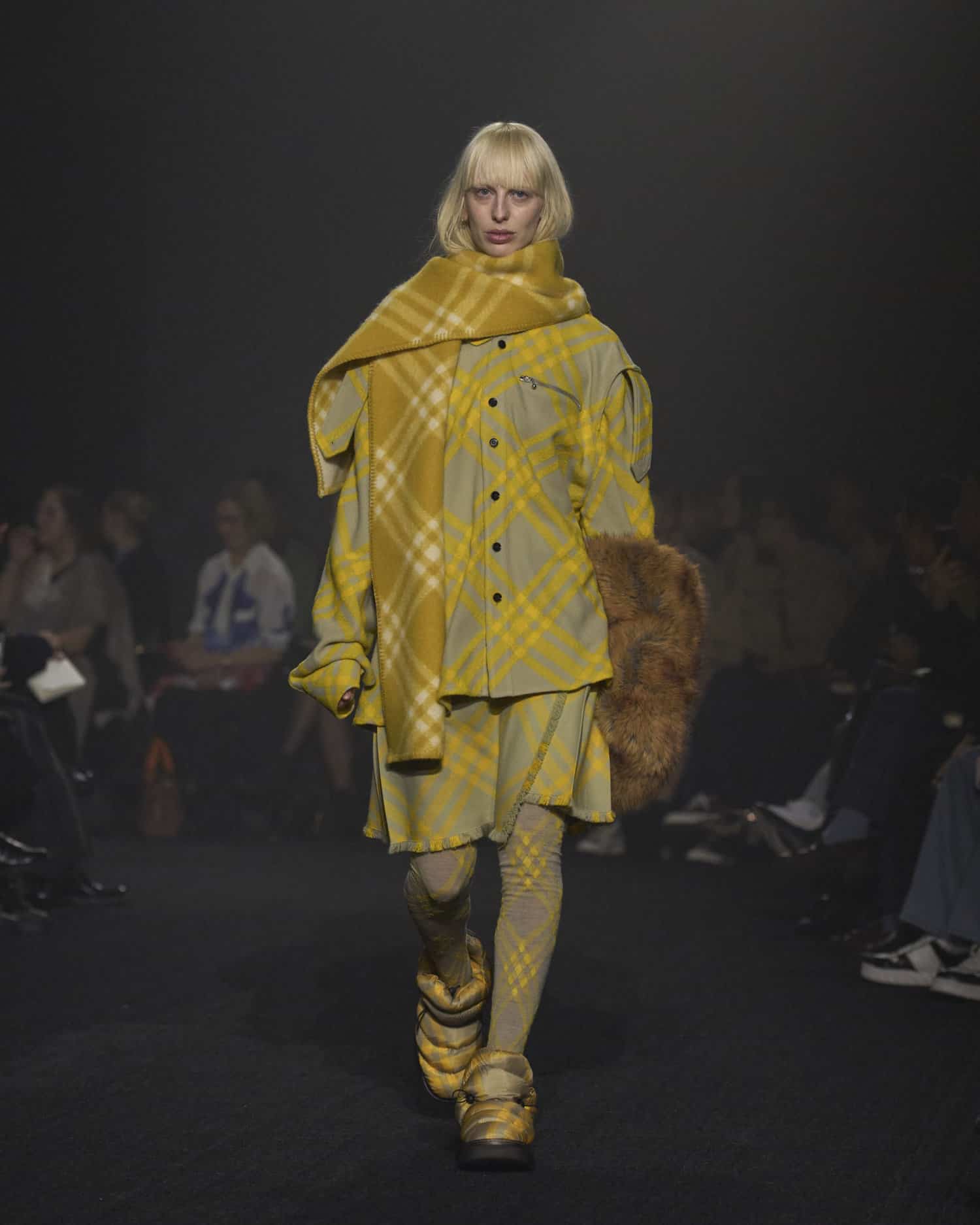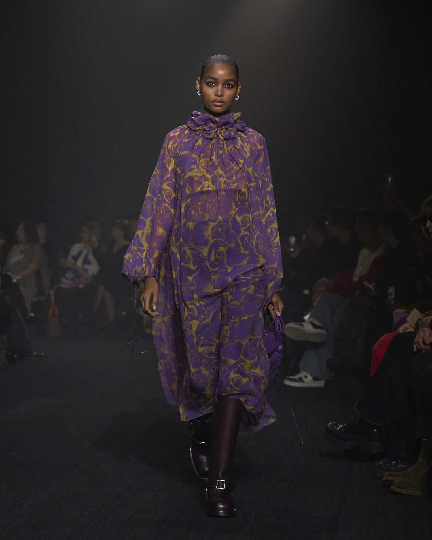 All eyes were on London over the weekend, as the city’s mainstays like Simone Rocha, Erdem, and Christopher Kane presented their collections. Of course, the ticket of the season was access to Daniel Lee’s debut for Burberry, which took place last night in a cozy setting envisioned by the designer himself. Lee’s inaugural offering, which came on the heels of a refresh and rebrand with a new logo, leaned in heavily to riffs on the famous plaid, thoroughly British tartans, and knitwear such as blanket coats, chunky argyle sweaters, and quite literal references to Englishness in the form of rose prints. As for the accessories, Lee focused on more house staples such as equestrian boots and wellingtons, while also dialing up the fun factor thanks to fuzzy faux fur shoes and tactile bags such as saddle and satchel styles. Naturally, all eyes were on those co-ordinated hot water bottles too….does it get more British than that? Guests who showed up to watch included entertainment and fashion world heavyweights like Baz Luhrmann, Bianca Jagger, Carl Craig, Damon Albarn, Future, Georgia May Jagger, Honey Dijon, Jamie xx, Jason Statham, Jimmy Iovine, Jodie Comer, John Glacier, Juergen Teller, Jun Ji-hyun, Kano, Kunichi Nomura, campaign stars Liberty Ross and Vanessa Redgrave, Martine Rose, Naomi Campbell, Nubya Garcia, Obongjayar, Oliver Sim, Reece James, Rosie Huntington-Whiteley, Sasha Lane, Selma Blair, Shygirl, Skepta, Son Heung-min, Stormzy, and former Burberry creative director Christopher Bailey,