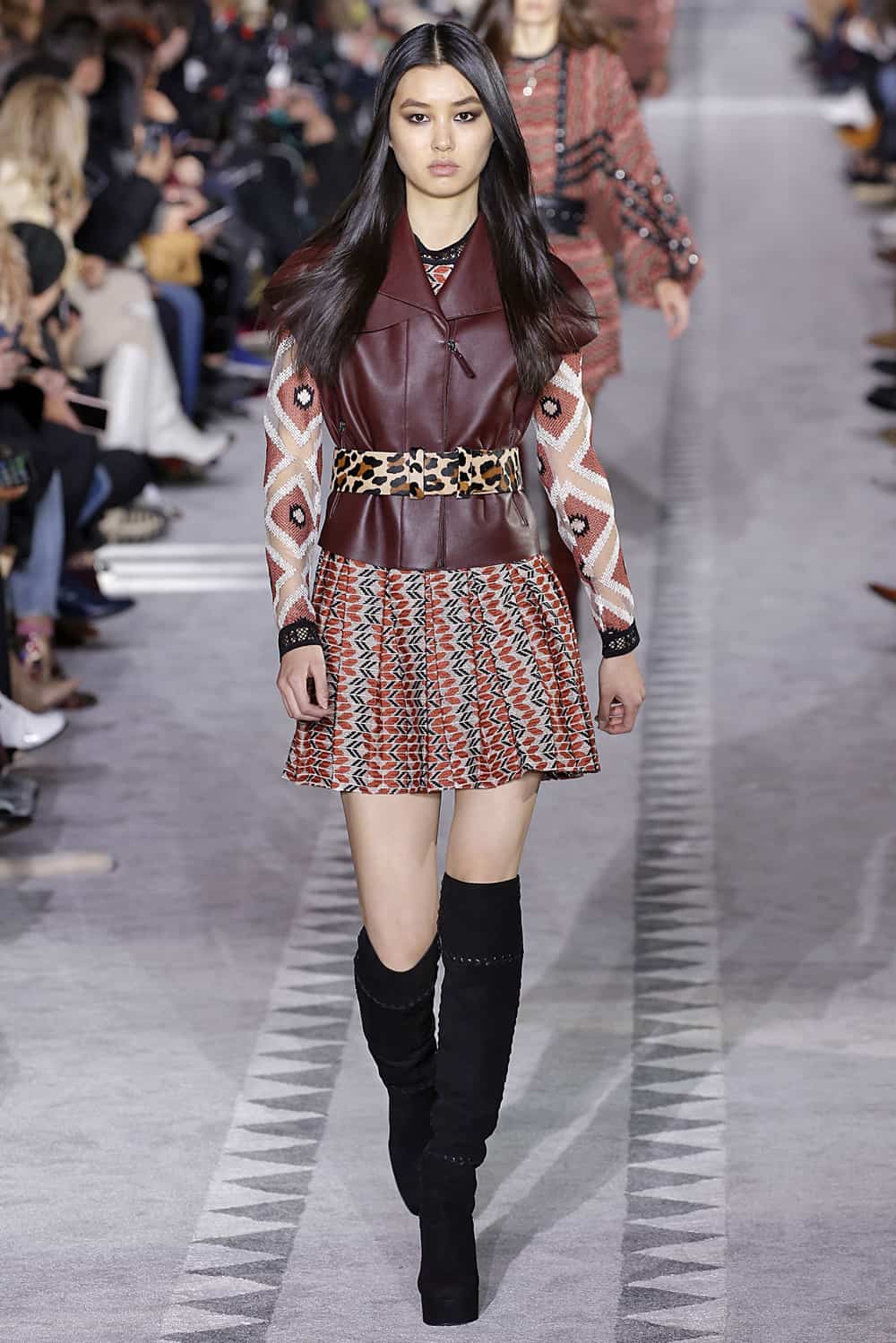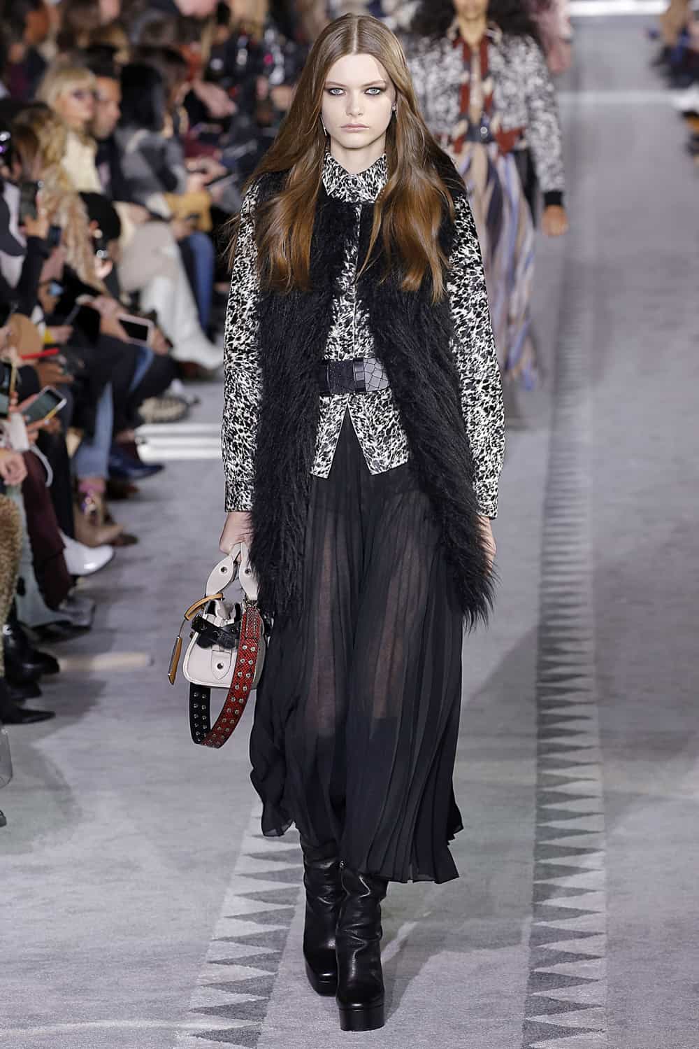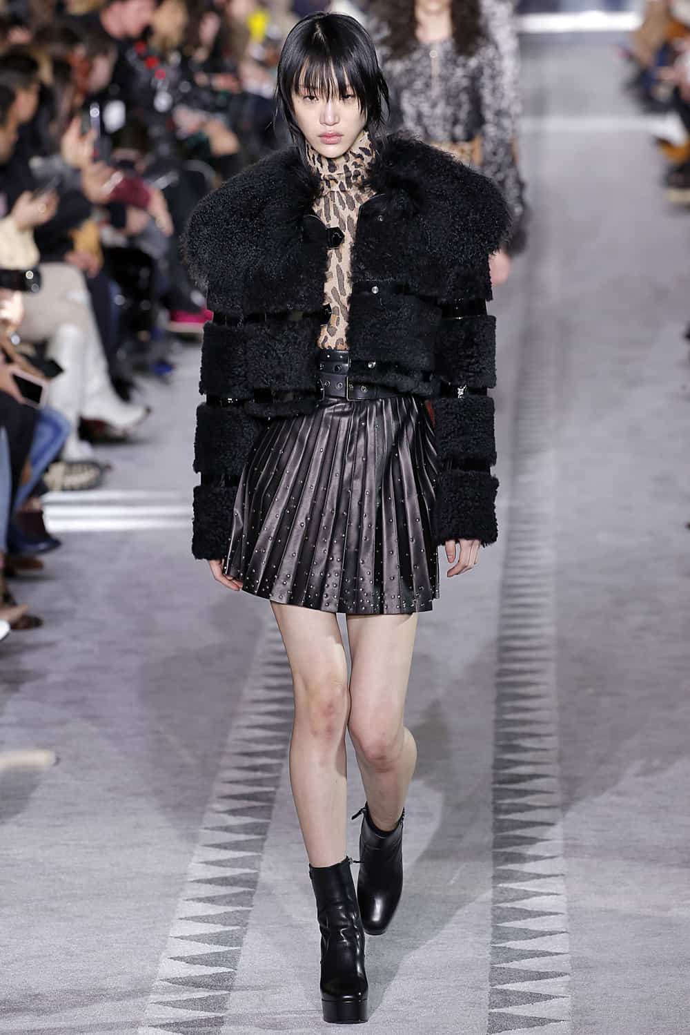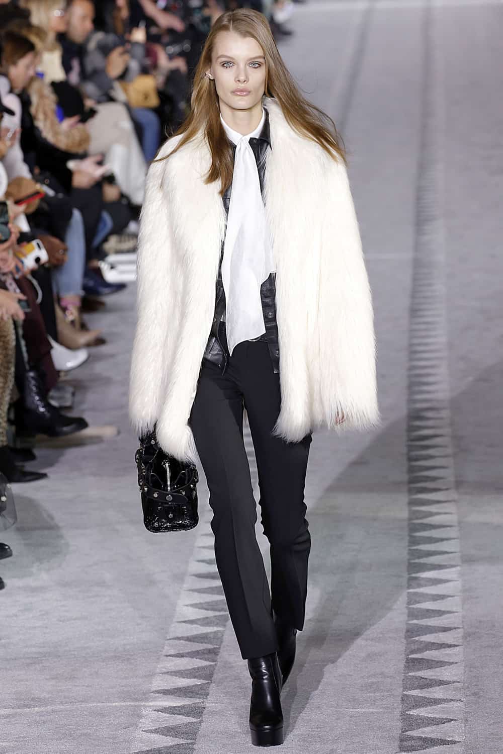 This season Delafontaine blended an eclectic mix of influences: rock and roll, urban women, and travel. Another descriptor she could have added was “composure.” For all its inspirations, textures (fur, leather, lace), and personality (short skirts, pussy bow blouses, platform boots) the season is for the woman who is always put together.