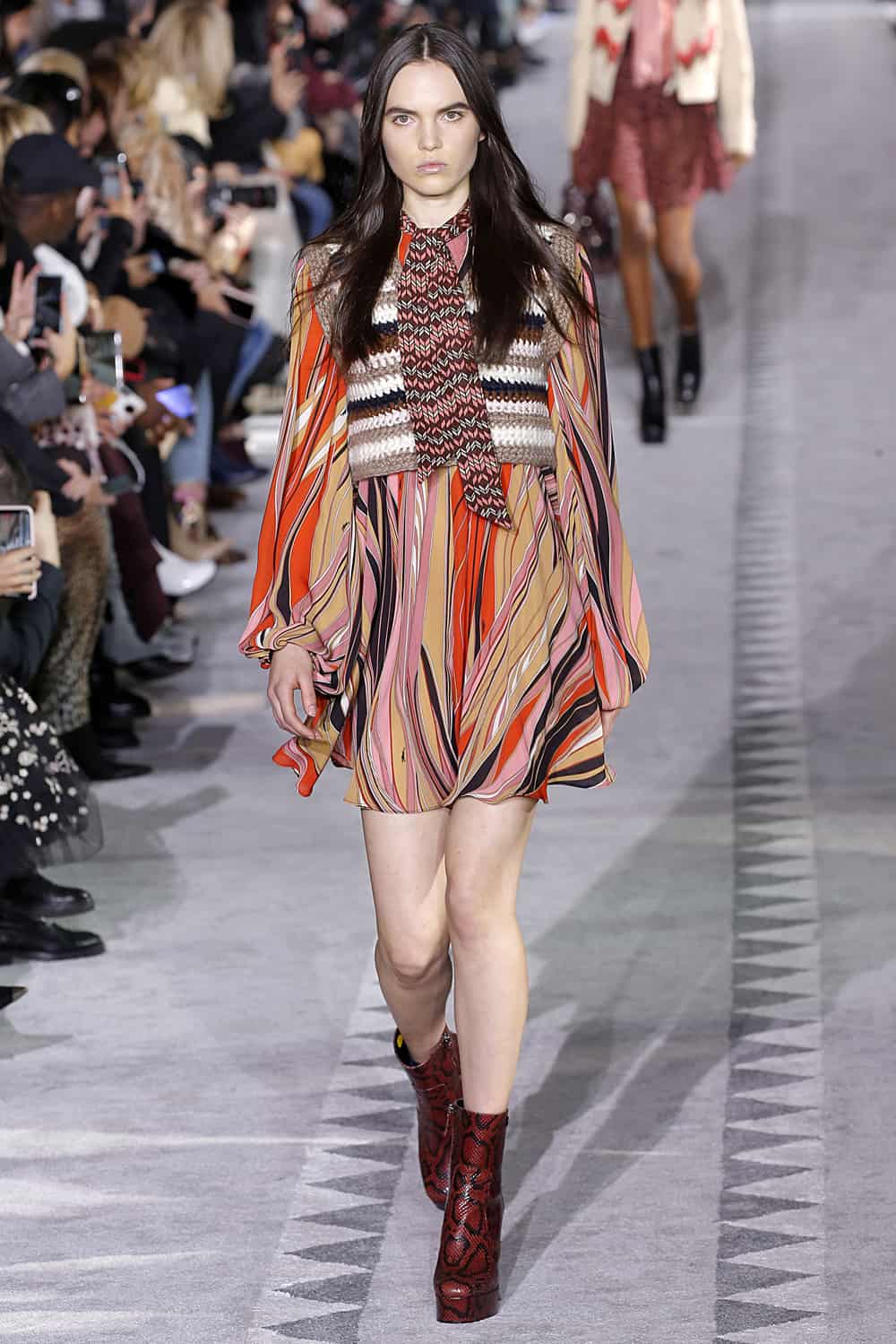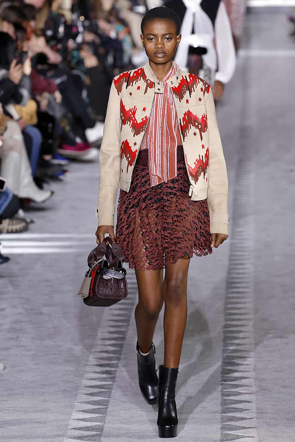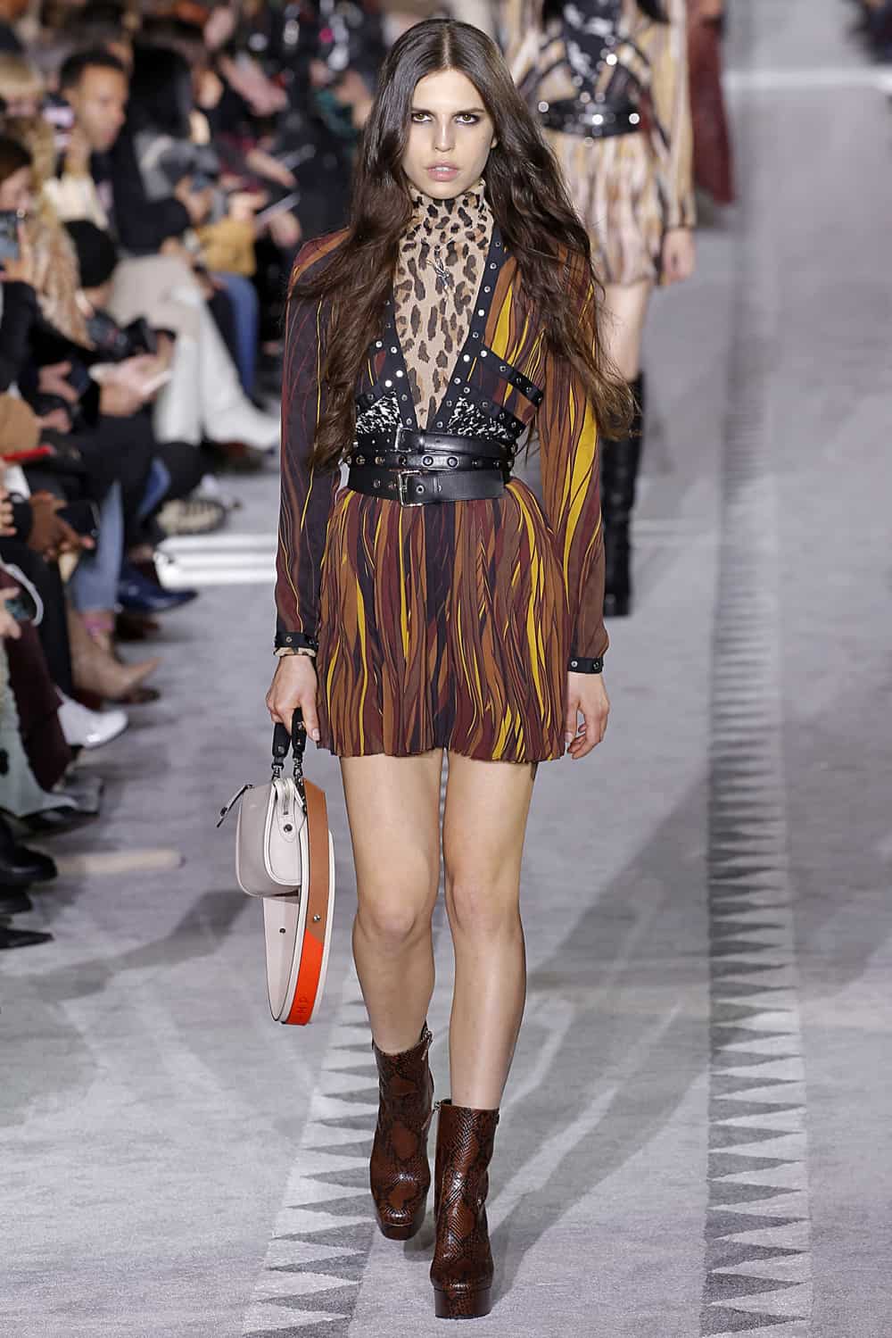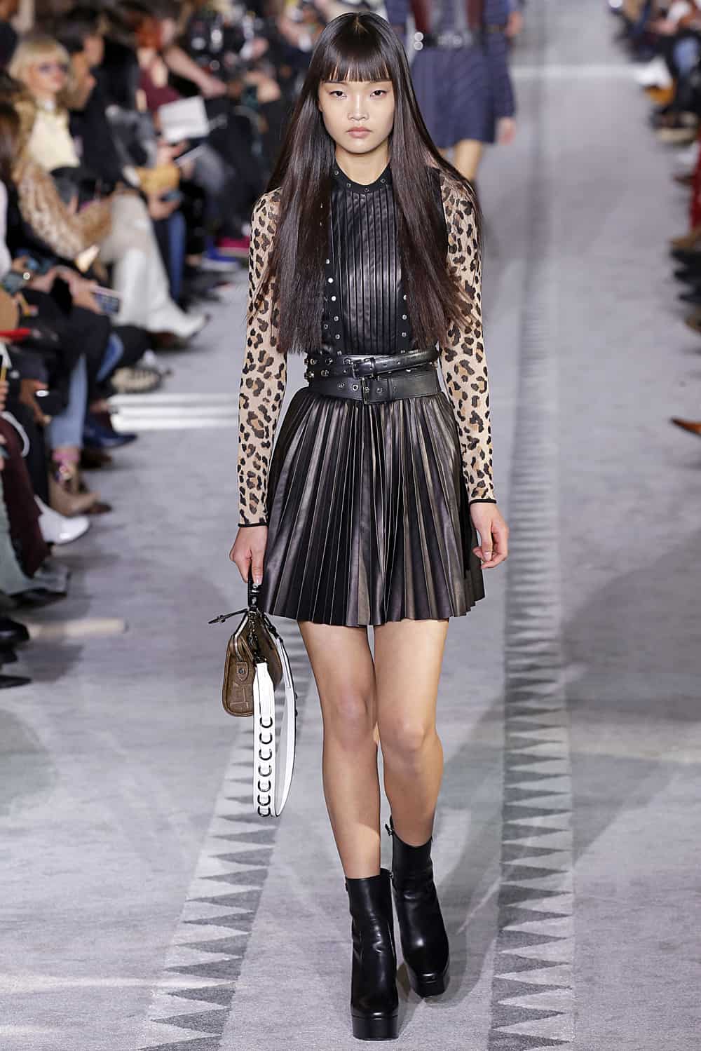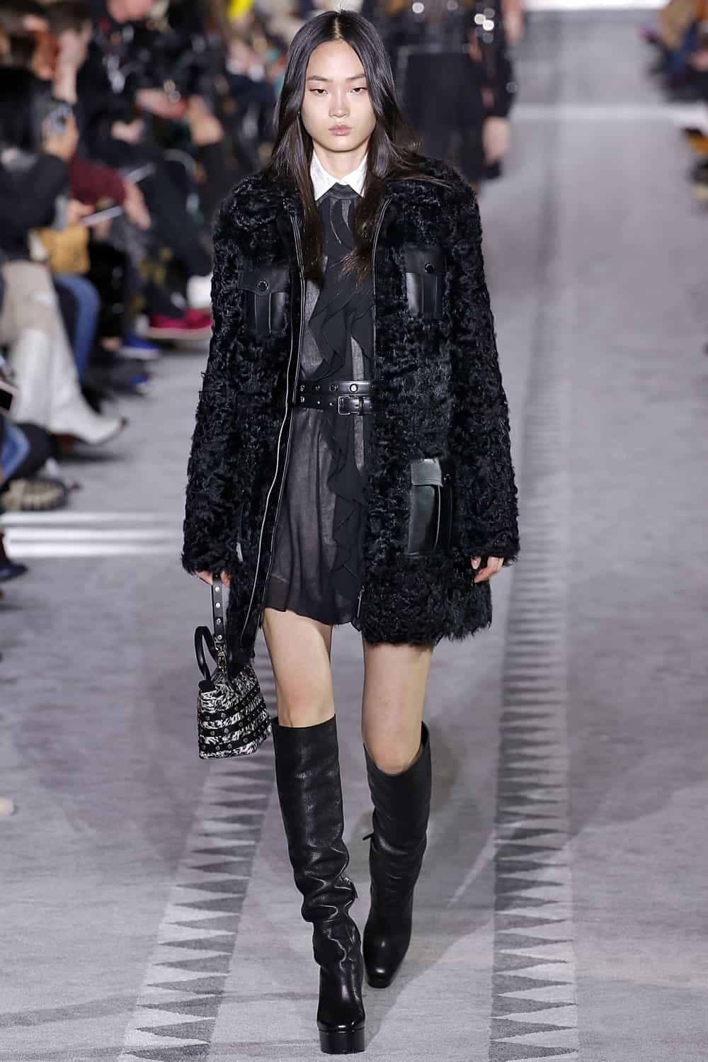 This season Delafontaine blended an eclectic mix of influences: rock and roll, urban women, and travel. Another descriptor she could have added was “composure.” For all its inspirations, textures (fur, leather, lace), and personality (short skirts, pussy bow blouses, platform boots) the season is for the woman who is always put together.