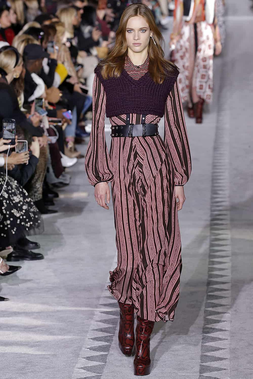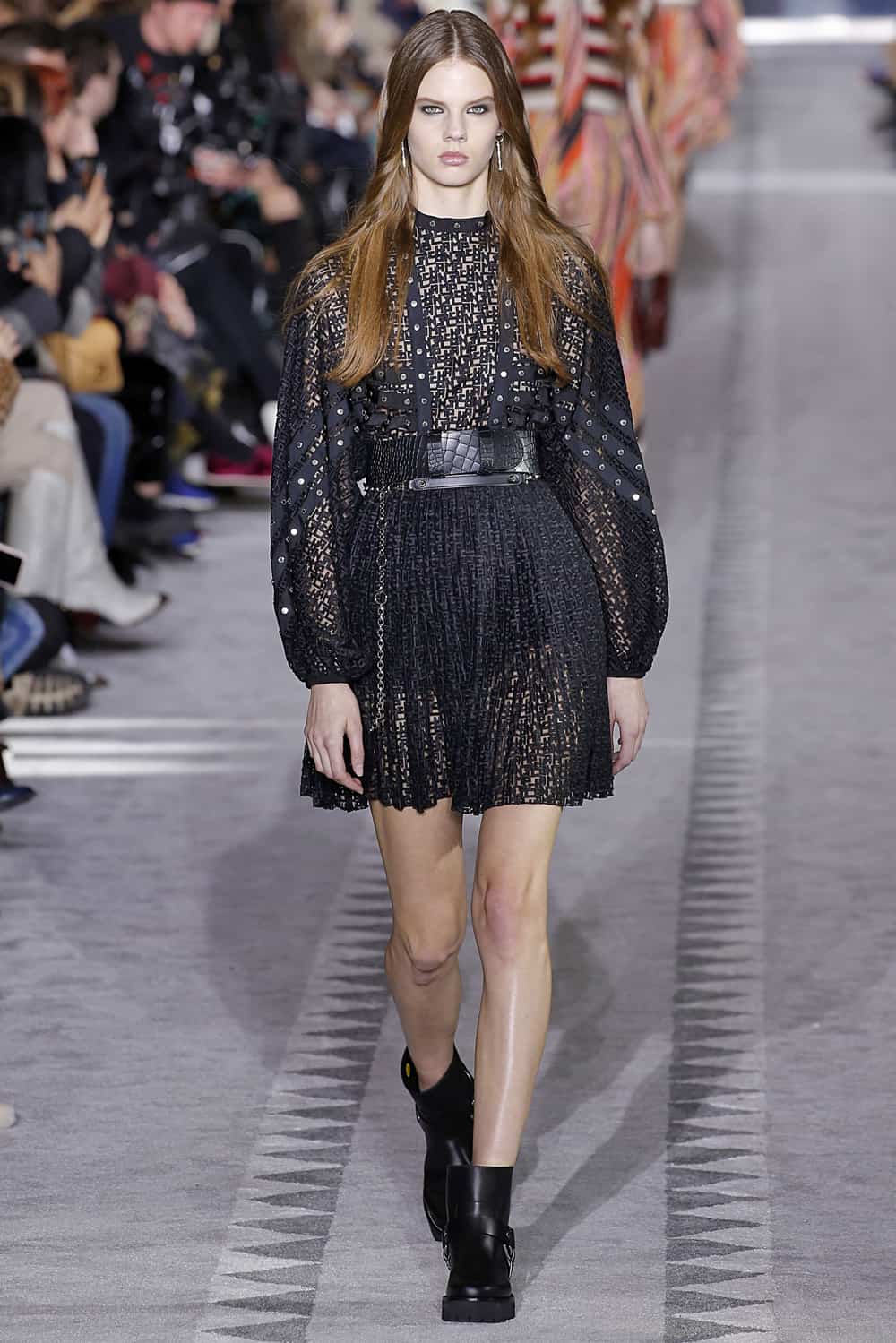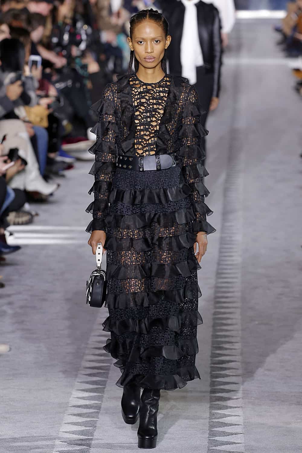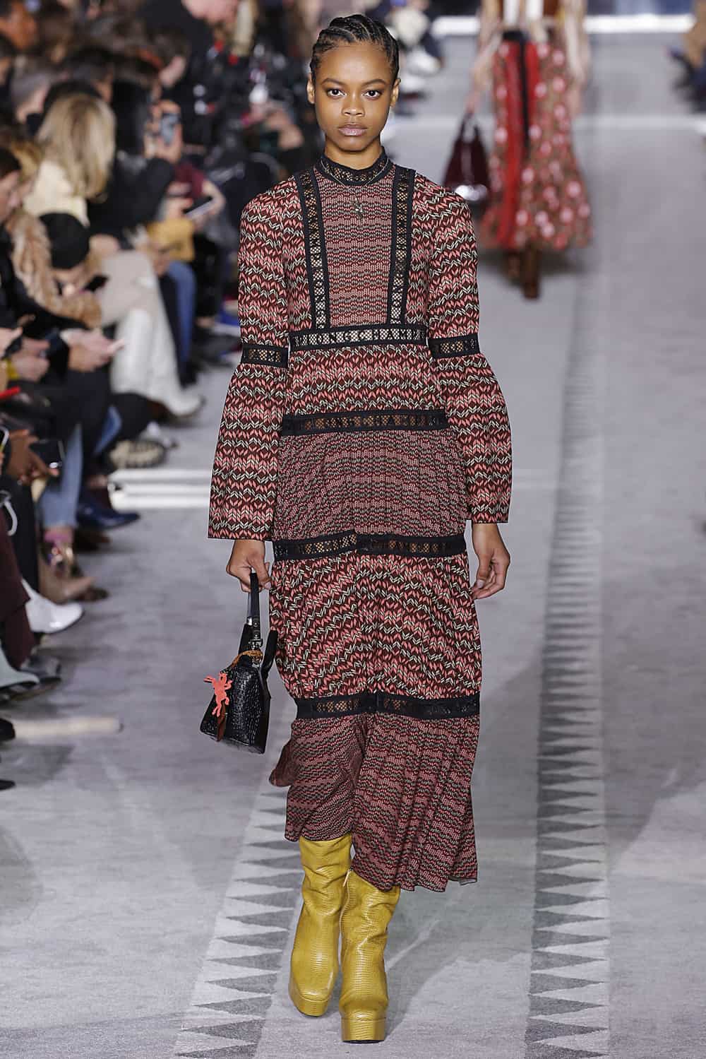 This season Delafontaine blended an eclectic mix of influences: rock and roll, urban women, and travel. Another descriptor she could have added was “composure.” For all its inspirations, textures (fur, leather, lace), and personality (short skirts, pussy bow blouses, platform boots) the season is for the woman who is always put together.