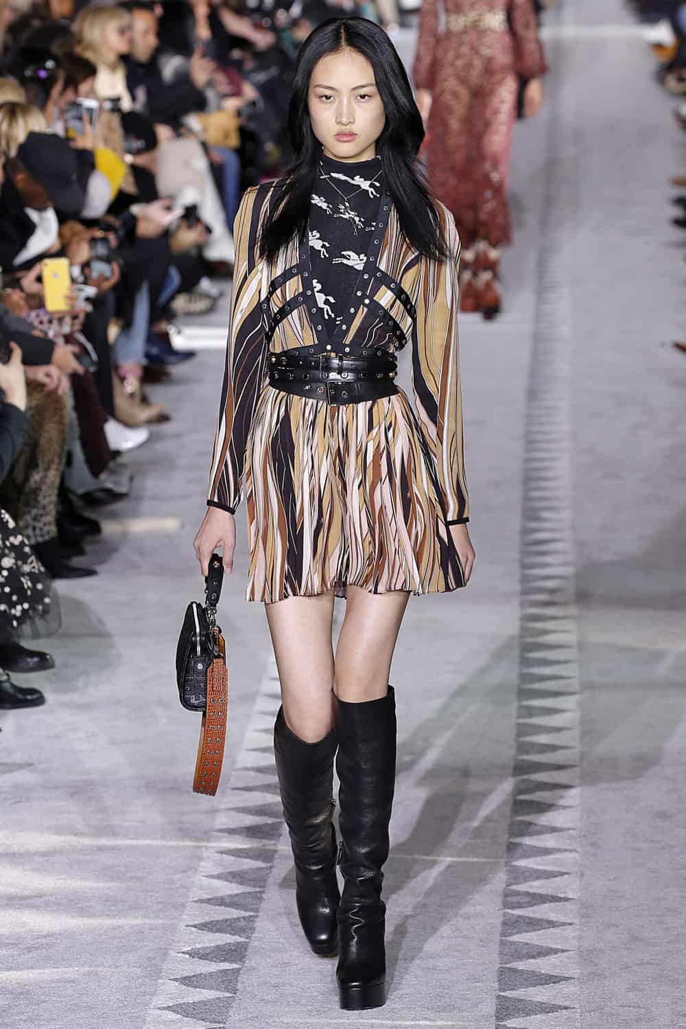 Debuting this season was a new take on Longchamp’s logo, simply “LPG.” The bold block font, and perhaps its unfamiliarity among fans, helped avoid a sense of logomania when splashed in a pattern over some of the pieces. Also new? A miniature version of the house’s seminal Le Pliage bag.