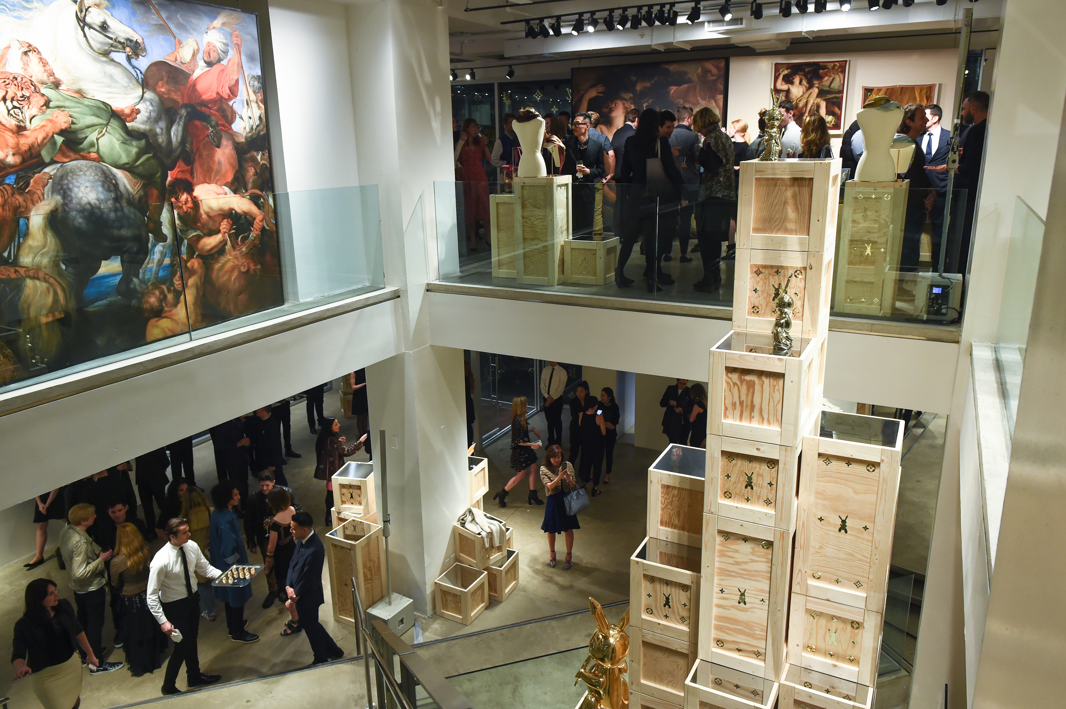 Jeff Koons x Louis Vuitton, the collaboration that’s been getting lots of buzz in the art and fashion worlds, has been brought to life in NYC. Louis Vuitton opened a pop-up location in the former DKNY space on the Upper East Side to exhibit the creations and is allowing customers to purchase them. The collection, which officially launched on April 28, features imagery from Koons’ Gazing Ball paintings, a series of large-scale hand-painted reproductions of masterpieces by da Vinci, Titian, Rubens, Fragonard, and Van Gogh, which have been transposed to iconic Louis Vuitton bags including the Speedy, the Keepall, and the Neverfull.