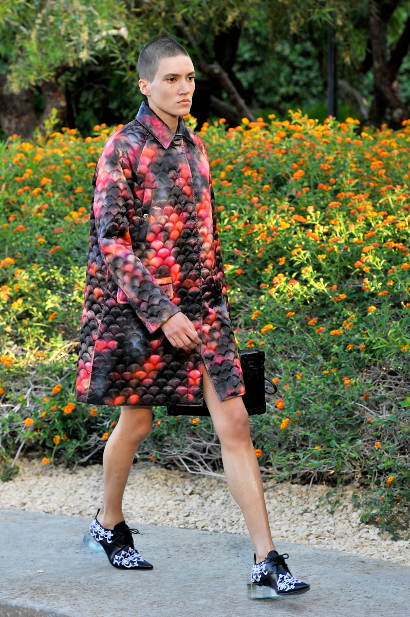 The chic set convened in Palm Springs yesterday to take in Nicolas Ghesquière’s Resort collection staged at the Bob Hope estate. The array of looks was filled with billowing skirts, cheeky patterned hotpants, and boxy jackets with slick finishes, was taken in by a front row that included Kanye West, Michelle Williams, Catherine Deneuve, and Charlotte Gainsbourg. Check out the full collection below…