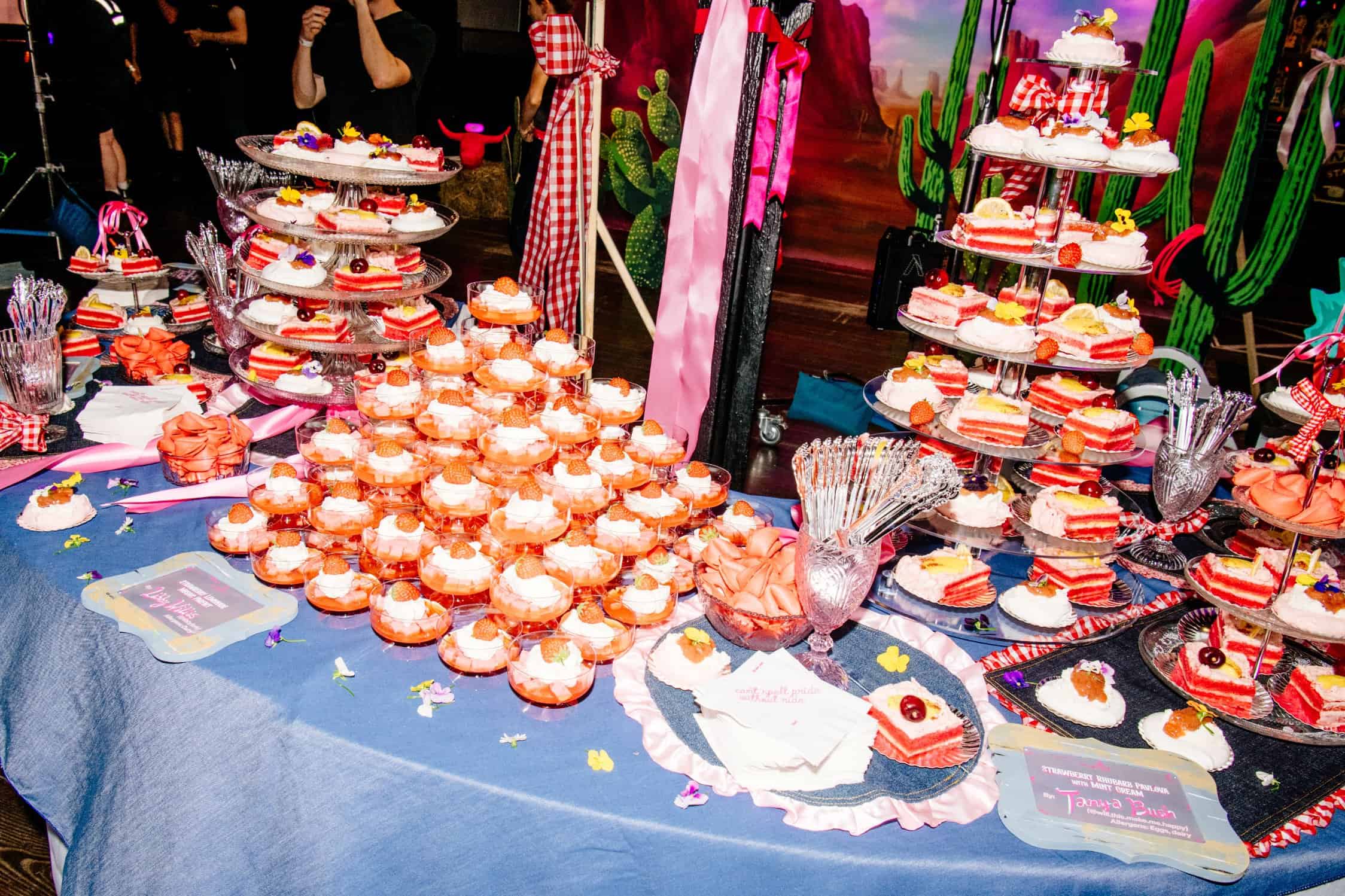 Indeed, guests were thinking pink, thanks to the party’s all-pink dress code and matching cakes, desserts, and fortune cookies throughout the venue—though many also opted to wear their best Western fringe, denim, and cowboy boots. Throughout the evening, Studs Country instructors led groups on the dance floor in line dancing lessons. The groovy moves came in handy later in the night, when Kesha took the stage for a performance of her hit songs “Take It Off” and “We R Who We R.”